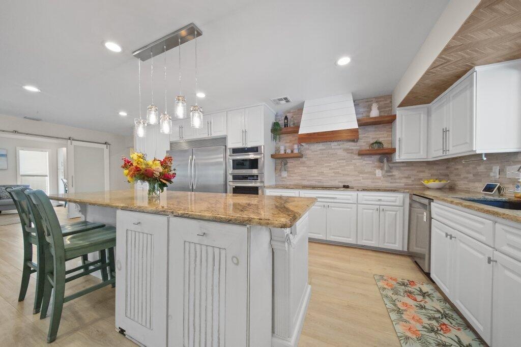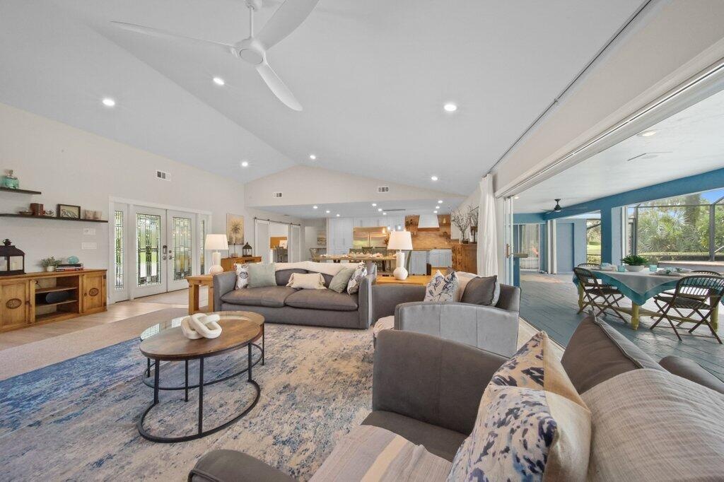 This 4BR/3BA CBS pool home sits on a private 1-acre cul-de-sac lot. Offering over 3,500 sq. ft., it features vaulted ceilings, crown molding, fireplace, & an expansive 2+ car garage. The NEW remodeled kitchen boasts granite counters, NEW appliances, and a large island for entertaining. Outdoor spaces include a screened pool, outdoor kitchen, & beautiful 3rd fairway lake views. Updates include a NEW roof, NEW interior/exterior paint, NEW LVT floors & carpet, TWO NEW A/Cs, TWO NEW water heaters, custom closet built-ins, projector & projector screen included & NEW voice-activated LED lighting. Evergreen offers 24hr manned guard gate, NO club membership required but offered for enjoyment OR play as you go! Located in the ''A'' Palm City school zone, this home is move-in ready