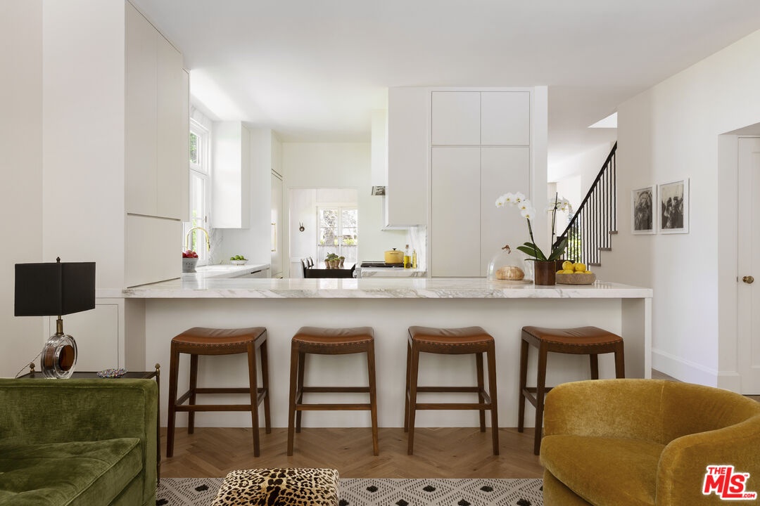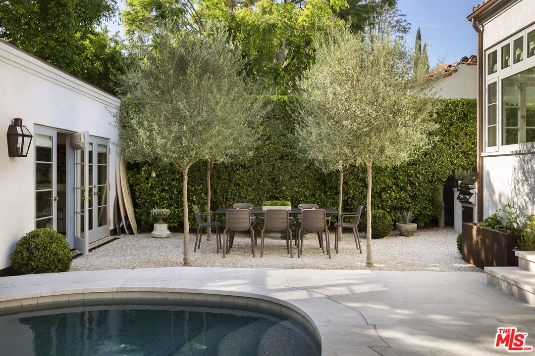 "Maison Lumiere", or "House of Light", is a touch of the South of France in the heart of West Hollywood. Luxe Magazine Los Angeles published in late 2021 - "a tall ficus hedge shields the house from the street, and when stepping through its front gate - gravel crunching underfoot - rather than the hum of nearby Melrose Avenue, there is birdsong and the burble of an aged stone fountain." -(See link to the Luxe magazine feature below.)On the most coveted block in town - with easy walkability through a beautiful neighborhood to the best restaurants and boutiques - sits this stunning French Country House. Completed in late 2019, the home and gardens exude style and quality. French limestone welcomes you at the securitized gates into a landscape of mature, non-fruiting olive, palm, cypress and fruit trees and sculpted greenery. Pass a usable front yard with plumbed fountain to the entry, where glazed doors are framed by Bevelo copper gas lanterns. 19th C clay roof tiles, working wood window shutters and copper gutters and screens add a sense of age and grandeur to the exterior.Once inside, the first thing one notices is the incredible light - enhanced by high ceilings and custom French doors and windows with clerestories. Off a large entry way are the formal living and dining rooms which include custom millwork. Other high-end finishes include herringbone French oak floors, custom cabinetry and closets, solid brass hardware, marble and hand-troweled plaster fireplace mantles, marble kitchen and baths, and custom and vintage lighting throughout. The gourmet kitchen has Miele built-in appliances, while the house offers AV, sound and security systems on iPads.The first floor also includes an open kitchen and family room, powder room and the primary bedroom suite. Upstairs are two family bedrooms with bath, and a large office, which has permitted capped plumbing in the walls to create a second full primary/fourth bedroom.Pass through french doors in the family room and master bedroom to the backyard, where a pebbletec pool and jacuzzi with soothing waterfall sit next to a gas fire pit patio and a dining area set in olive trees. Landscape lighting and Bose garden speakers set the tone for this entertainment paradise, which leads to a glass-fronted ADU/pool house/guest house with bar.https://luxesource.com/article/west-hollywood-home-channels-provence-paul-williger