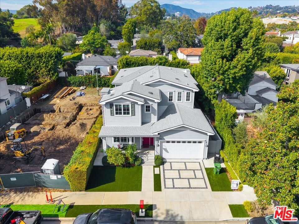 Tucked away on the south side of Brentwood Glen in a peaceful cul-de-sac, 11413 Bolas Street captures the essence of timeless California living. This designer-done, chic traditional-transitional home features five bedrooms and five baths with an open, sun-filled floor plan that blends elegance, comfort, and functionality. The formal living room with a fireplace overlooks the charming front porch, while the spacious dining room offers the perfect setting for family gatherings or entertaining guests. The heart of the home is the light-filled chef's kitchen, beautifully designed with a Wolf range, premium appliances, an oversized refrigerator and freezer, and an expansive waterfall island wrapped in dramatic veined stone. Custom cabinetry, designer lighting, and wide-plank hardwood floors complete the space. The kitchen flows effortlessly into the family room, where nearly floor-to-ceiling bi-fold glass doors open completely to the private, hedged backyard  creating the ultimate indoor-outdoor living experience. The backyard is ideal for entertaining, featuring a covered patio with built-in gas heaters, BBQ, refrigerator, and lush landscaping with low-maintenance artificial turf perfect for kids and pets. Upstairs are four bedrooms, including a serene primary suite with vaulted ceilings, a cozy seating area, private balcony, spa-like bath, and custom walk-in closet. Additional en-suites and a Jack-and-Jill layout offer comfort and flexibility, while the main level includes a guest suite, powder room, and a mudroom with direct garage access. Located just moments from Brentwood Village, San Vicente shops and restaurants, and UCLA  within the highly coveted Kenter Canyon School District!