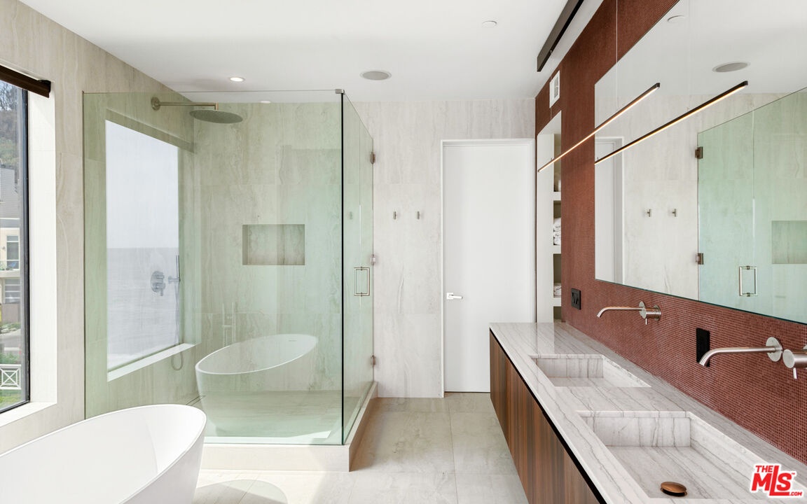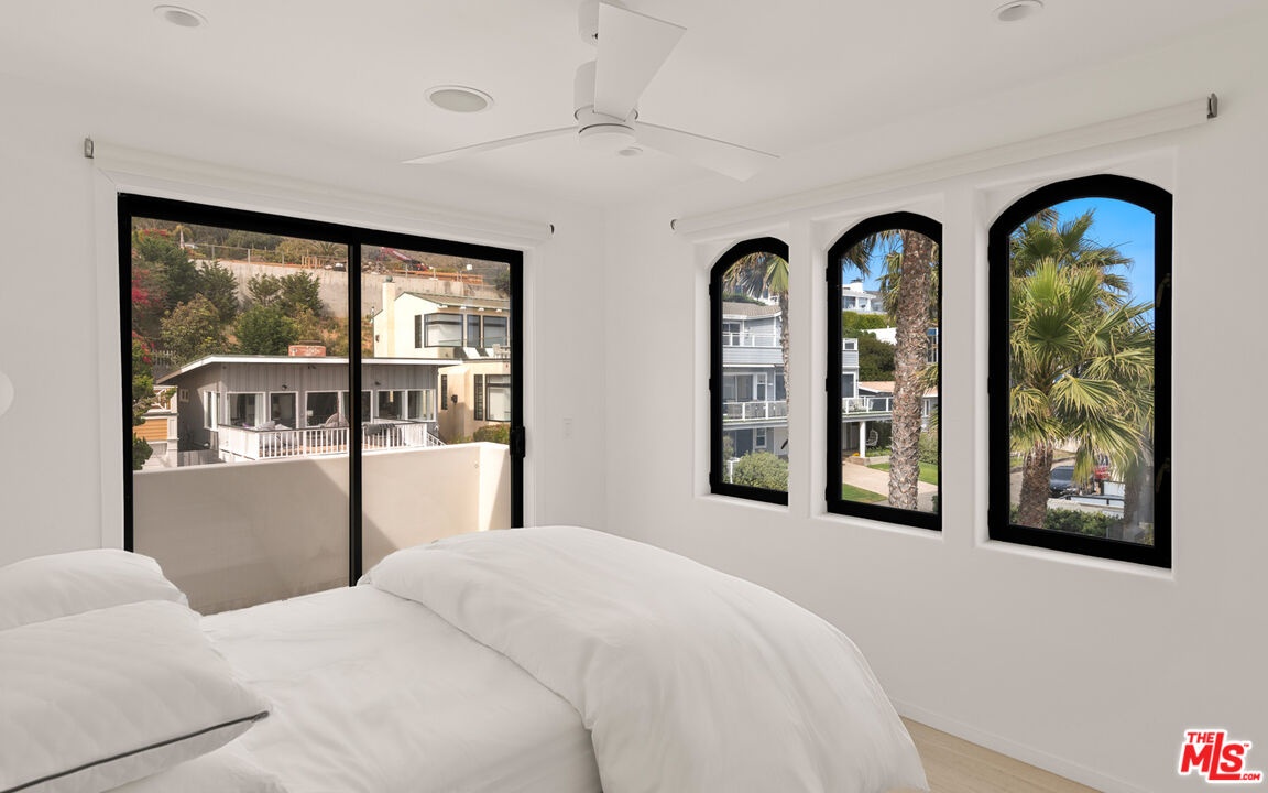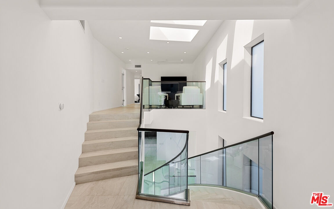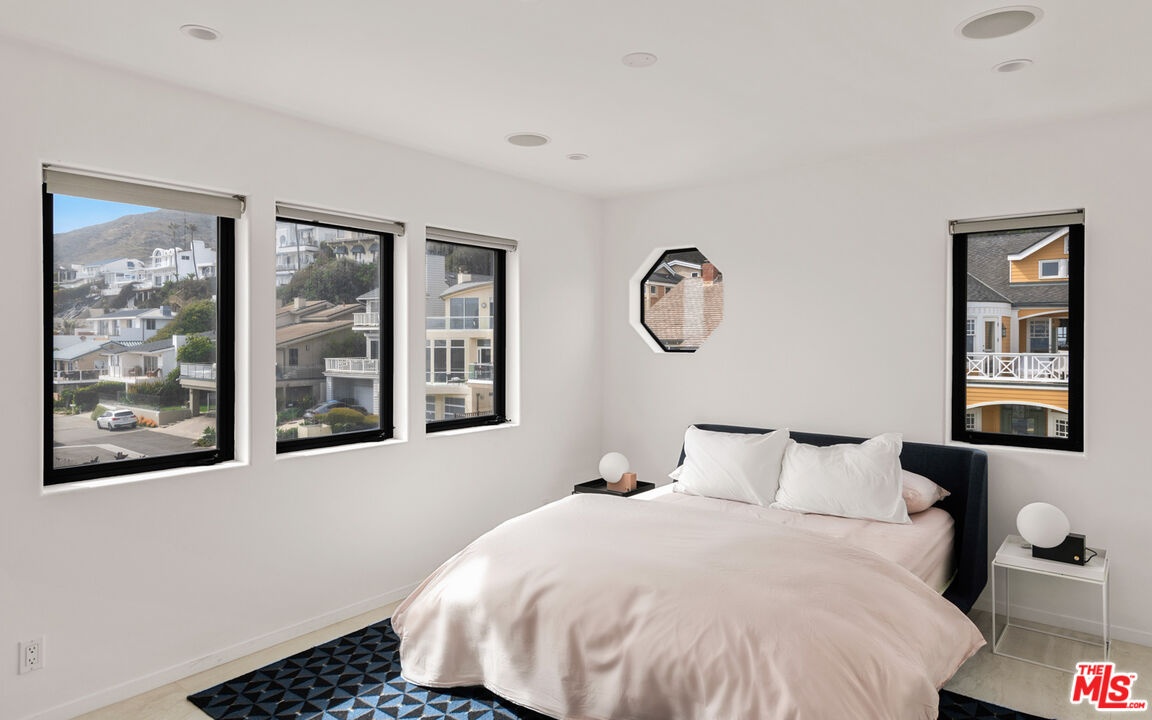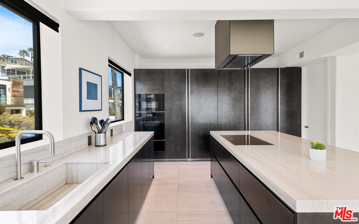 A sleek contemporary with walls of glass and majestic ocean, shoreline, and island views, this sensational home is designed for heavenly relaxation and sophisticated entertaining. Built on three levels for maximum enjoyment of the sunrise-to-sunset panorama, the home's wraparound windows, exceptionally high ceilings, and gorgeous furnishings provide a tranquil setting on the sandy shore of Sea Level beach. The entry, with a huge pivoting glass door, opens onto a mezzanine with a small seating area. Steps lead down to the lower level, where the enormous living room has floor-to-ceiling windows on two sides, a tiled bar, handsome built-ins, and wide glass doors that slide open onto a lighted beachfront balcony with ample room for dining, entertaining, and sea- and star-gazing. Also on this level is a powder room, laundry, and a bedroom. From the foyer, steps lead up to the middle floor, which is home to a beautiful chandelier dining area, chef's kitchen, and the primary suite. The kitchen is equipped with top-quality appliances, an island with bar seating, sleek built-ins, and a walk-in pantry with a beverage cooler. The primary suite is a spacious and private retreat that commands spectacular views and opens onto a large oceanfront deck. The suite has a built-in beverage cooler, walk-in closet, and a lovely spa-style bath. A skylight stairway leads to the top floor, home to a television/reading lounge and three bedrooms, one with a private balcony. The home is also equipped with smart-home features, multizone air conditioning, built-in speakers, a two-car garage, and a stairway to the beach below. This is a stunning new oceanfront residence and the perfect setting for comfortable living and generous entertaining.