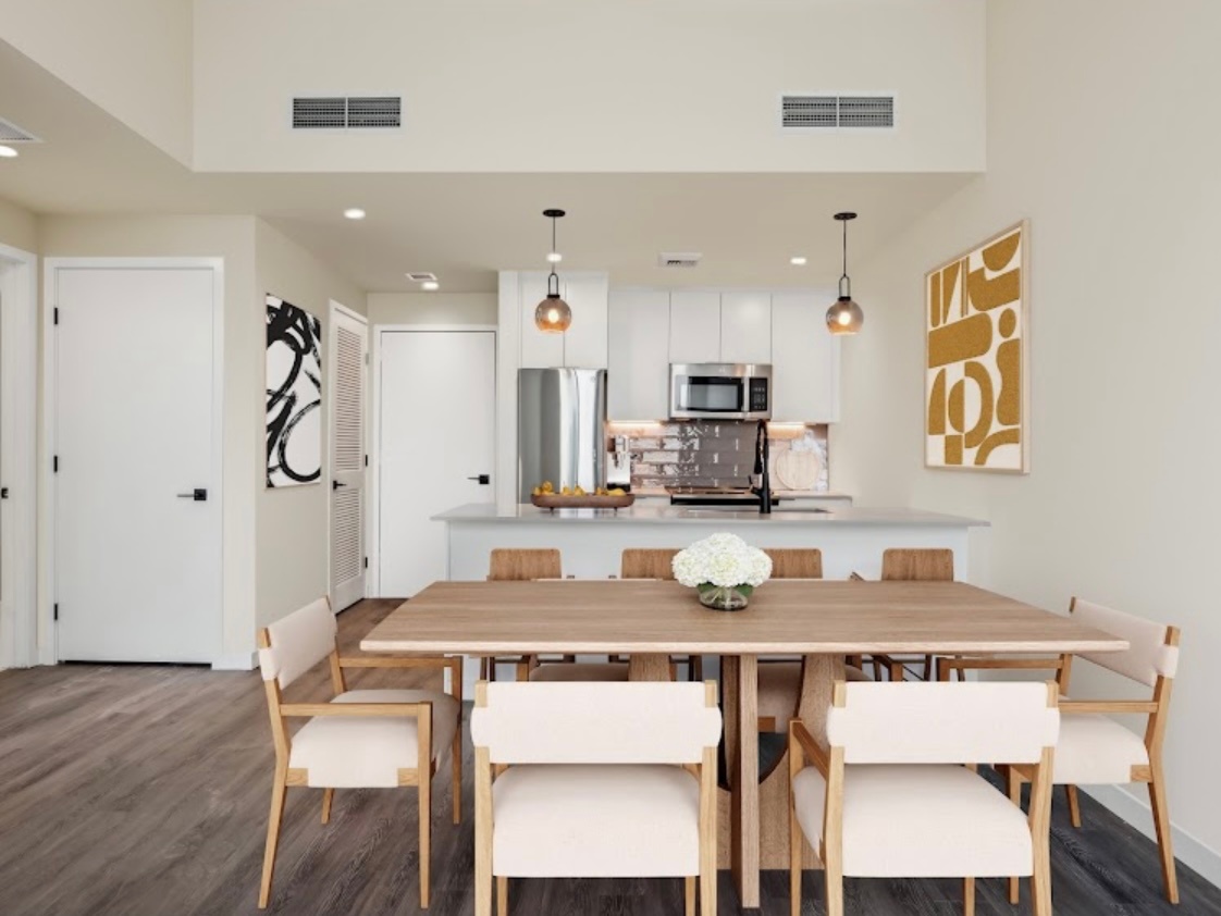 The architectural design of Joule House is both contemporary and inviting. Its sleek lines and bold accents create a visually appealing structure, while large floor-to-ceiling windows allow natural light to pour into the interiors, enhancing the sense of space and openness. Inside, residents will find thoughtfully designed apartments that feature high-end finishes, such as custom cabinetry, quartz countertops, and stylish subway tile backsplashes. The inclusion of smart home technology in each unit adds an element of modern convenience, ensuring that residents can enjoy both luxury and practicality in their living spaces.