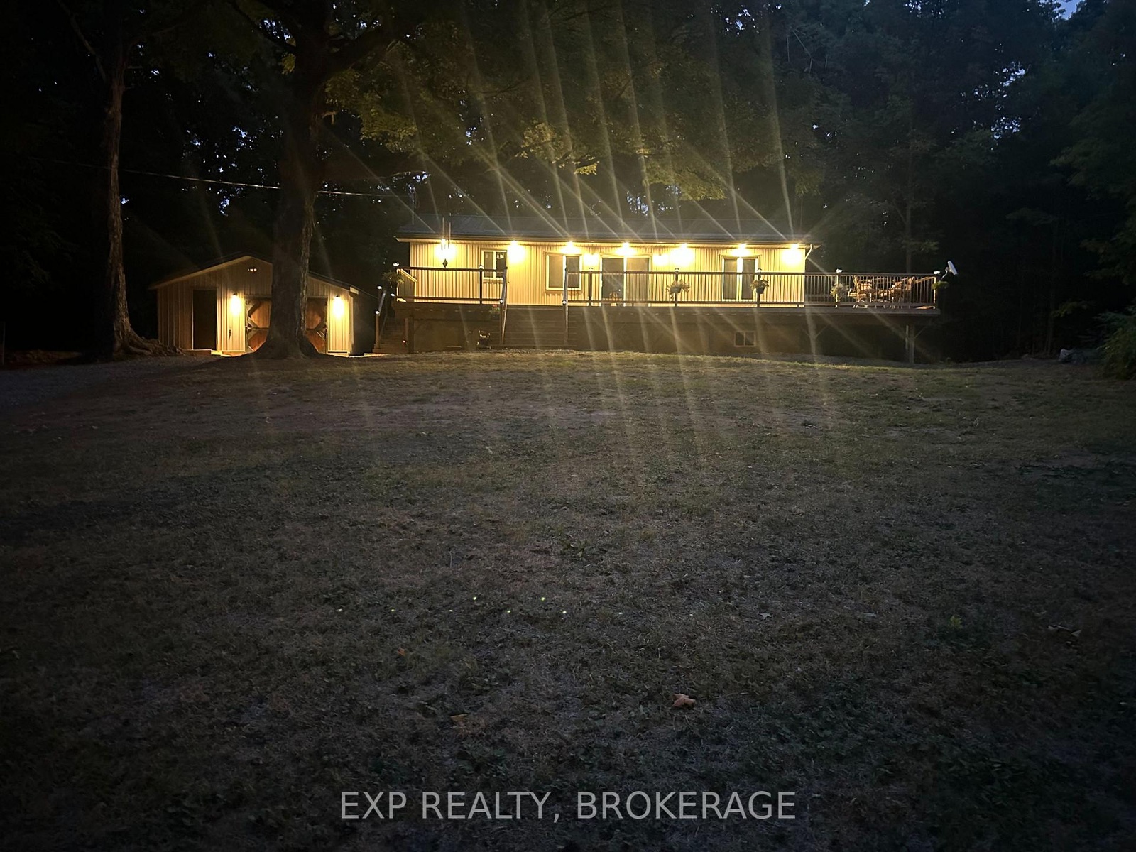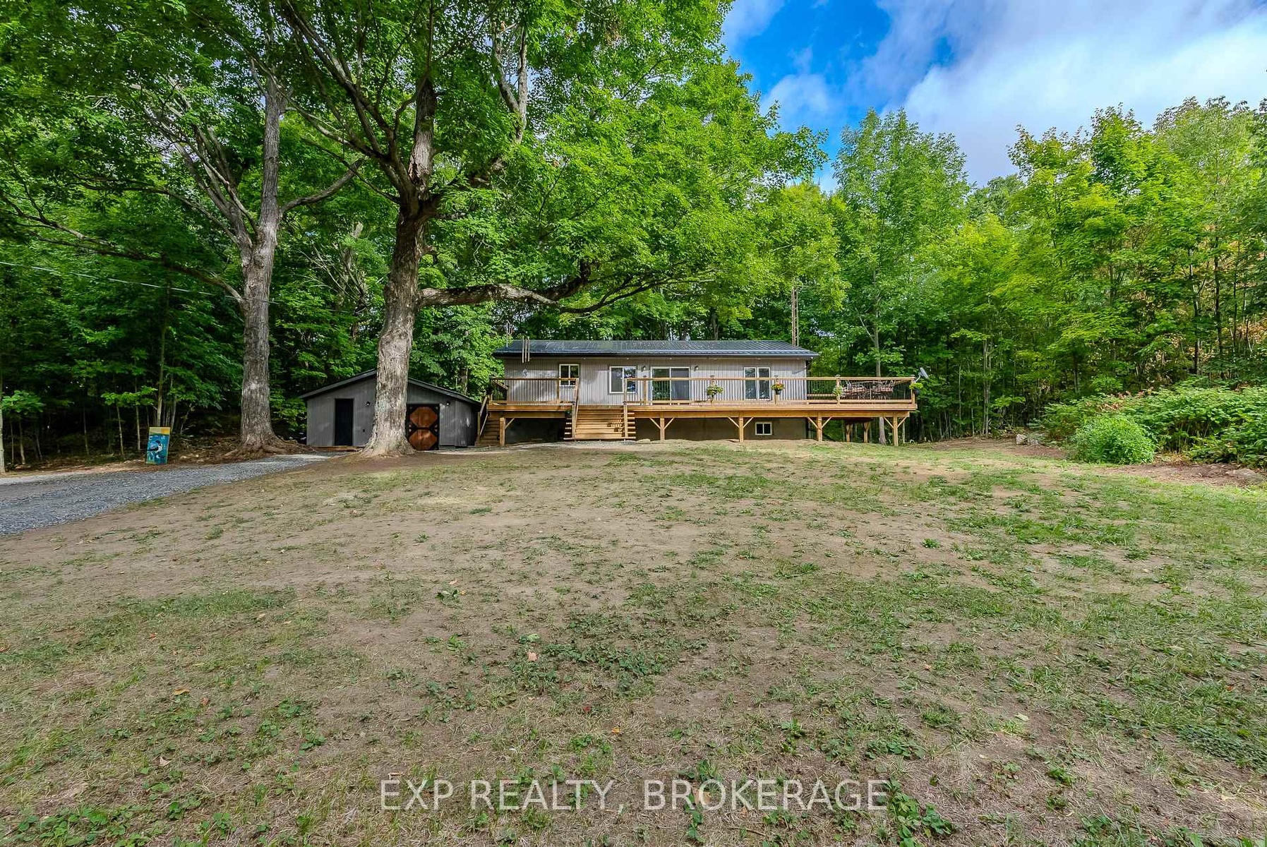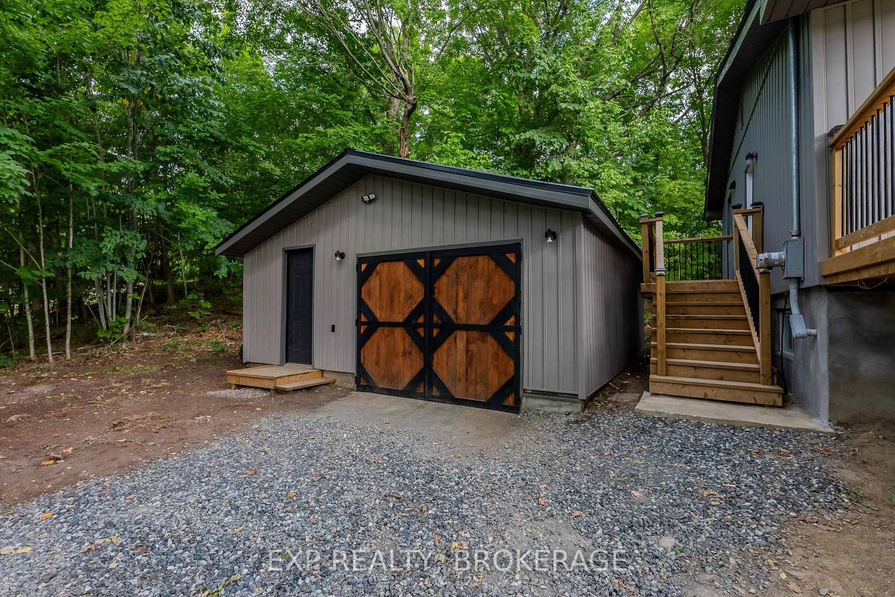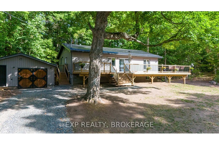 Escape to a completely renovated home from top to bottom in 2024. Step onto a massive 50' wrap around deck with 2 patio door entrances, a stunning view of Big Clear Lake. Nestled on 1 acres of private wooded lot with close proximity to all amenities including; 2 public boat launches, public beach, convenience store/gas bar less than a mile drive. Also minutes away to the quaint picturesque village of Arden with amenities such as the local community hall/library/post office, multi recreational outdoor facility, and K & P trail. The fully finished lower level offers additional space for entertaining, possibly rental, weekend getaway or a cosy year-round residence. Why pay waterfront taxes when you can have beautiful views of the lake from the comfort of the deck. Detached garage 24'x20' with work bench. New 200 amp breaker panel with generlink hook up with generator.