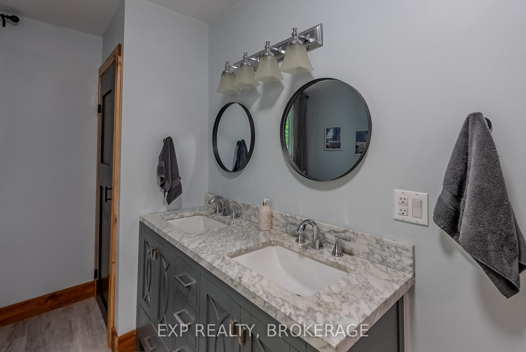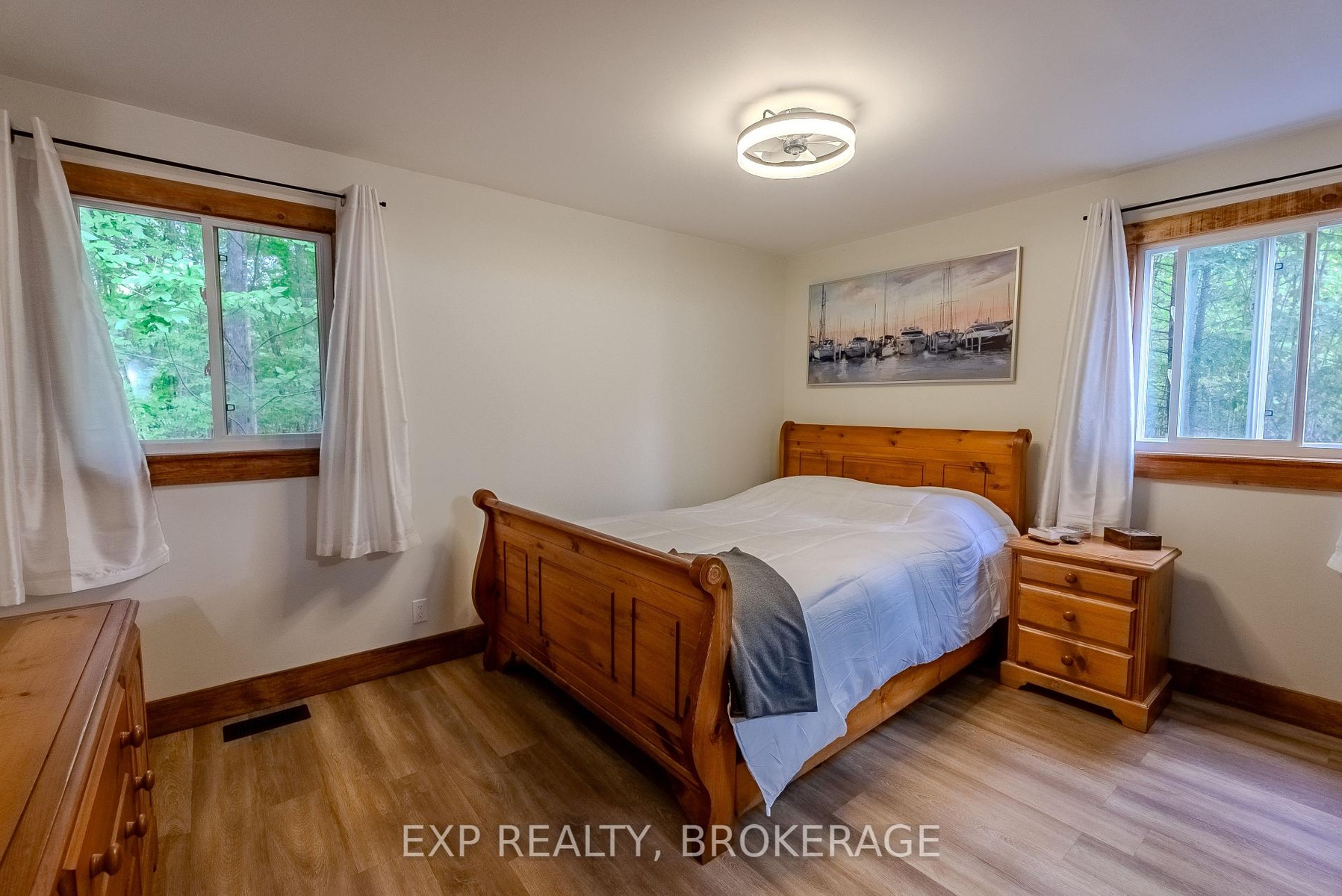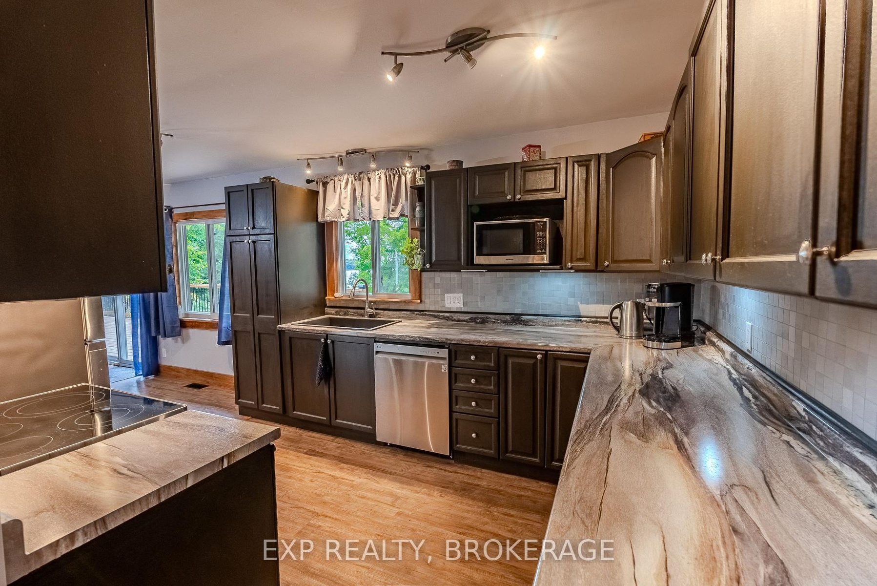 Escape to a completely renovated home from top to bottom in 2024. Step onto a massive 50' wrap around deck with 2 patio door entrances, a stunning view of Big Clear Lake. Nestled on 1 acres of private wooded lot with close proximity to all amenities including; 2 public boat launches, public beach, convenience store/gas bar less than a mile drive. Also minutes away to the quaint picturesque village of Arden with amenities such as the local community hall/library/post office, multi recreational outdoor facility, and K & P trail. The fully finished lower level offers additional space for entertaining, possibly rental, weekend getaway or a cosy year-round residence. Why pay waterfront taxes when you can have beautiful views of the lake from the comfort of the deck. Detached garage 24'x20' with work bench. New 200 amp breaker panel with generlink hook up with generator.