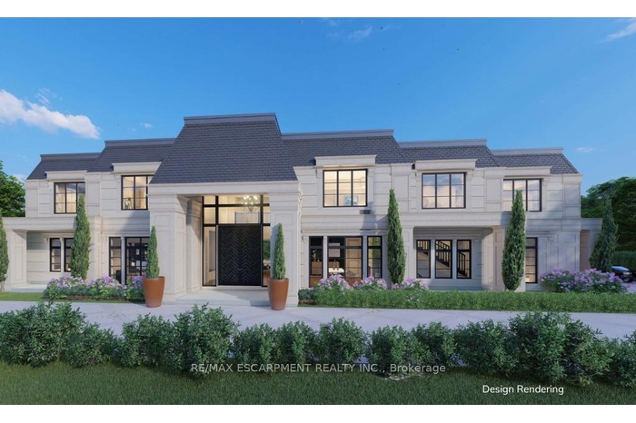 Build your dream home with Nest Fine Homes, a renowned builder known for visionary design and exceptional craftsmanship. Set on nearly 6.5 acres of private, tree-lined land in the heart of the Escarpment, this one-of-a-kind property backs onto Mount Nemo and the iconic Bruce Trail. Blending modern minimalism with natural elegance, the residence is a masterwork of luxury living. Expansive floor-to-ceiling windows fill the home with natural light and frame panoramic views that stretch to the Toronto skyline and Lake Ontario. Inside, a glass-encased foyer opens to a sunken living room and a striking feature hall leading to the soaring great room. The chef's kitchen-complete with a breakfast nook and formal dining area-is designed for both intimate family moments and grand-scale entertaining. A discreet wine cellar, office, powder room, and mudroom complete the main floor. Upstairs, the primary suite is a private retreat with sweeping views, a spa-inspired ensuite, and a spacious walk-in closet with access to a private balcony. Five additional bedrooms. The lower level is a haven for wellness and leisure, featuring a sauna, fitness studio, sleek bar, media room, and hobby space. While the current vision supports a custom residence of over 9,000 sqft, the property allows for tailored adaptation-expand to a 12,500 sqft or scale down to an elegant 4,500 sqft home without compromising luxury. This is a truly rare offering-an opportunity to create a legacy estate, shaped by your vision and designed to last forever. All images are artists renderings for illustrative purposes only. Final design, elevations, and features may vary. LUXURY CERTIFIED.