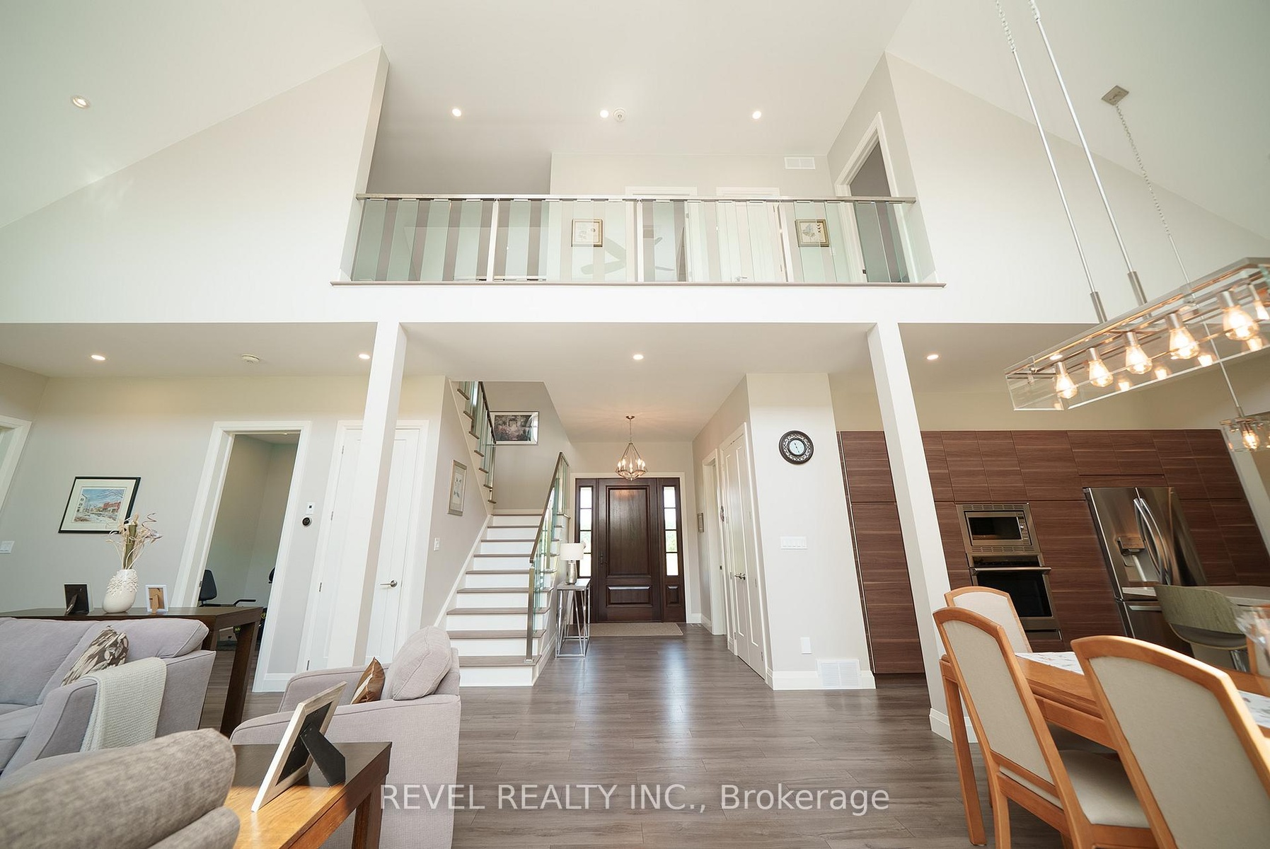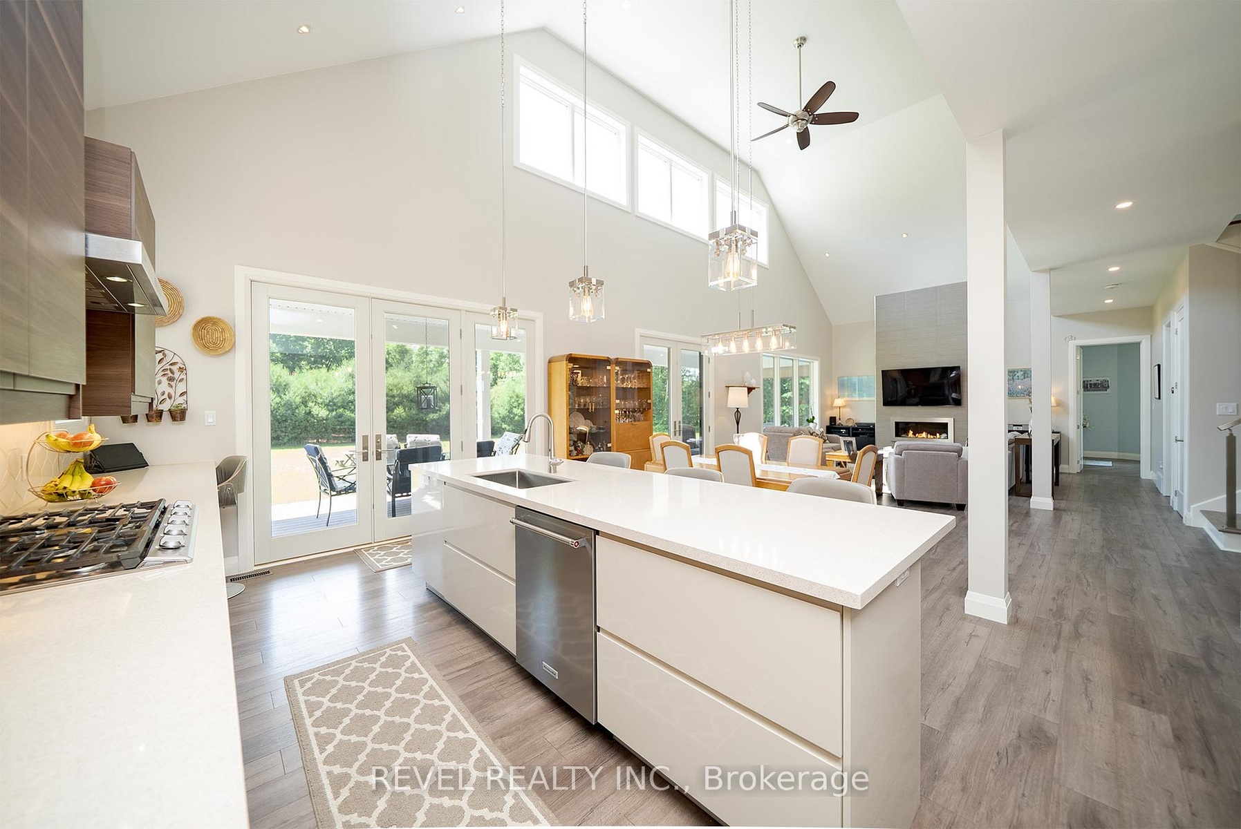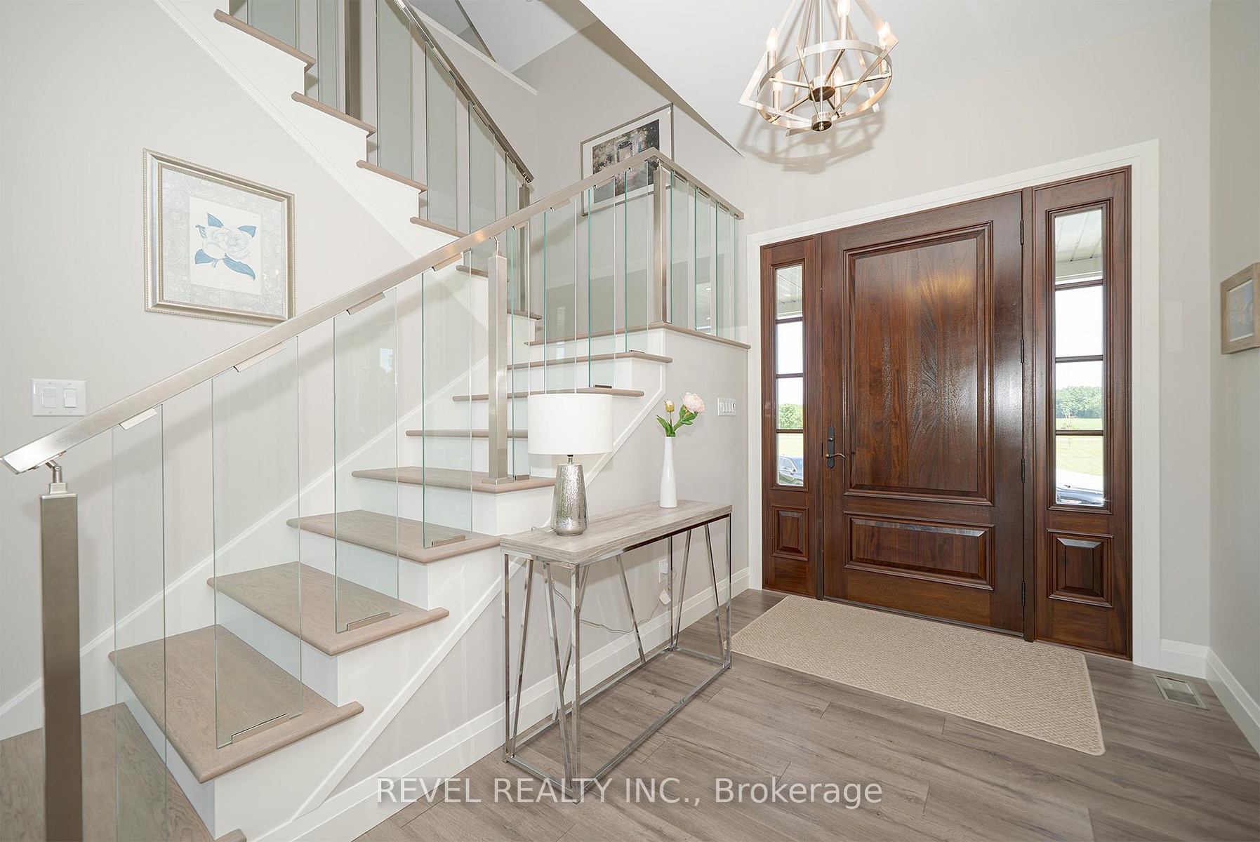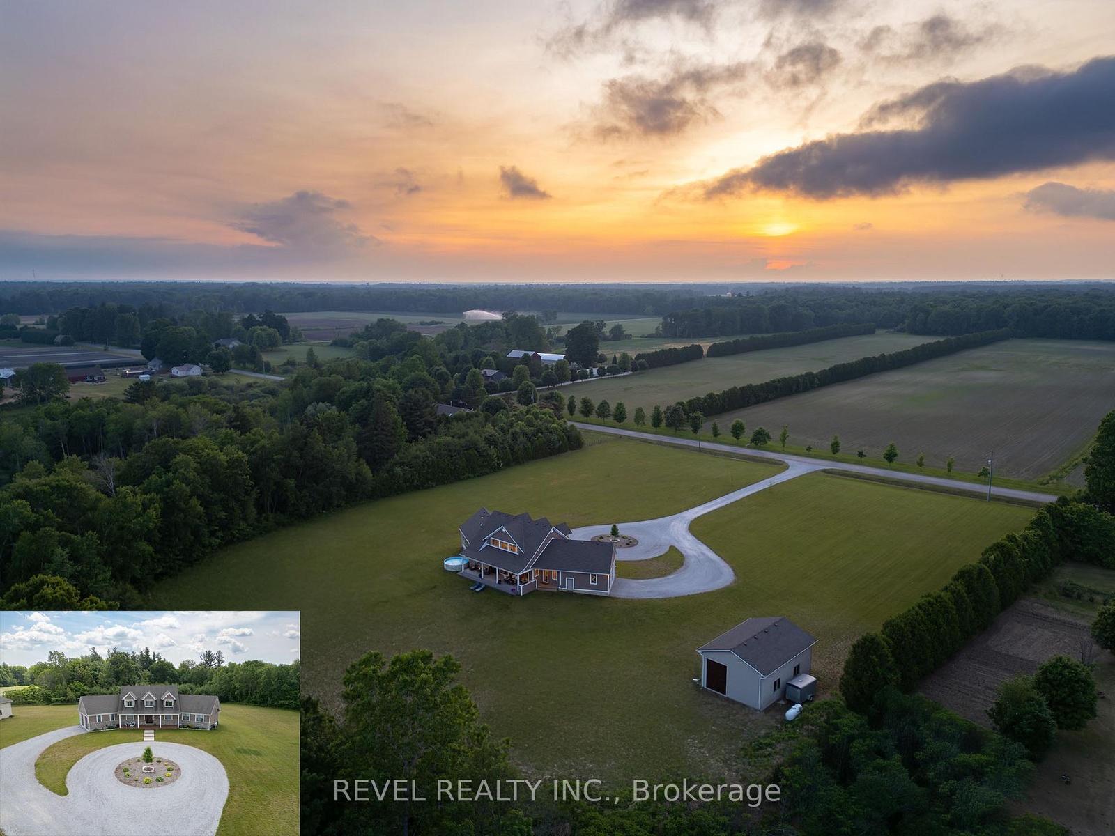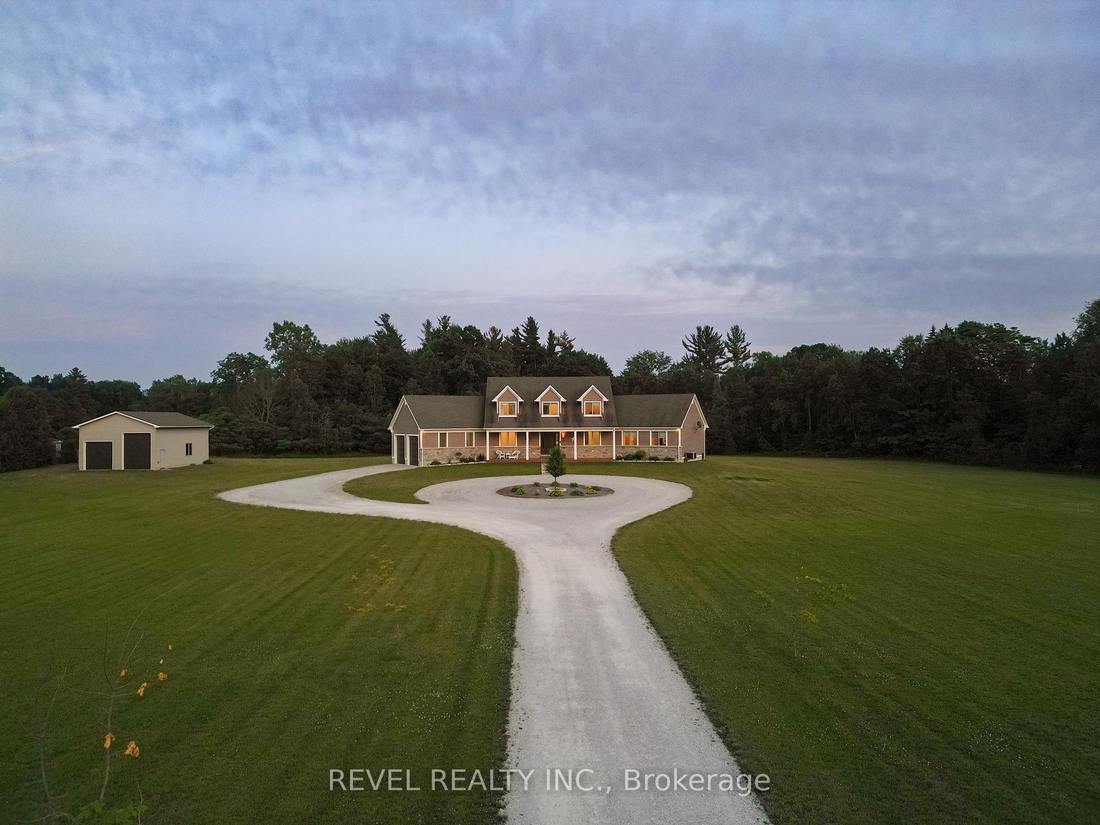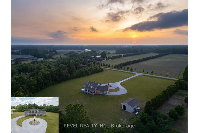 Welcome to your dream home in the heart of Norfolk County! Nestled on a picturesque 4.66-acre property, this custom-built masterpiece blends thoughtful design, modern luxury, and rural tranquility - just minutes from Norfolk's beaches, trails, wineries, & local charm. A long driveway leads to this stunning Cape Cod-style home w/a large front porch. Step inside through a 41"x96" solid mahogany door & be greeted by custom stainless steel & cut glass stair railings w/comfort-rise steps. The main level has 10' ceilings, 8' doors, European laminate flooring, & oversizedAndersen windows & doors that flood the space w/natural light. A fireplace beneath a soaring 21' ceiling anchors the great room. The chefs kitchen is a showstopper w/quartz countertops, European-style cabinetry w/pullouts & drawer-in-drawer systems, a double-door bar fridge, a hands-free Moen faucet, & 5-burner propane range w/WiFi-connected hood. A massive island & custom pantry wall add both function & style.The main-flr primary suite has private access to the deck, hot tub, & above-ground pool, plus a fireplace, floor-to-ceiling windows, & a huge walk-in closet w/chandelier & custom organizers. The spa-like ensuite includes heated floors, freestanding tub, 4x6 glass shower w/bench, double vanity, Riobel chrome fixtures, & quartz finishes. Also on the main floor is a versatile room for bedroom, office, gym, or playroom, a 2-piece powder room, & laundry room w/custom closets & ample workspace, accessible from both foyer & back hallway. Upstairs, a flexible loft overlooks the great room & could become a 4th bedroom. A full bath w/double sinks, quartz counters, & rainfall shower, plus a large front-facing bedroom, complete the level. Bonus: a detached shop w/insulated steel drive-through doors (10x14 and 10x10), 16 ceilings, 60-amp panel, RV receptacle,Andersen windows, & fiberglass shingles. This 5-Star Plus Energy Rated home offers unmatched quality, peace, & privacy. A true Norfolk County gem.