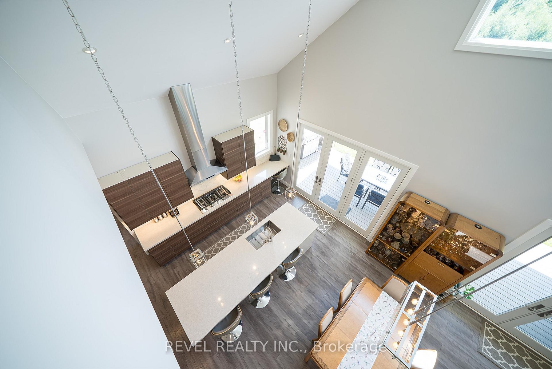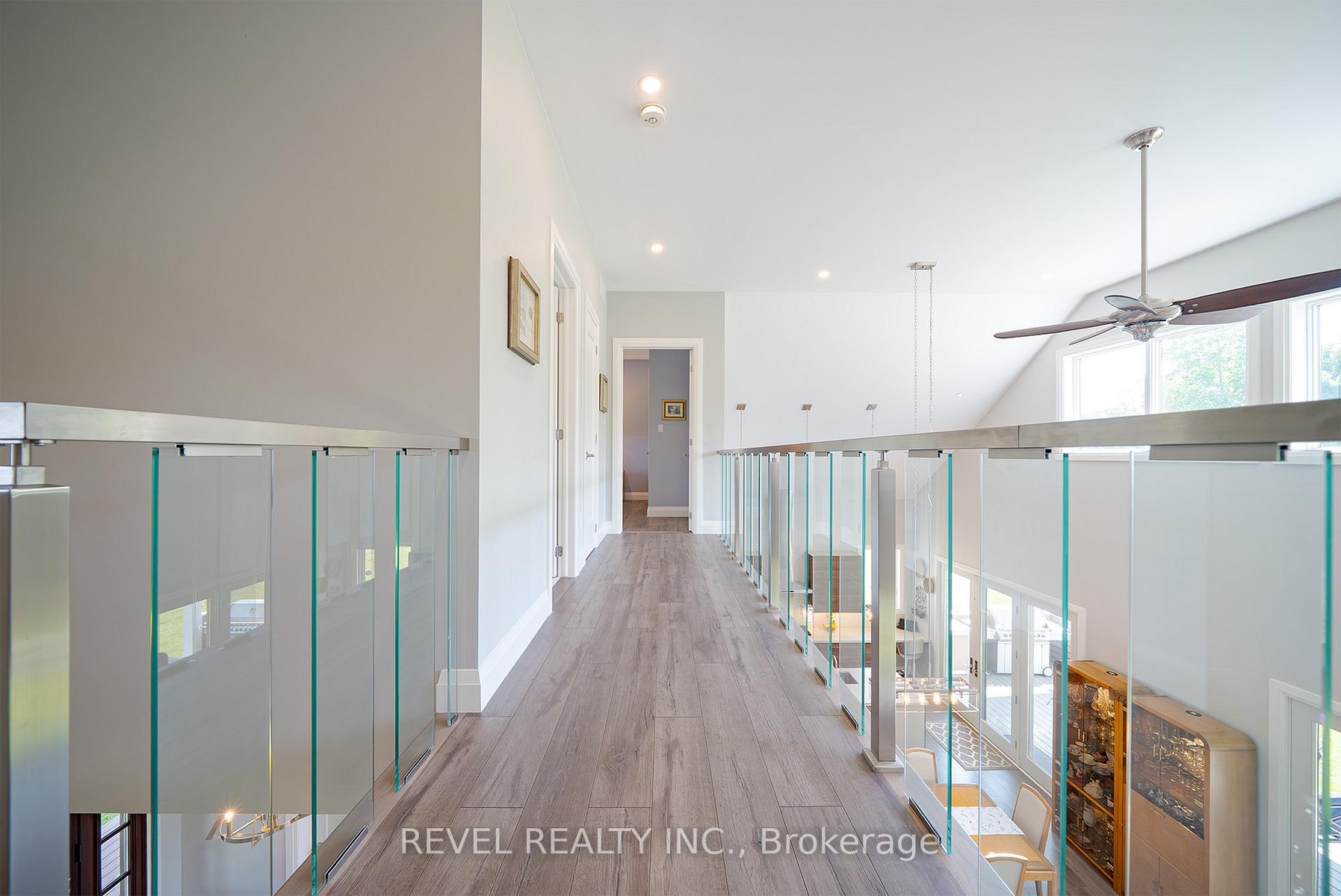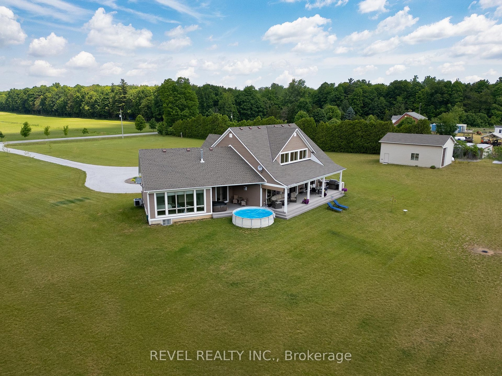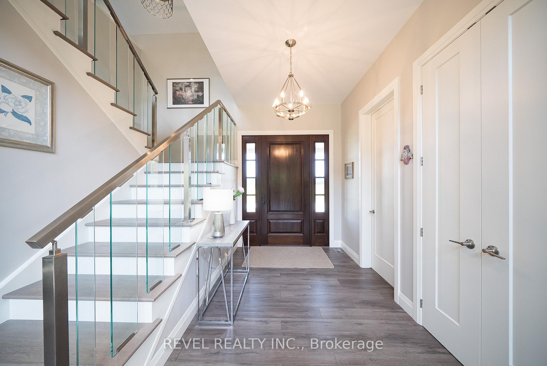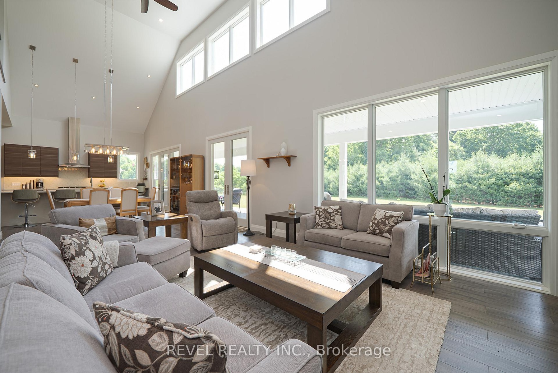 Welcome to your dream home in the heart of Norfolk County! Nestled on a picturesque 4.66-acre property, this custom-built masterpiece blends thoughtful design, modern luxury, and rural tranquility - just minutes from Norfolk's beaches, trails, wineries, & local charm. A long driveway leads to this stunning Cape Cod-style home w/a large front porch. Step inside through a 41"x96" solid mahogany door & be greeted by custom stainless steel & cut glass stair railings w/comfort-rise steps. The main level has 10' ceilings, 8' doors, European laminate flooring, & oversizedAndersen windows & doors that flood the space w/natural light. A fireplace beneath a soaring 21' ceiling anchors the great room. The chefs kitchen is a showstopper w/quartz countertops, European-style cabinetry w/pullouts & drawer-in-drawer systems, a double-door bar fridge, a hands-free Moen faucet, & 5-burner propane range w/WiFi-connected hood. A massive island & custom pantry wall add both function & style.The main-flr primary suite has private access to the deck, hot tub, & above-ground pool, plus a fireplace, floor-to-ceiling windows, & a huge walk-in closet w/chandelier & custom organizers. The spa-like ensuite includes heated floors, freestanding tub, 4x6 glass shower w/bench, double vanity, Riobel chrome fixtures, & quartz finishes. Also on the main floor is a versatile room for bedroom, office, gym, or playroom, a 2-piece powder room, & laundry room w/custom closets & ample workspace, accessible from both foyer & back hallway. Upstairs, a flexible loft overlooks the great room & could become a 4th bedroom. A full bath w/double sinks, quartz counters, & rainfall shower, plus a large front-facing bedroom, complete the level. Bonus: a detached shop w/insulated steel drive-through doors (10x14 and 10x10), 16 ceilings, 60-amp panel, RV receptacle,Andersen windows, & fiberglass shingles. This 5-Star Plus Energy Rated home offers unmatched quality, peace, & privacy. A true Norfolk County gem.