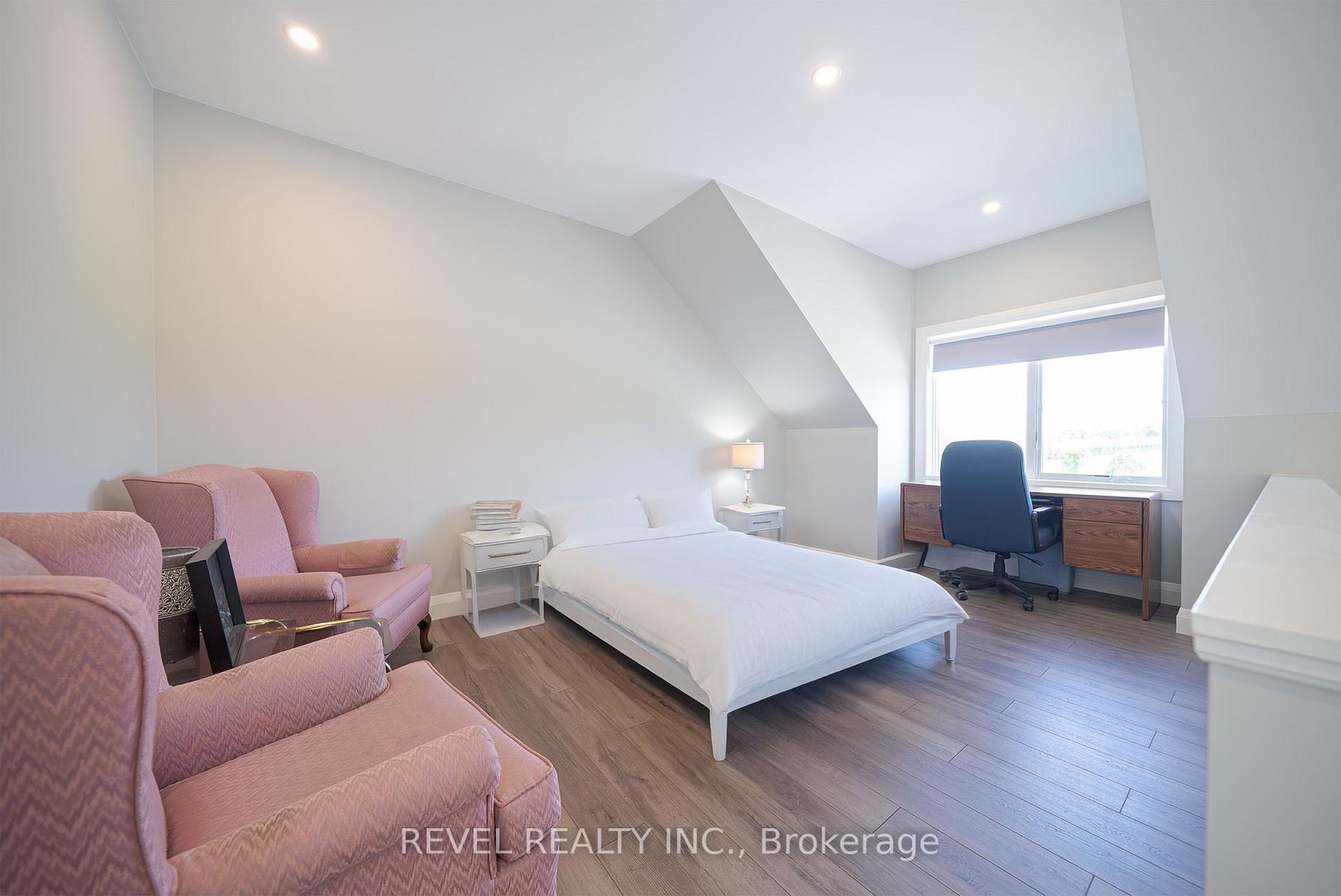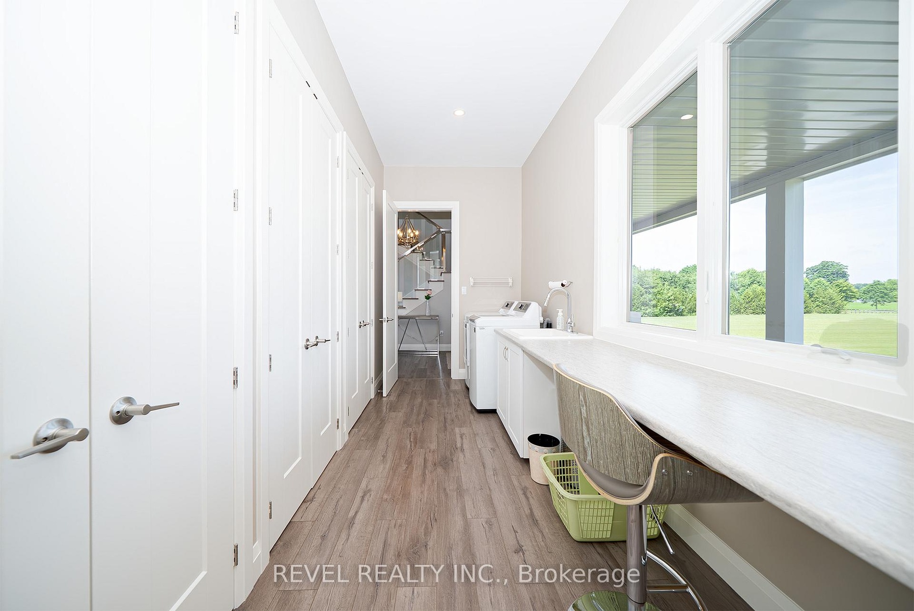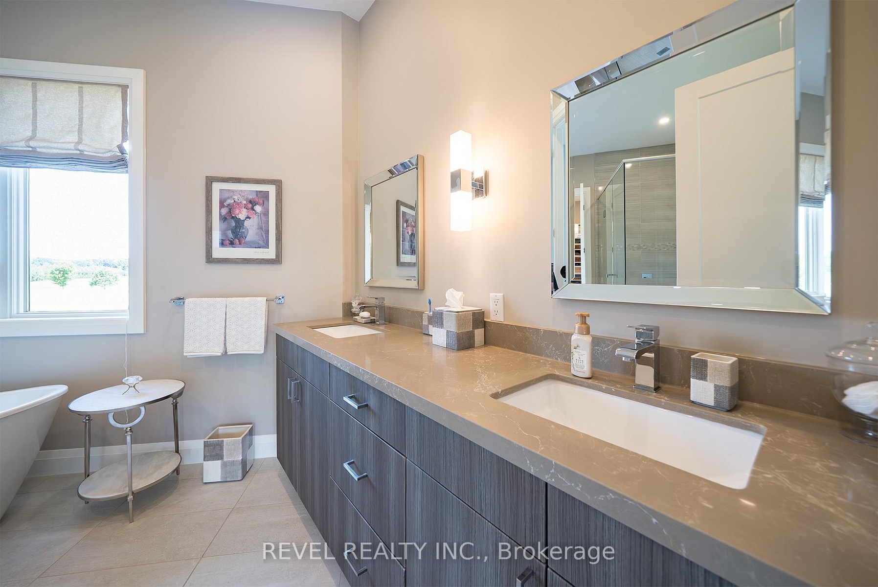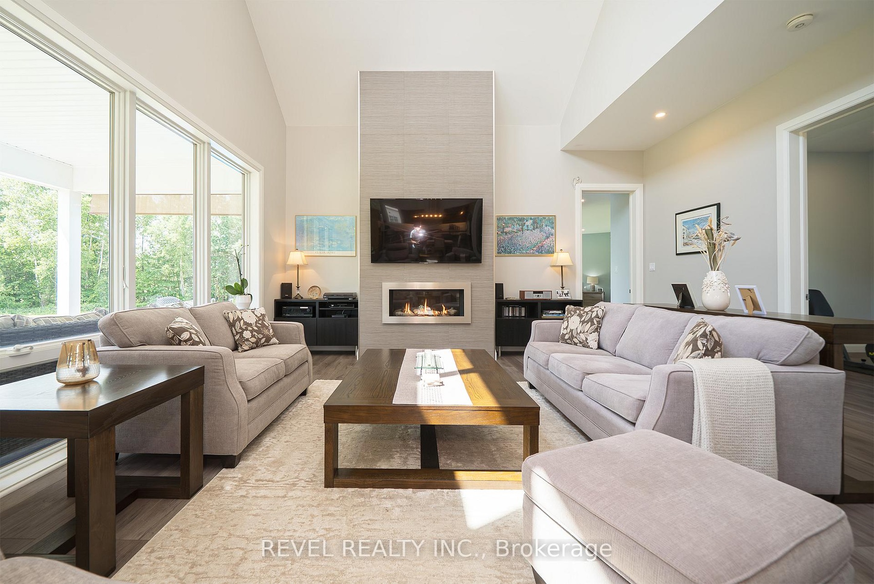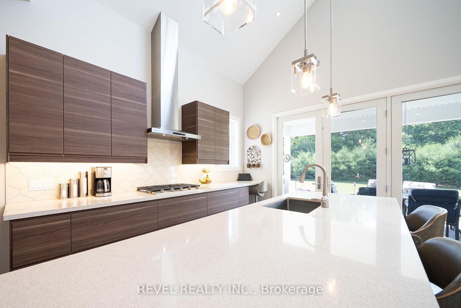 Welcome to your dream home in the heart of Norfolk County! Nestled on a picturesque 4.66-acre property, this custom-built masterpiece blends thoughtful design, modern luxury, and rural tranquility - just minutes from Norfolk's beaches, trails, wineries, & local charm. A long driveway leads to this stunning Cape Cod-style home w/a large front porch. Step inside through a 41"x96" solid mahogany door & be greeted by custom stainless steel & cut glass stair railings w/comfort-rise steps. The main level has 10' ceilings, 8' doors, European laminate flooring, & oversizedAndersen windows & doors that flood the space w/natural light. A fireplace beneath a soaring 21' ceiling anchors the great room. The chefs kitchen is a showstopper w/quartz countertops, European-style cabinetry w/pullouts & drawer-in-drawer systems, a double-door bar fridge, a hands-free Moen faucet, & 5-burner propane range w/WiFi-connected hood. A massive island & custom pantry wall add both function & style.The main-flr primary suite has private access to the deck, hot tub, & above-ground pool, plus a fireplace, floor-to-ceiling windows, & a huge walk-in closet w/chandelier & custom organizers. The spa-like ensuite includes heated floors, freestanding tub, 4x6 glass shower w/bench, double vanity, Riobel chrome fixtures, & quartz finishes. Also on the main floor is a versatile room for bedroom, office, gym, or playroom, a 2-piece powder room, & laundry room w/custom closets & ample workspace, accessible from both foyer & back hallway. Upstairs, a flexible loft overlooks the great room & could become a 4th bedroom. A full bath w/double sinks, quartz counters, & rainfall shower, plus a large front-facing bedroom, complete the level. Bonus: a detached shop w/insulated steel drive-through doors (10x14 and 10x10), 16 ceilings, 60-amp panel, RV receptacle,Andersen windows, & fiberglass shingles. This 5-Star Plus Energy Rated home offers unmatched quality, peace, & privacy. A true Norfolk County gem.