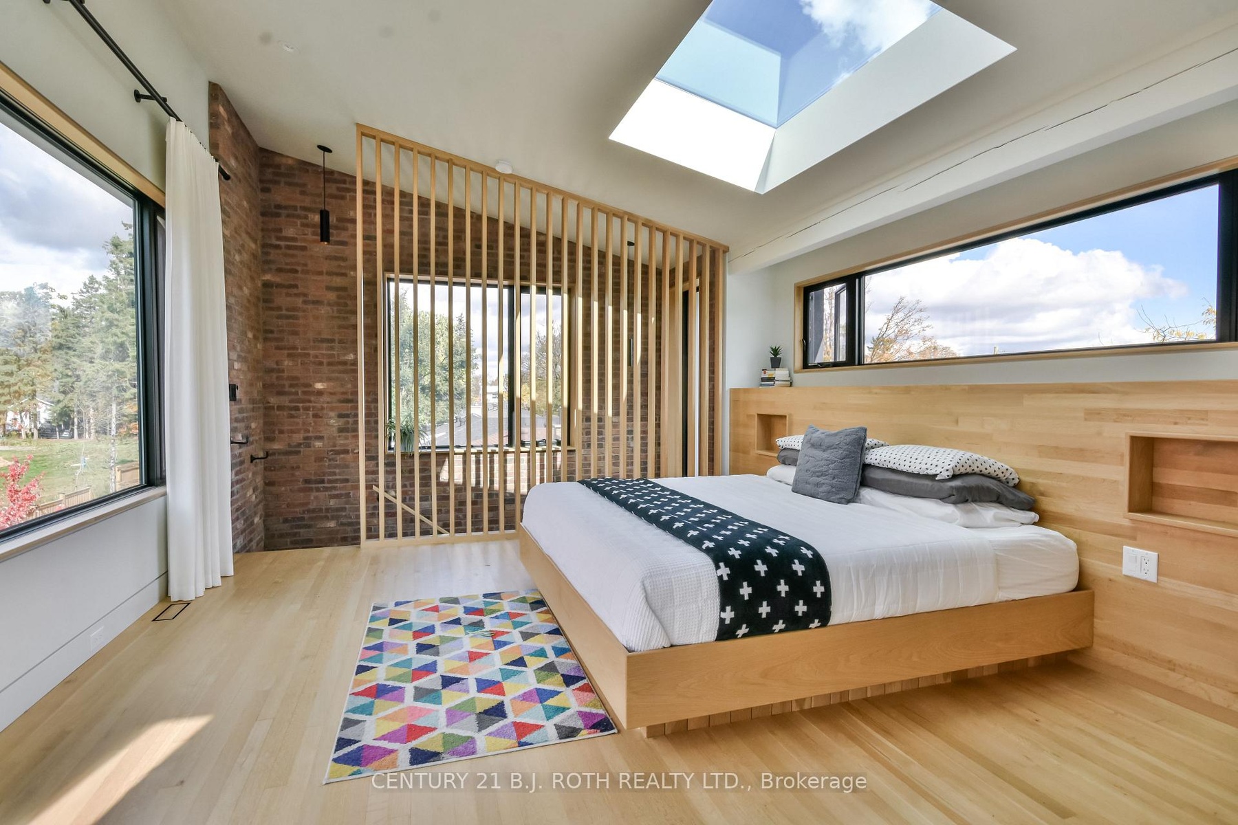 Stunning Mid-Century Modern Masterpiece, Fully Renovated in Prestigious East End. Prepare to be impressed by the flawless execution of high end building. This home has been reimagined with a dramatic 3-storey addition creating a one-of-kind living experience that blends sophisticated, midcentury modern flair with state-of-the art comfort. From the soaring ceilings to the spa-inspired ensuite, every detail has been meticulously curated. Discover unique touches like statement brick wall and sophisticated covered low-slope front entry that enhances the homes curb appeal.Featuring Dramatic, Sun-drenched, open concept, great room with awe inspired aircraft cables and vaulted ceiling gives a sense of volume. The cupola and skylight bathe the area in natural light, highlighting the custom fluted cabinetry of the new designer kitchen and stylish slat wall feature. A true centerpiece, with gorgeous waterfall countertops and ample storage perfect for daily life and grand-scale entertaining. Ascend to your private oasis the master suite features a custom-built king size bed frame and is flooded with light from oversized windows. The lower level spa-like bathroom is a revelation, complete with luxurious stone finishes, soaker tub, custom vanity, steam shower and heated flooring. Enjoy beautiful warm days and cozy evenings on the heated, covered porch, overlooking a spacious backyard adorned with mature trees- a perfect setting for entertaining. Rest easy with a complete suite of new mechanicals, incl: new furnace, a/c, a ducted mini split for optimal climate control. The envelope is fortified with rigid interior insulation, delta wrap water proofing, insulated foundation, new sump pump, and new municipal sewer line, ensuring efficiency and peace of mind for years to come. A rare opportunity to own a bespoke architectural gem. Book your private viewing today. Owner is licensed realtor.