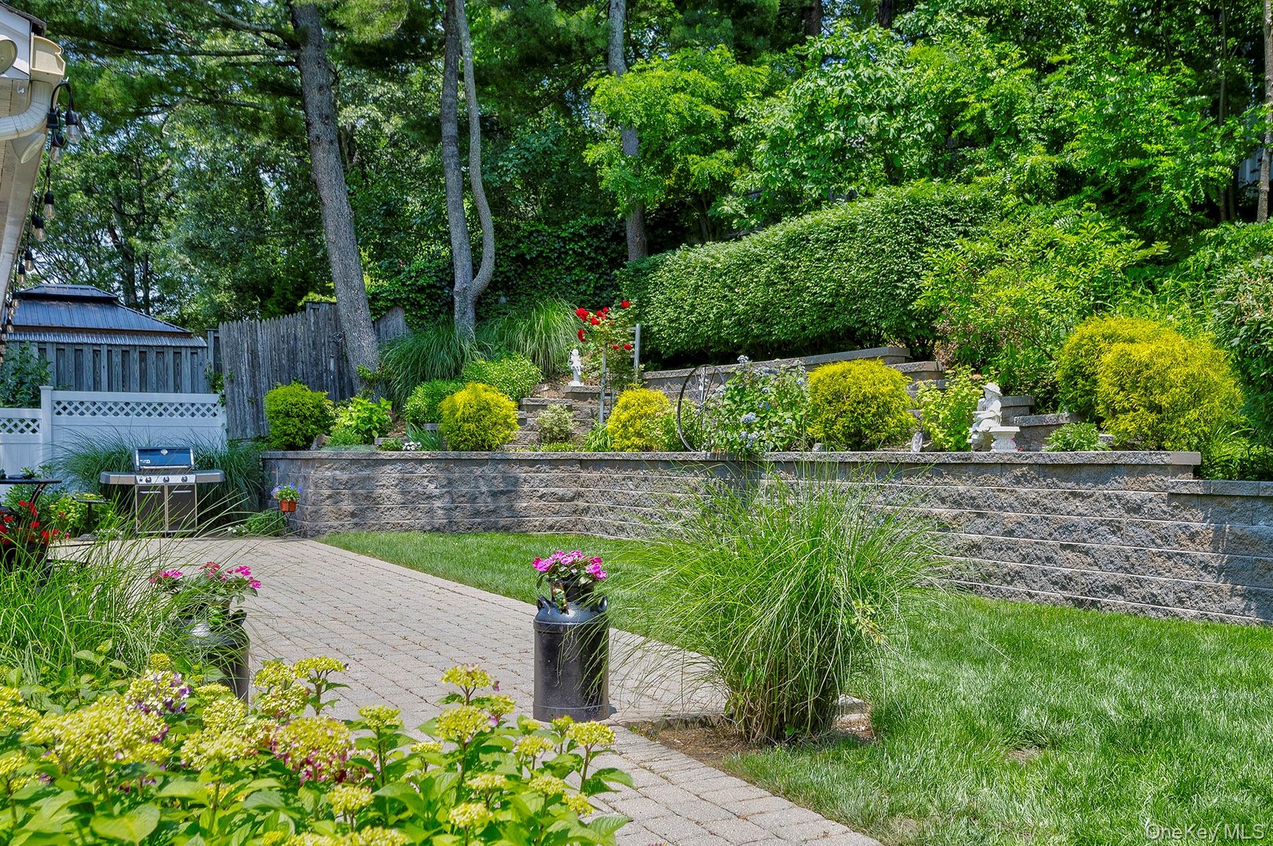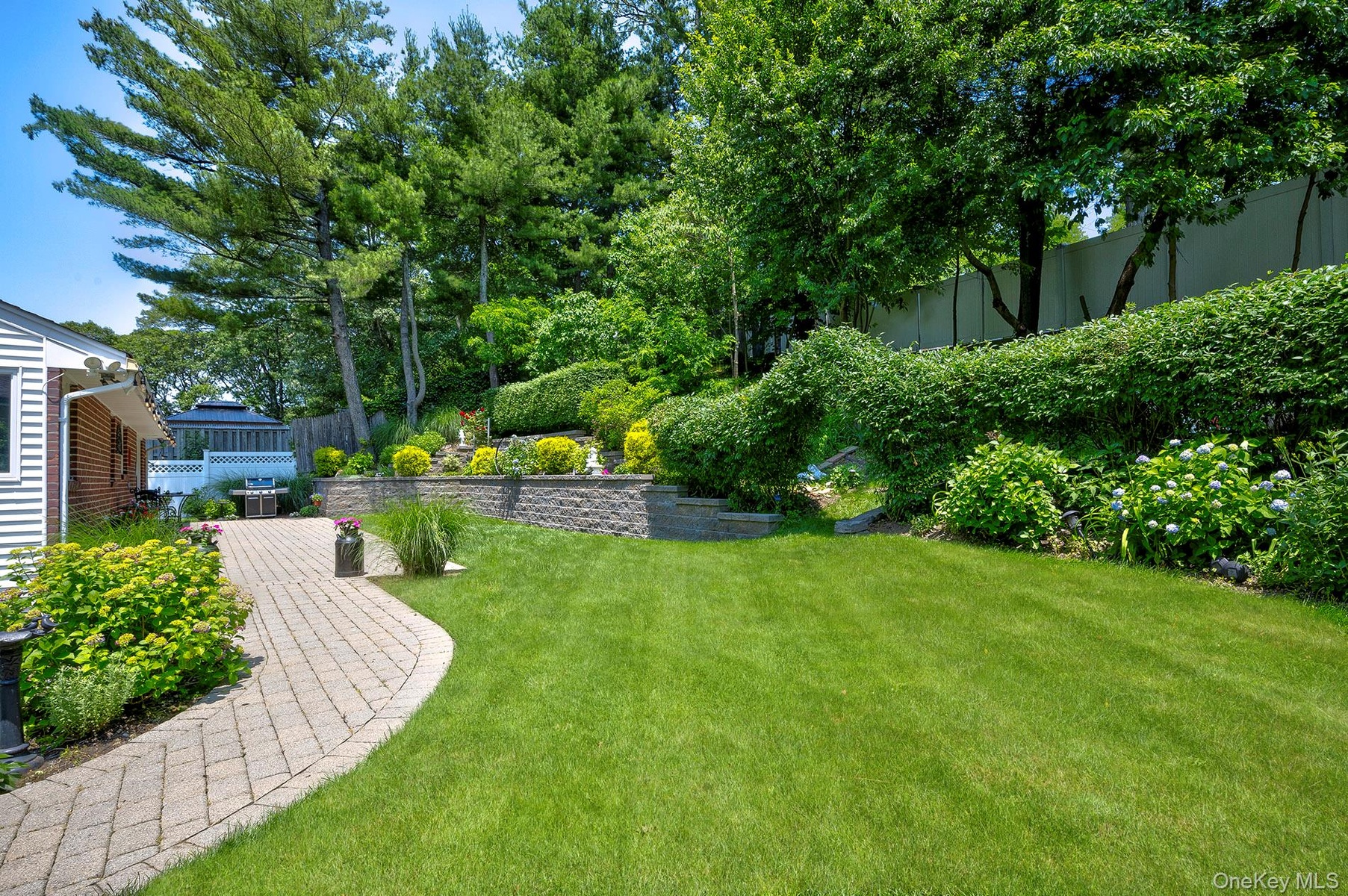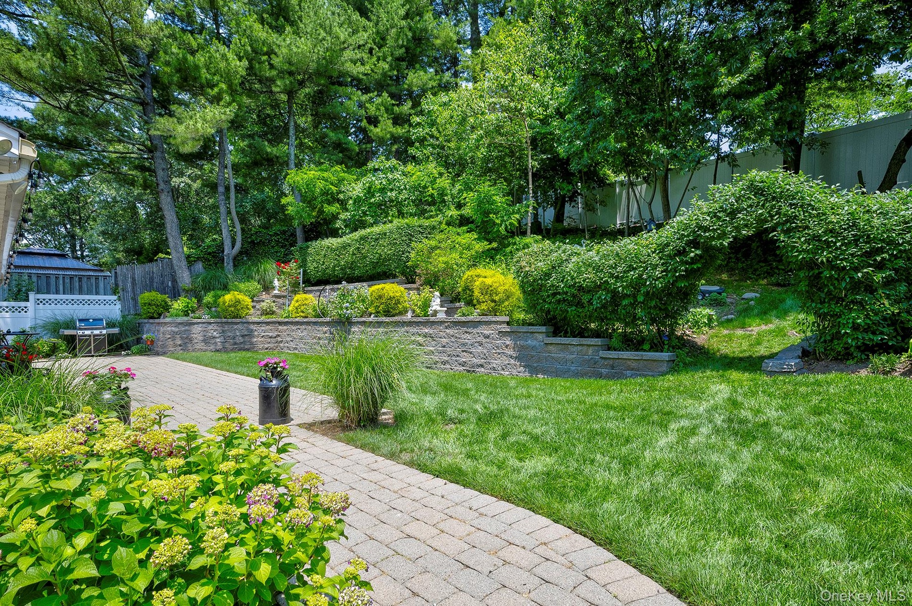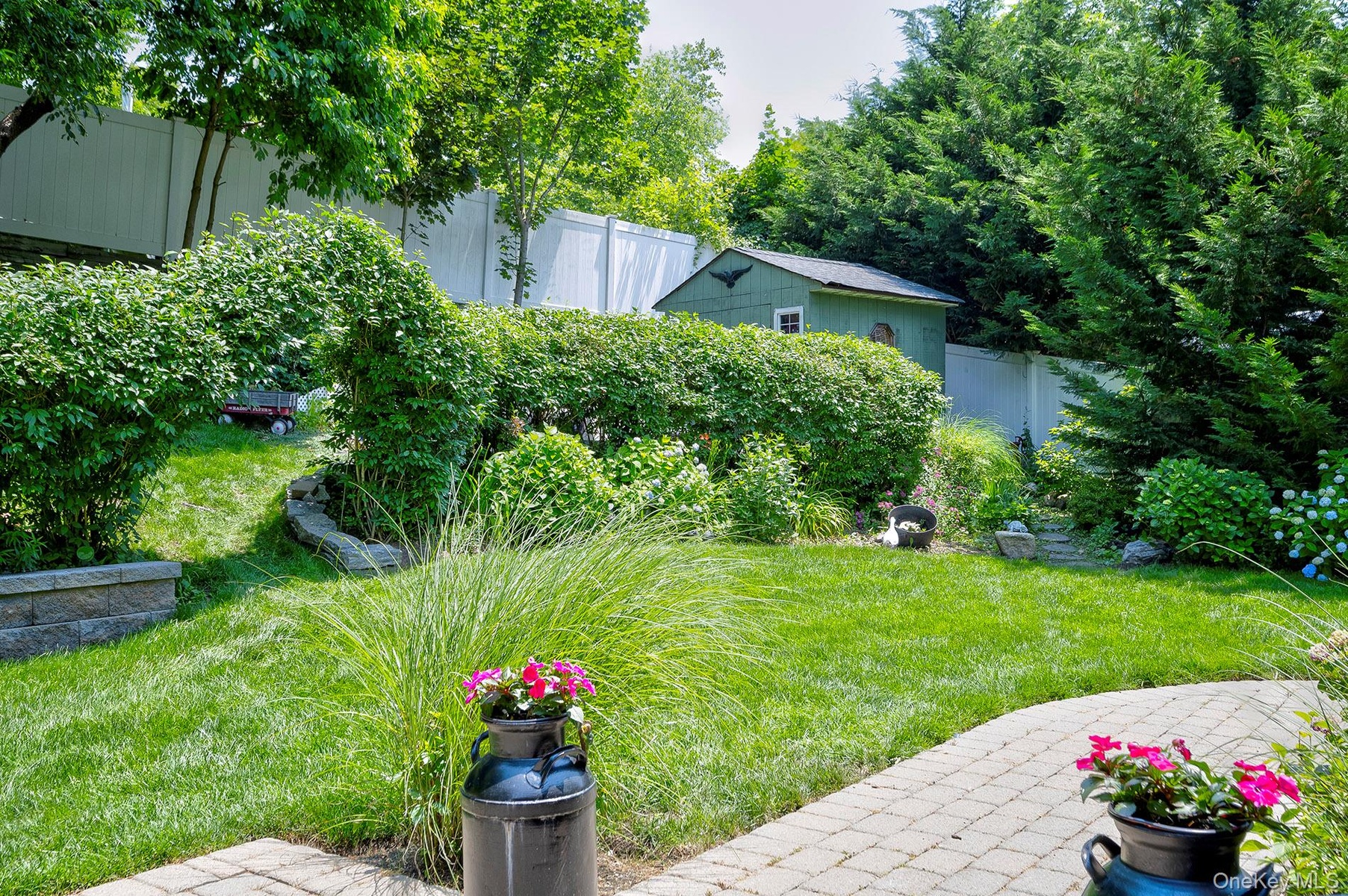 Sliders out to the back yard, your retreat for relaxation and play. Fully fenced and private; quarter acre property. it features a large patio for entertaining, and plenty of room for a pool. Mature plantings will delight the senses and instill a sense of peace. Yes, there is a shed for garden tools and patio gear. And a nature trail to a great view of the sunsets; four seasons of beauty to behold.