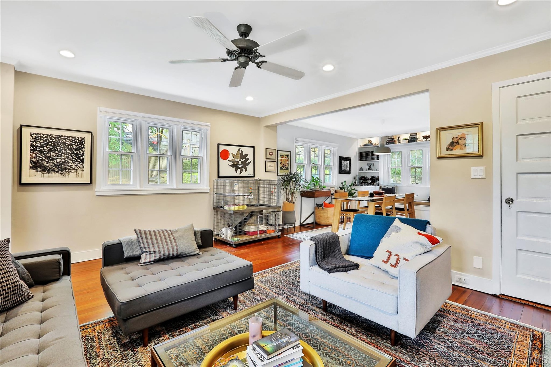 Welcome to 5 Kensington Terrace, a light filled townhouse with three exposures, nestled in the vibrant town of Bronxville -- a short 30-minute Metro North ride to Grand Central Station, steps to train, town and school. Upon entering Kensington Terrace, you’ll be greeted by a beautifully landscaped courtyard that sets the tone for this charming end unit. This home features a welcoming covered front porch, along with a lovely backyard patio and garden, complete with built in BBQ and cook space — perfect for relaxing and entertaining outdoors. Inside, the first floor boasts a spacious living room, with a cozy wood-burning fireplace, bright dining area and white kitchen equipped with updated stainless steel appliances. Enjoy easy access to the private patio from the kitchen. Experience year-round comfort with central air and updated heating system. The second floor offers two bedrooms, a well-appointed hall bath with bathtub, and ample closet space. At the end of the day, retreat to the primary suite on the third floor to relax, with ensuite bath. The finished basement provides additional space for play, office or a home gym and laundry area has a new washer and dryer. Don’t miss the opportunity to visit this delightful home and let the new memories begin. Furniture in photographs is from prior resident, this home will be unfurnished.