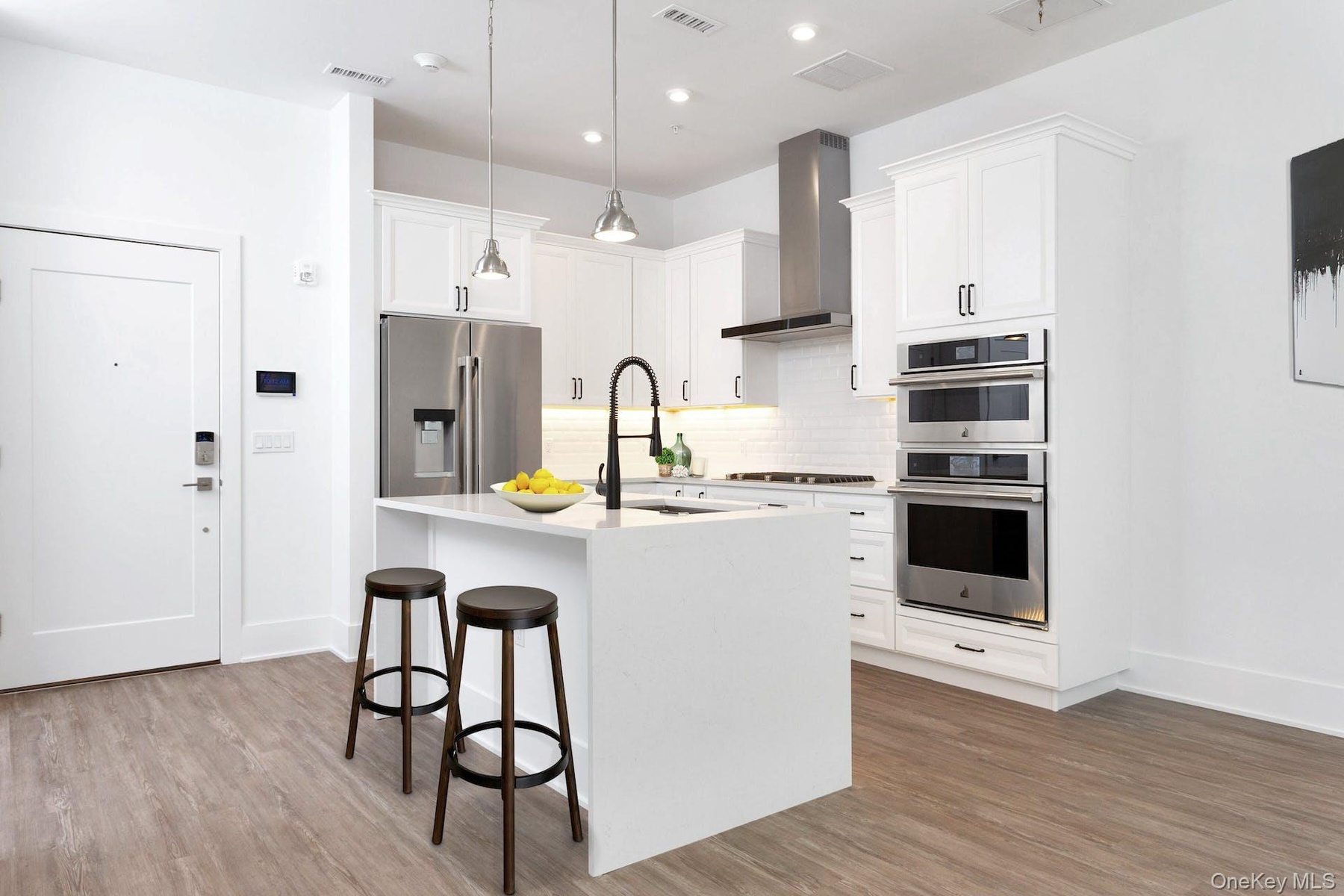 EDGE ON HUDSON in Sleepy Hollow hosts this gorgeous luxury apartment with a contemporary floor plan featuring a stunning custom open concept kitchen with stainless Jen Air appliances, quartz waterfall ...