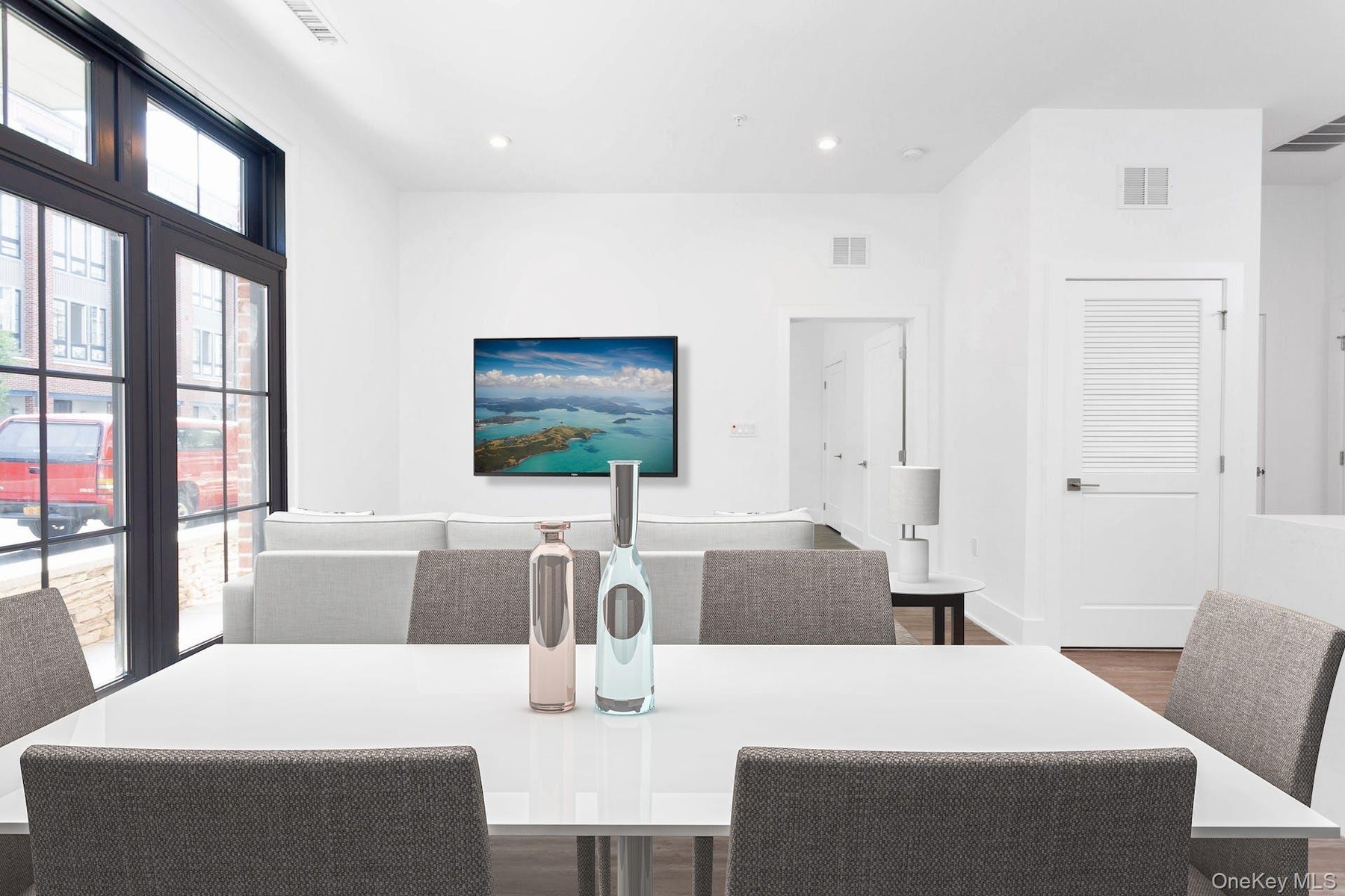 EDGE-ON-HUDSON in Sleepy Hollow hosts this gorgeous luxury apartment with a contemporary floor plan featuring a stunning custom open concept kitchen/with stainless Jen Air appliances, quartz waterfall countertops, under island and cabinet lighting, wall oven and dining and living area with wall to wall glass sliding doors leading to a balcony... other amenities include an upgraded custom bath with spa like walk in shower.. Bedroom has a walk in closet, central air, washer/dryer in unit, and vinyl look hardwood flooring. Included with this condo will be access to the Owners Lounge, Fitness Room, landscaping and snow removal... Private heated garage with EV charger...Short walk to Village of Sleepy Hollow, and Kingsland Park Lighthouse..less than 1 mile from Tarrytown Train Station.. tram is available .. coming soon will be Waterfront Retail and Restaurants and steps away to the new Deciccos and Sons Gourmet market now open.. Don't miss this opportunity to own the only one Bedroom apartment in this Exclusive Townhome Development...