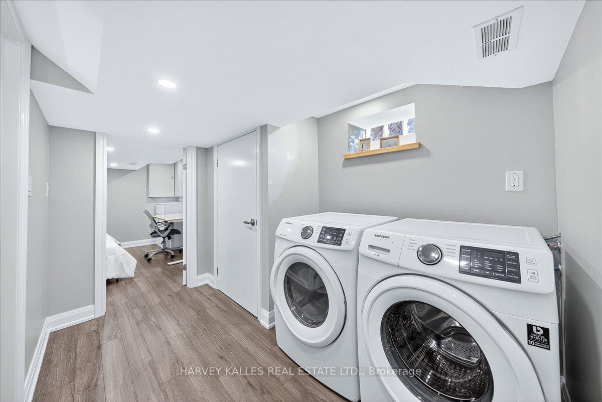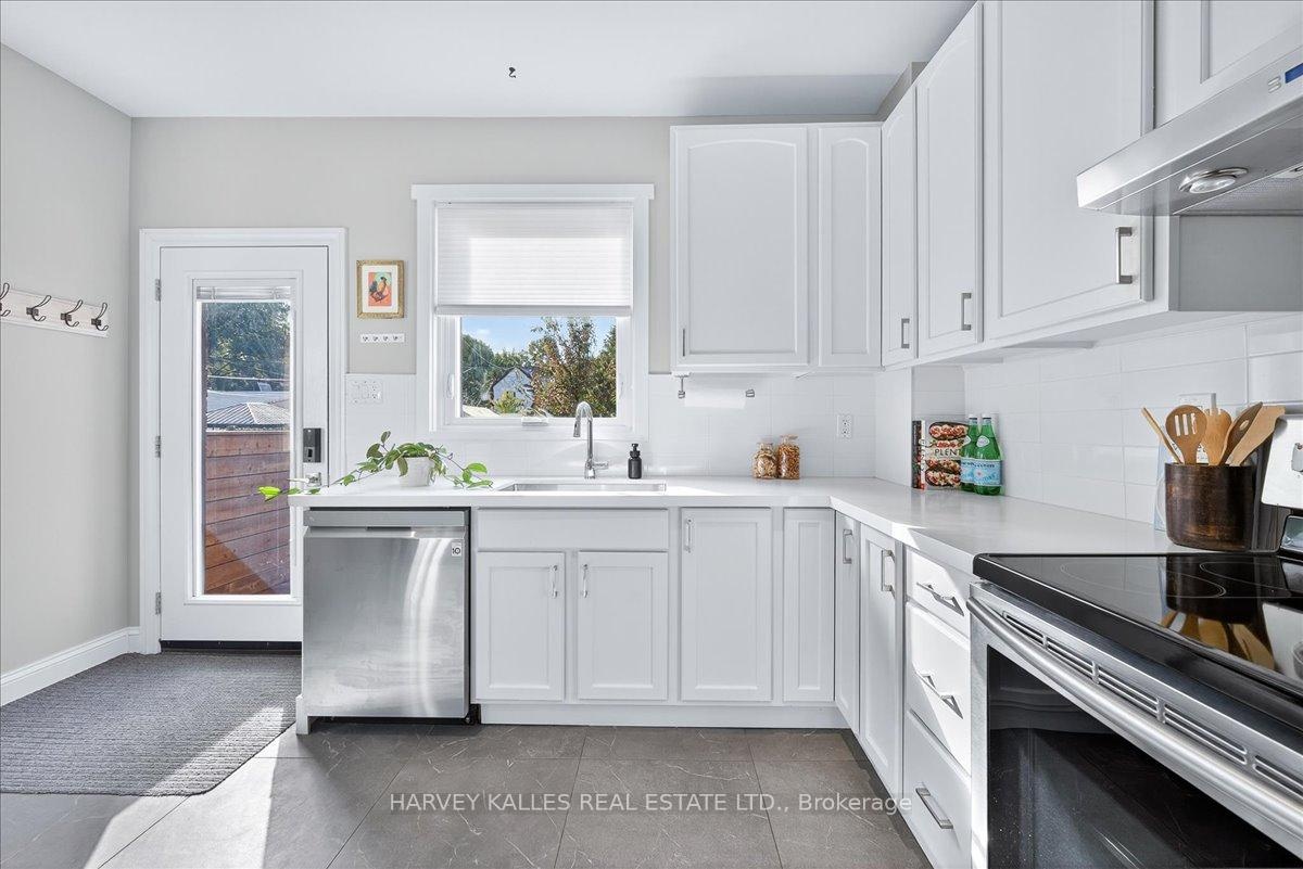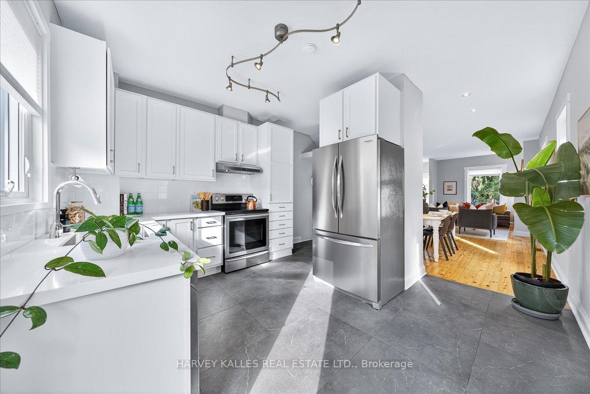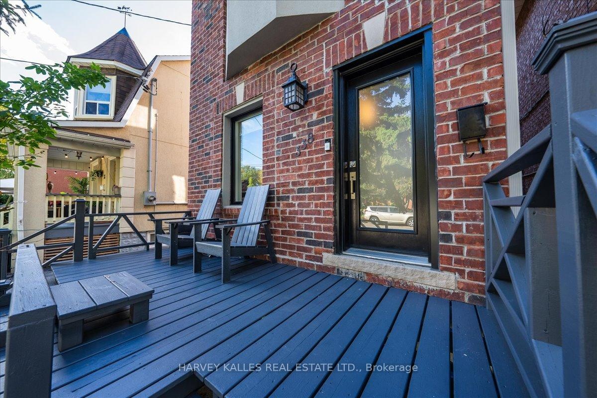On a quiet, tree-lined street steps to lively Geary Avenue, this re-imagined Edwardian is bright, warm, and move-in ready. Classic details-hardwood floors and a cozy gas fireplace-mix with modern updates for easy family living. The main floor flows from open living/dining into a crisp white kitchen with quartz counters, stainless appliances, and handy main-floor laundry. A walkout leads to a large private deck and a long, leafy backyard with a mature pear tree, garden beds, a shed, and new fencing-an everyday oasis and the perfect spot for summer dinners and BBQs. Upstairs, 3+1 bedrooms give you flexibility, including a sun-filled third-floor loft with a renovated ensuite (ideal primary, studio, or retreat) plus a second-floor office nook. A separate, newly renovated lower-level one-bedroom suite with its own entrance and laundry has substantial income potential or is perfect for in-laws. With two car parking and an EV charger, this house truly has it all. Check all your boxes with338 Bartlett. Notable upgrades: All new windows (2023), high-powered mini-split A/C (2024), EV charger (2024), new fence (2024), new furnace (2024), upgraded deck (2025), fresh paint (2025),landscaping (2025).Love the location: Geary Avenue - named #26 coolest neighbourhood in the world by TimeOut - plus Regal Rd Jr. P.S., Dovercourt Park, the new Wallace Emerson Community Centre, new park being built along Geary, and quick access to Bloor, St. Clair, and Dufferin Station.