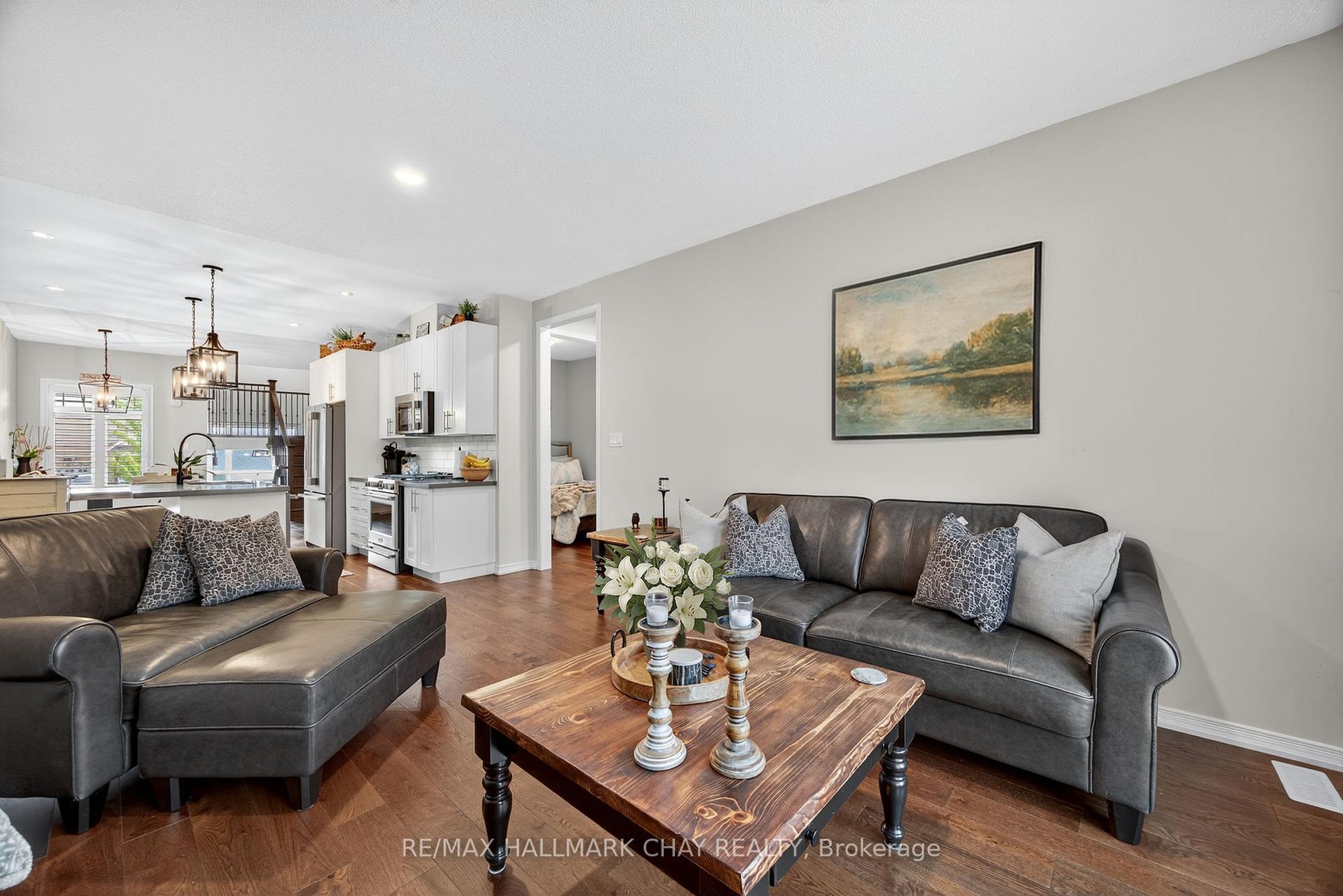 Completely Turn Key, 2019 Built, All Brick & Stone, Bungaloft Townhome In Sought After Orillia! With Over 2,300+ SqFt Of Available Living Space, Welcoming Front Foyer Leads To Open Concept Layout Featuring Elegant Finishes, Rich Hardwood Flooring, 9ft Ceilings, California Shutters, & Large Windows Throughout! Modern White Kitchen Boasts Stainless Steel Appliances Including Gas Range, Quartz Counters, Subway Tile Backsplash, & Large Centre Island With Breakfast Bar Seating. Living Room With Walk-Out To Backyard Deck, & Fully Fenced Private Backyard. 2 Bedrooms On The Main Level Are Great For Guests Or Family To Stay, With Closet Space, & Shared 3 Piece Bathroom! Retreat To The Private Primary Bedroom On The Upper Level, With Double Closets, 3 Piece Ensuite With Tile Flooring, & Additional Linen Closet! Fully Finished Basement Features Cozy Broadloom Flooring, Spacious Rec Room, & Additional Bedroom! Lower Level Laundry Completes The Basement With Laundry Sink & Additional Storage Space. Stunning Curb Appeal With Interlocked Driveway & Landscaped Lot. 1 Car Garage With Inside Access To Front Foyer & Direct Access To Backyard! Plus 3 Driveway Parking Spaces With No Sidewalk! Nestled In An Ideal Location, Close To All Major Amenities Including Costco, Lakehead University, Recreation Centres & Sports Complexes, Walter Henry Park, Hospital, Bass Lake, Provincial Parks, Walking Trails, & Couchiching Lake, Beach, & Golf + Country Club! With Tons Of Activities For The Whole Family To Enjoy, All That's Left To Do Is Move In!