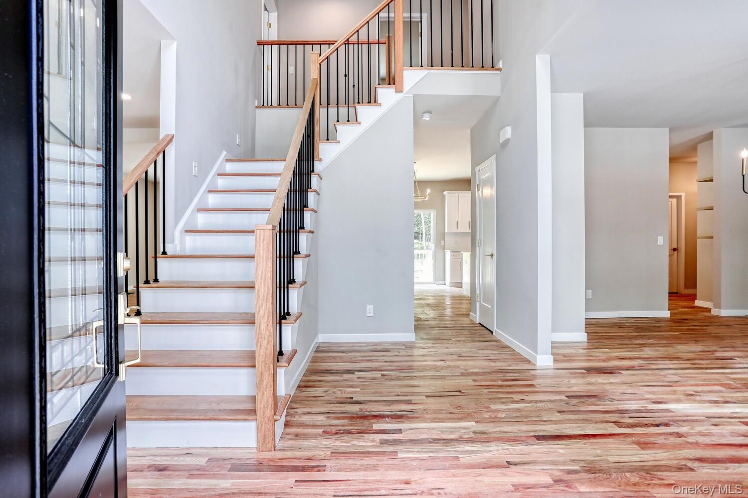 Inside, an impressive two-story foyer sets the tone, opening to a bright, airy main level designed for today’s lifestyle. The gourmet walk-through kitchen features Quartz countertops, stainless steel appliances, a designer farmhouse apron-front sink, a vented range hood, center island, chic tile backsplash, and ambient lighting, all connecting seamlessly to the cozy dinette and spacious family room with a custom-built dramatic gas fireplace. Entertain in style in the formal dining room, or retreat to the inviting living room and versatile office/den. A stylish powder room adds convenience to the main level.