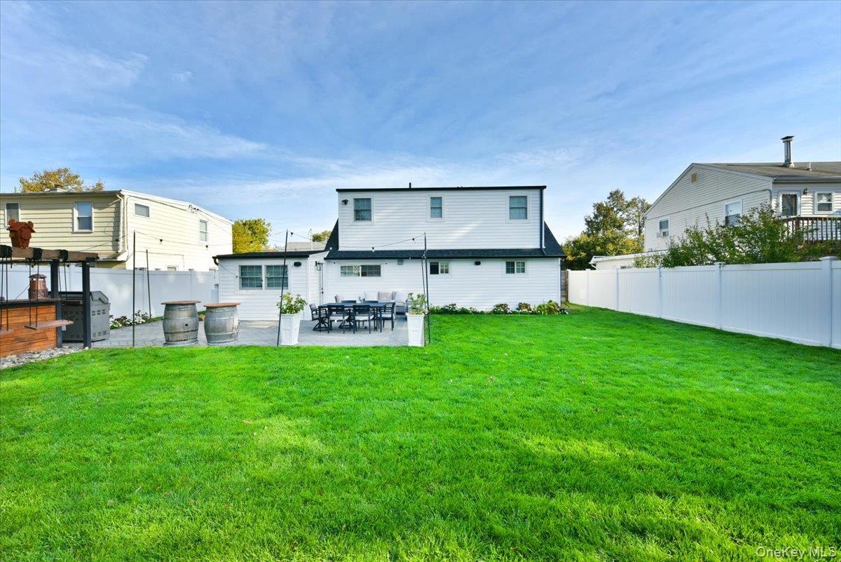 Meticulously Renovated Cape Located In Massapequa. Entire House Was Renovated In 2021, Including New Roof, New Kitchen, New Baths, Entire House Spray Foamed & Rewired, New Ducts & HVAC High Efficiency System & 200 Amp Svc. New Andersen Windows, New Siding & Front Walkway Redone In 2024. This Home Features Laminate Floors Throughout, Crown Molding, Recessed Lighting, Eik W/Crisp White Cabinetry, SS Appliances, Tile Backsplash & Quartz Countertop, Formal Dining Room, Living Room, 4 Bedrooms, 2 Full Hall bathrooms, Laundry Room W/Utilities & Storage. Fully Fenced In Private Yard W/Outdoor Speaker System Perfect For Entertaining Or Just Relaxing. Nothing To Do In This Home Except Unpack & Enjoy Your New Home. Conveniently Located Near Schools, Restaurants, Shopping, Parks & Transportation. Welcome Home :)