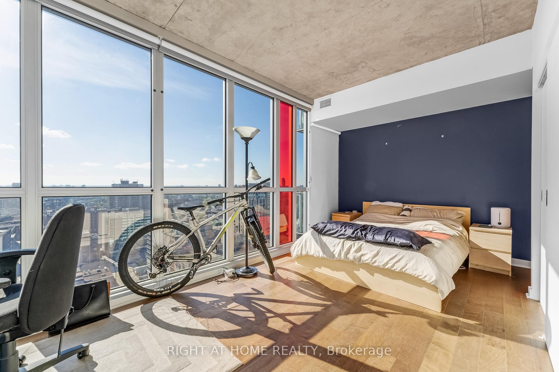 Welcome to the 20th floor of The Mondrian where style, tech, and city living come together in downtown Ottawa.This bright and spacious corner unit offers jaw-dropping panoramic views from Parliament Hill to the Ottawa River and the Centretown skyline. With floor-to-ceiling reflective glass windows (outside people cannot see the inside) wrapping the open-concept living space, natural light pours in all day long. Inside, youll find: Open concept living / dining / Kitchen. Two roomy bedrooms, Smart automated lighting, Sleek Somfy motorized blackout blinds, Rich engineered hardwood floors (2018). A modern kitchen with dark cabinetry and stainless steel appliances. The primary bedroom is oversized and features its own heat pump, wall lenght closet The second bedroom fits a queen size bed with two night tables, it can also be used as an office, or a family room. Step out onto your private balcony, no neighbours on either side offering an unobstructed view. The building presents an Outdoor pool, Terrace with luxury lounge area, Party room with its own kitchen, dining table, TV and Pool table. Outdoor dining areas and BBQ, large well equipped Gym. In-Unit storage, Under ground heated parking is extra large. Daytime Concierge with security service during the nights and weekends. Three high speed elevators. Steps from Ottawas best restaurants, cafes, shops, the LRT, Confederation Park, City Hall and Parliament Hill. Live where the city buzzes and everythings at your fingertips. Welcome home :)