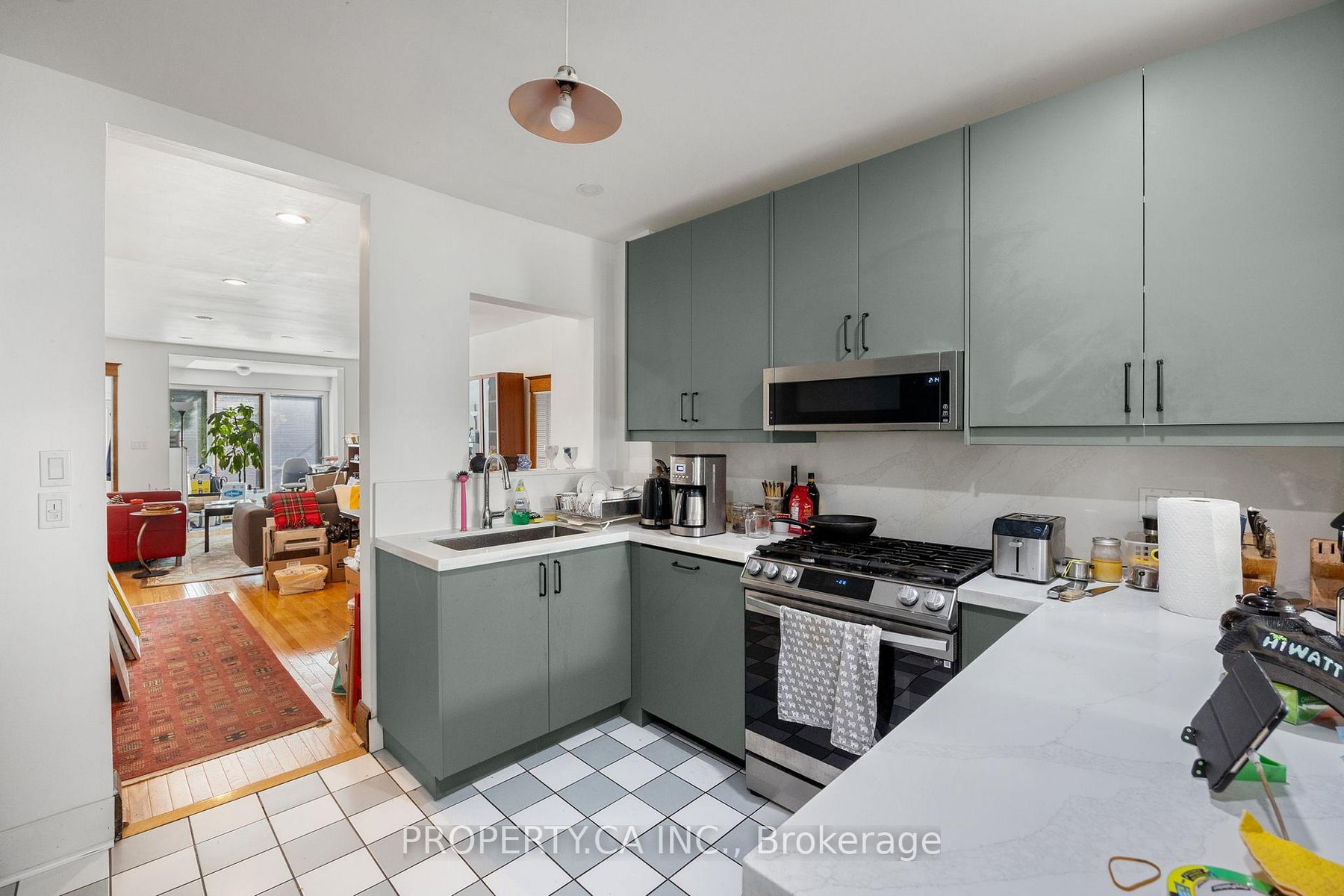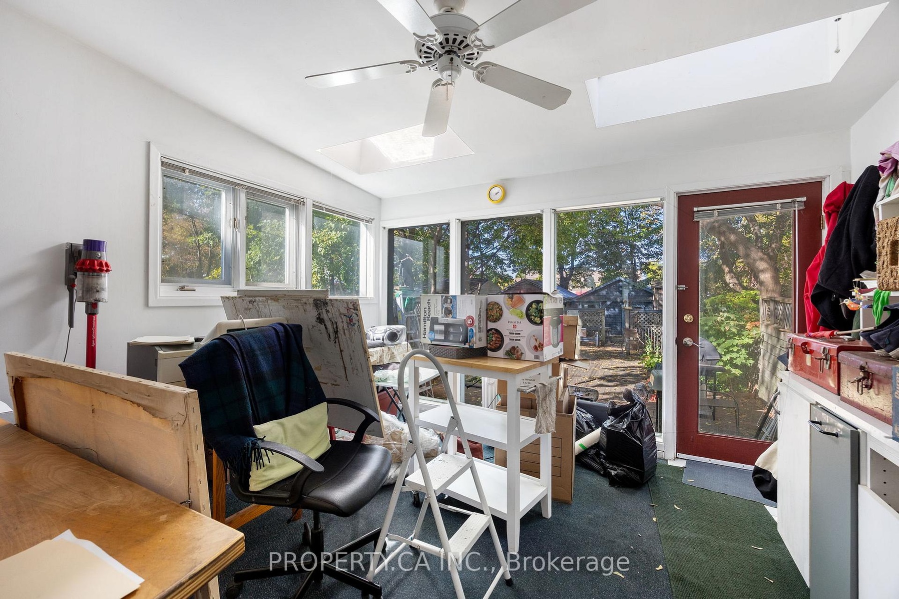 Sun-filled detached 2-storey home - a true cottage in the city - featuring an expansive backyard and a bright sunroom overlooking the decked yard. This beautifully maintained residence offers 3 bedrooms on the upper level with a potential 4th bedroom or office in the basement, 2 full bathrooms, and ensuite laundry. Enjoy an open-concept main floor with hardwood throughout, a renovated kitchen with stainless steel appliances, and sightlines to both the sunroom and spacious living/dining area. A charming front alcove with floor-to-ceiling windows adds warmth and character the family room. Includes one front pad parking spot. Conveniently located south of the Danforth, just steps to Main Street Subway, GO Station, shops, and all neighbourhood amenities. Central heating and air conditioning for year-round comfort. Tenants pay utilities.
