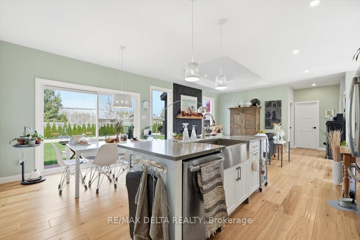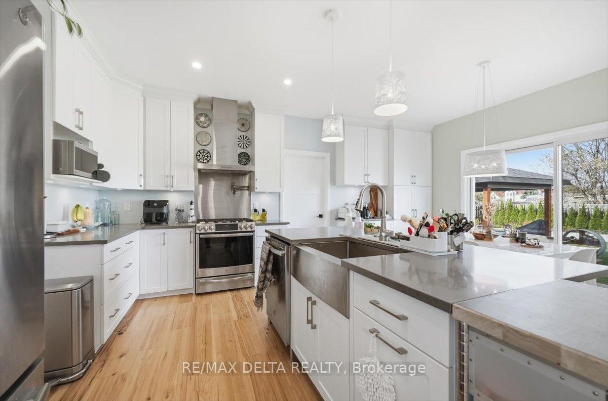 Welcome to 117 Danika. This beautiful bungalow has it all, style and quality workmanship. Beautifully designed and decorated with loads of upgrades. Separate list is attached. On the main floor, you will find an open concept kitchen with white cabinets with grey quartz countertops, stainless steel backsplash, practical water tap located over the gas range adds a rare feature to the cooking area, dining and living areas with plenty of natural light with an 8ft patio door, gleaming hardwood floors, a natural gas fireplace to cozy up and relax, beautiful neutral colors to suit all styles. 3 generous size bedrooms on the main floor + 1 large bedroom in the lower level. A spa style 4 pce ensuite, another 3 pce main bathroom on the main floor PLUS a 2 pce bathroom in the lower level. Fully finished lower level includes a very large rec room, a workshop/utility room. The beauty of this home is the exterior, fully landscaped with custom timber framed privacy screen for additional privacy on each side of the home with matching solid timber on the garage & facade.reddish lumber trim beams with quality stainless steel plates and carriage bowls, stylish custom built gazebo with pot lights, trees, stunning concrete front patio, PLUS a large detached garage 30 ft X 12 ft on concrete foundation with hydro perfect for the hobbyist in the family, added window wells,. Plug-in ready for future generator. With over $150,000 in upgrades (laneway paved, wood floor on main level, concrete front patio, concrete curbed mow strip, gazebo, added 4th garage, backyard underground draining piping with downspouts connected, concrete block retaining wall, and the list goes on. This makes this home one of a kind that you won't want to miss. Complete list of renos available upon request. No front neighbours (wooded area).