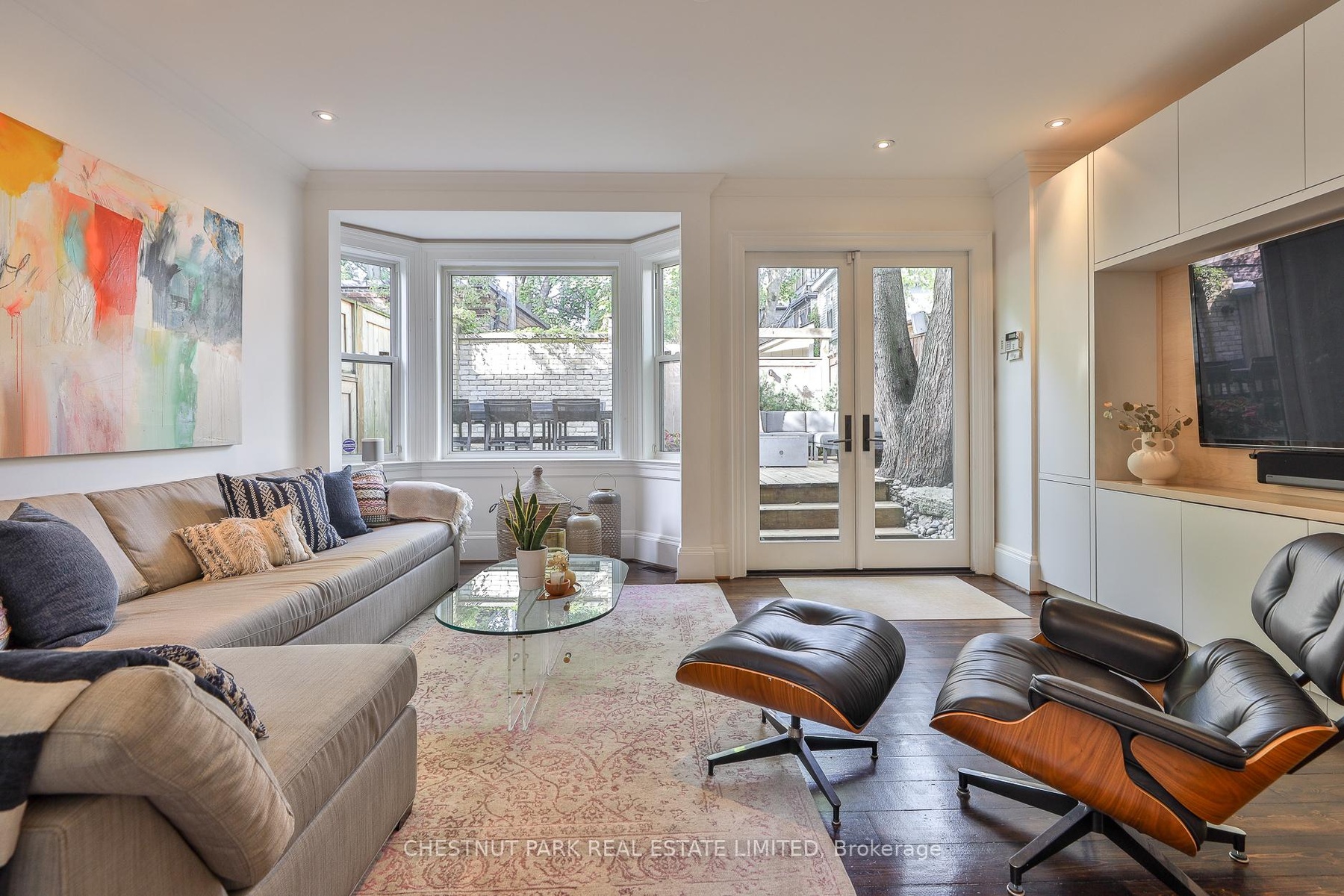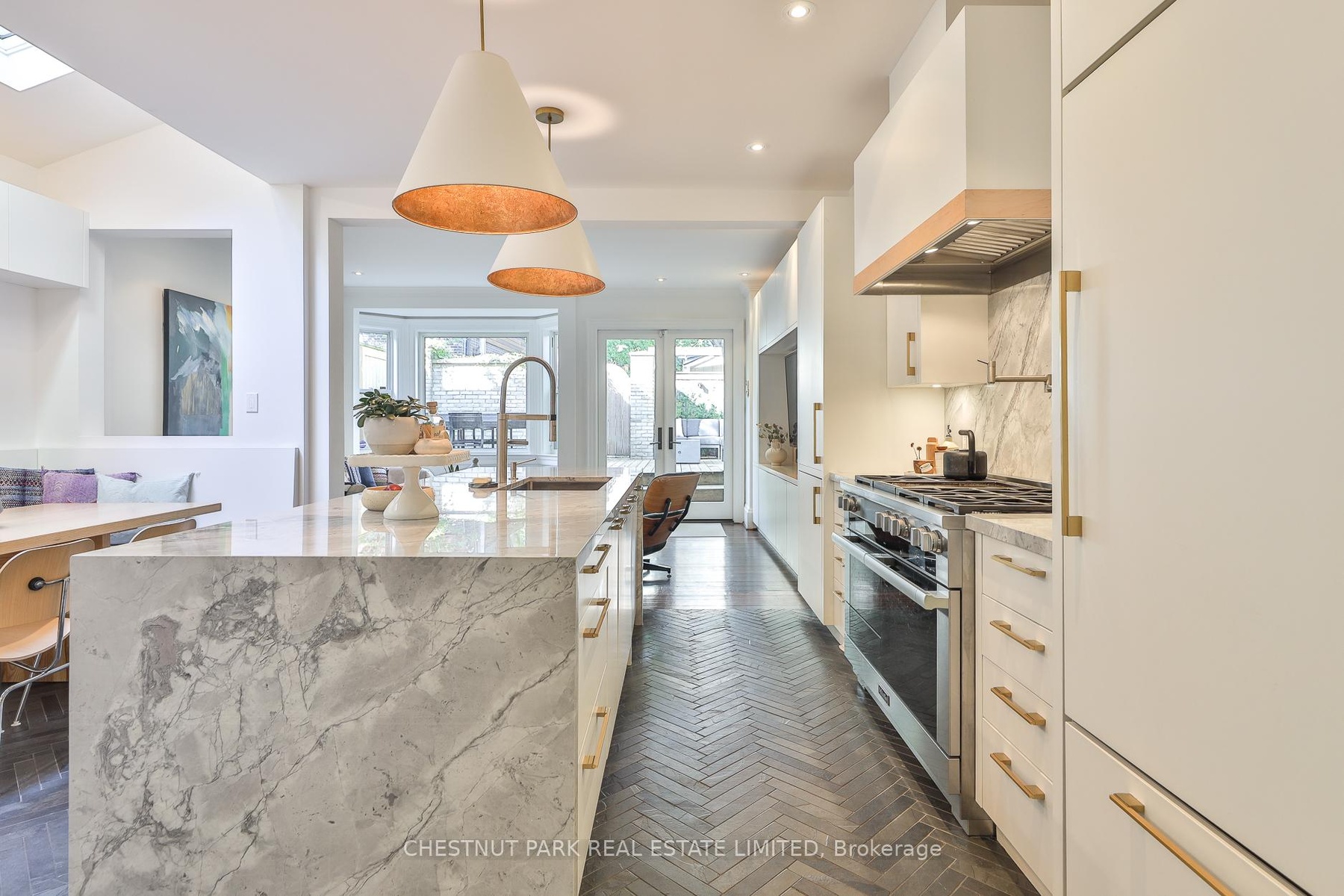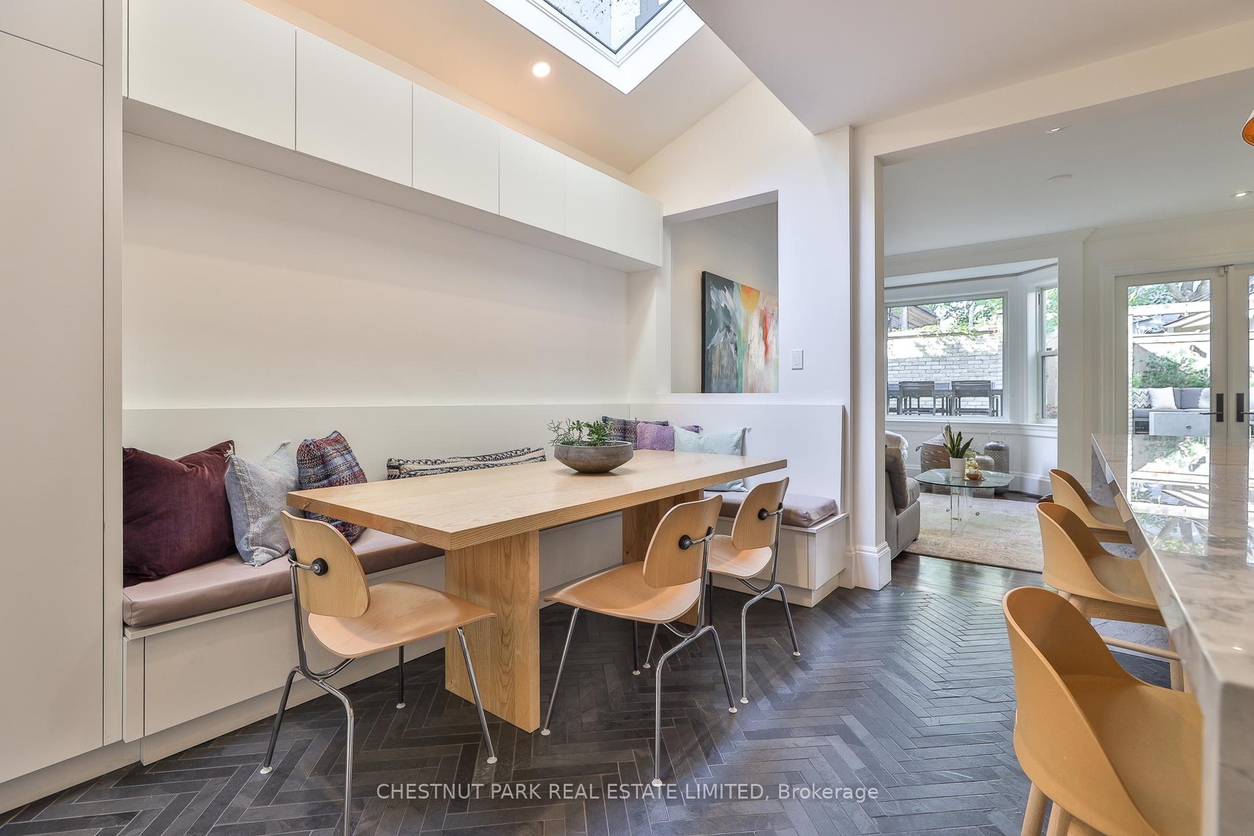 Behind the doors of this quaint heritage home is a thoughtfully renovated Cabbagetown residence that blends historic charm with modern functionality. It's rare to find a renovated Cabbagetown property with a front hall closet, main floor powder room, breakfast room, family room, parking and generous storage throughout. The main floor offers gracious principal rooms designed for everyday living and entertaining. The living room features a gas fireplace, while the dining room includes a built-in buffet with custom storage and a pullout bar. The open-concept kitchen and family room are filled with natural light from three skylights, a bay window, and a glass walkout to the private deck. The kitchen is equipped with a Miele slide-in range (six burners, griddle, and double oven/microwave), a waterfall quartzite centre island, walk-in pantry, built-in banquette with storage, heated floors, and a dedicated organization 'drop zone' for busy family life. Upstairs, the second level includes three spacious bedrooms and two bathrooms, including a king-sized primary suite with built-ins, three double closets, and a large ensuite with a steam shower. The third floor offers a bright, king-sized bedroom retreat.The finished lower level features a gym, a bathroom with walk-in shower and built-in bench, a laundry room with sink and custom storage, and a media room with built-in projector, motorized screen, and exhaust fan. Additional highlights include wall-to-wall basement storage with retractable valet rods, Insteon smart lighting, a new cedar shake roof (2024), and a parking space with storage shed. A veritable Cabbagetown unicorn!