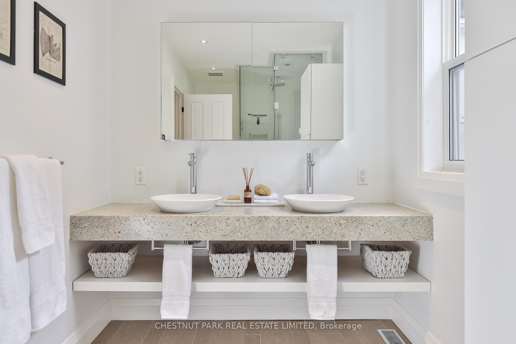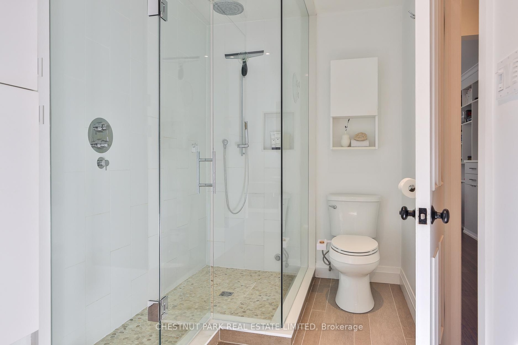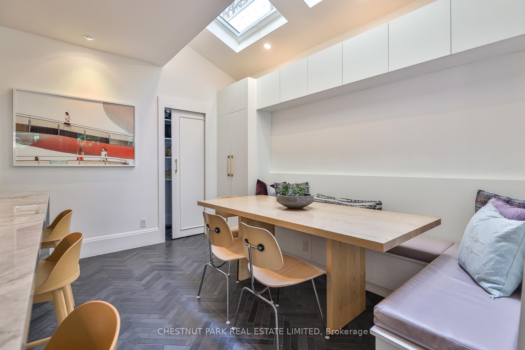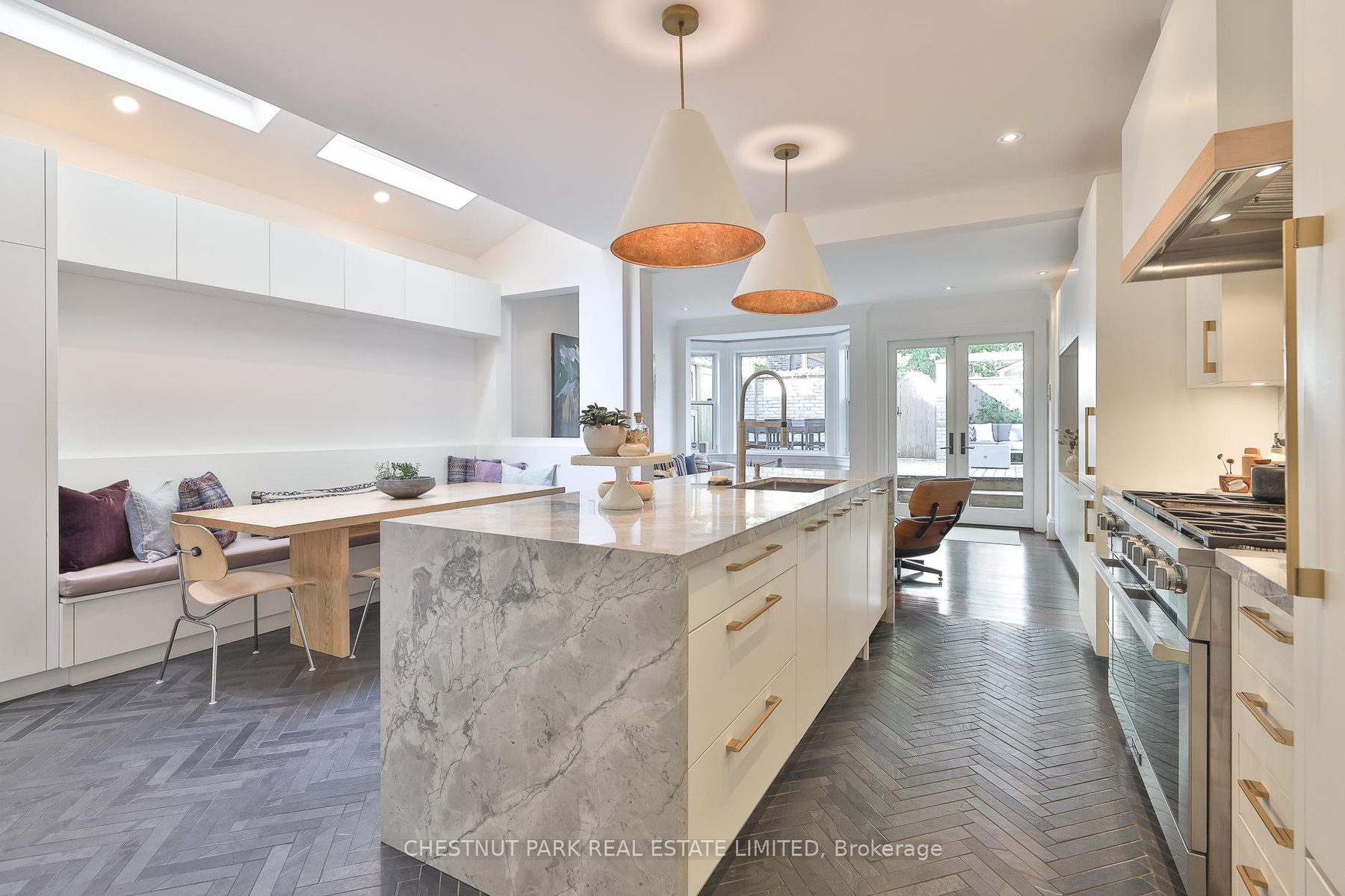 Behind the doors of this quaint heritage home is a thoughtfully renovated Cabbagetown residence that blends historic charm with modern functionality. It's rare to find a renovated Cabbagetown property with a front hall closet, main floor powder room, breakfast room, family room, parking and generous storage throughout. The main floor offers gracious principal rooms designed for everyday living and entertaining. The living room features a gas fireplace, while the dining room includes a built-in buffet with custom storage and a pullout bar. The open-concept kitchen and family room are filled with natural light from three skylights, a bay window, and a glass walkout to the private deck. The kitchen is equipped with a Miele slide-in range (six burners, griddle, and double oven/microwave), a waterfall quartzite centre island, walk-in pantry, built-in banquette with storage, heated floors, and a dedicated organization 'drop zone' for busy family life. Upstairs, the second level includes three spacious bedrooms and two bathrooms, including a king-sized primary suite with built-ins, three double closets, and a large ensuite with a steam shower. The third floor offers a bright, king-sized bedroom retreat.The finished lower level features a gym, a bathroom with walk-in shower and built-in bench, a laundry room with sink and custom storage, and a media room with built-in projector, motorized screen, and exhaust fan. Additional highlights include wall-to-wall basement storage with retractable valet rods, Insteon smart lighting, a new cedar shake roof (2024), and a parking space with storage shed. A veritable Cabbagetown unicorn!