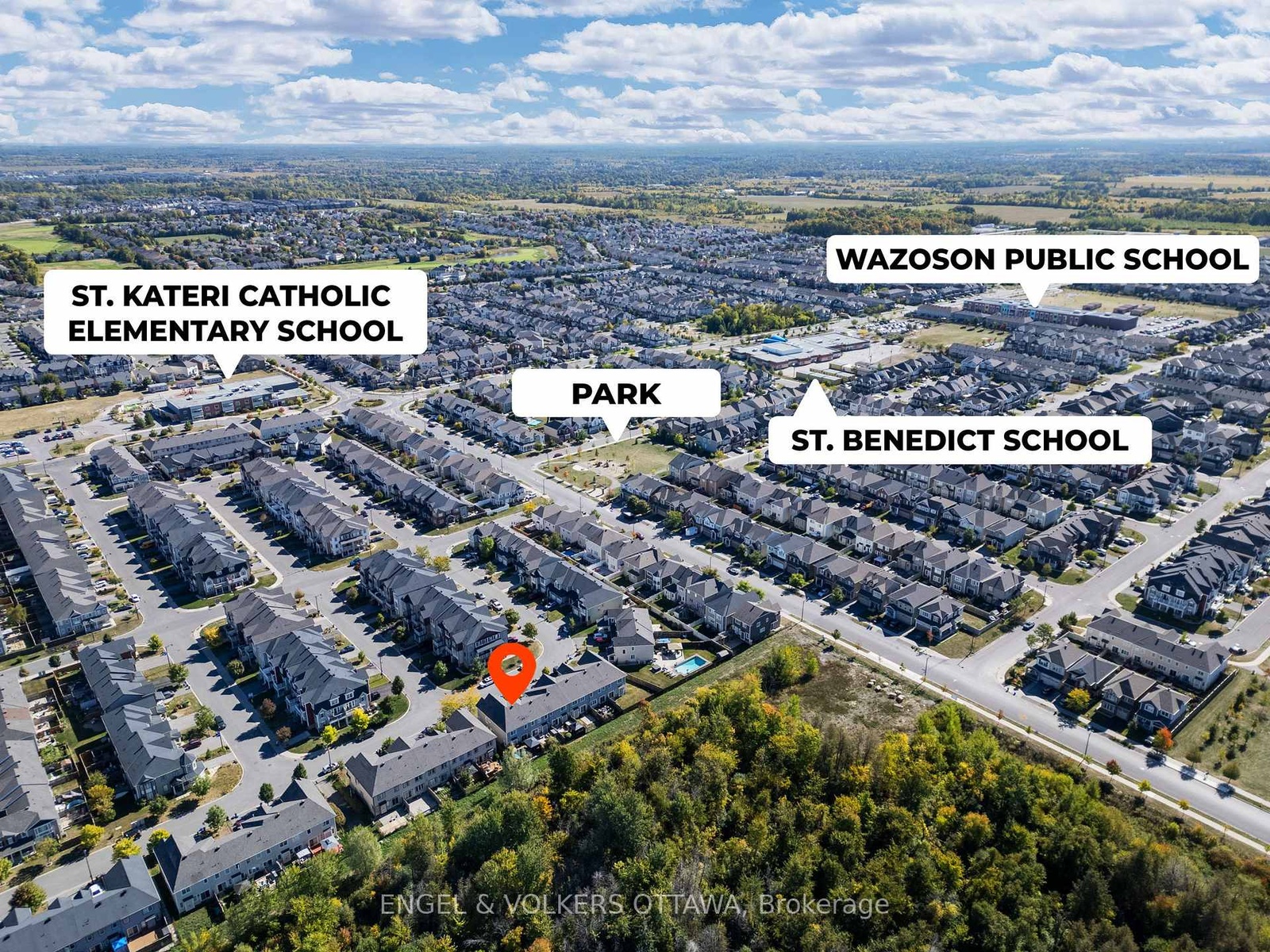 Welcome to 760 Mayfly Crescent - a beautifully maintained and upgraded 3-bed, 2.5-bath end-unit townhome with no rear neighbours! This bright and spacious Mattamy "Oak End" model offers a stylish open-concept design and a highly functional layout, perfect for family living. The main floor features hardwood flooring, fresh paint throughout, a convenient powder room, and an inviting foyer. The modern kitchen is equipped with granite countertops, ample cabinetry, stainless steel appliances, and a large breakfast bar. The living and dining areas include a cozy gas fireplace, plenty of natural light, and access to the backyard through patio doors. Upstairs, you'll find three generous bedrooms, including a primary suite with a walk-in closet and 4-piece ensuite. The additional bedrooms are ideal for children, guests, or a home office, along with a full bathroom and a laundry room. Step outside to your fully fenced backyard oasis - a low-maintenance retreat backing onto green space, complete with a heated pool and gazebo for relaxing and entertaining. The spacious basement provides excellent flexibility for a gym, recreation room, or additional storage. Located on a quiet, family-friendly street, you're just minutes from parks, schools, grocery stores, shops, and public transit, with an easy commute to downtown Ottawa. Lovingly cared for and move-in ready, this home offers the perfect blend of style, comfort, and outdoor enjoyment!