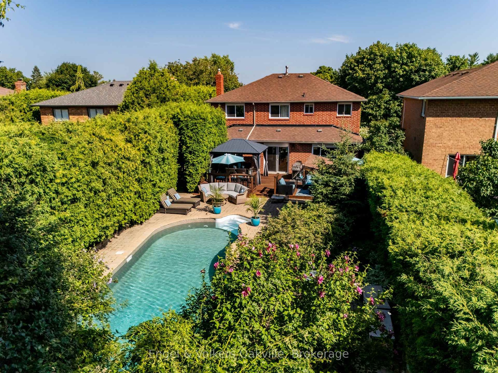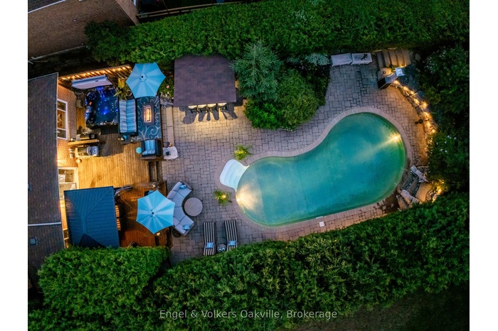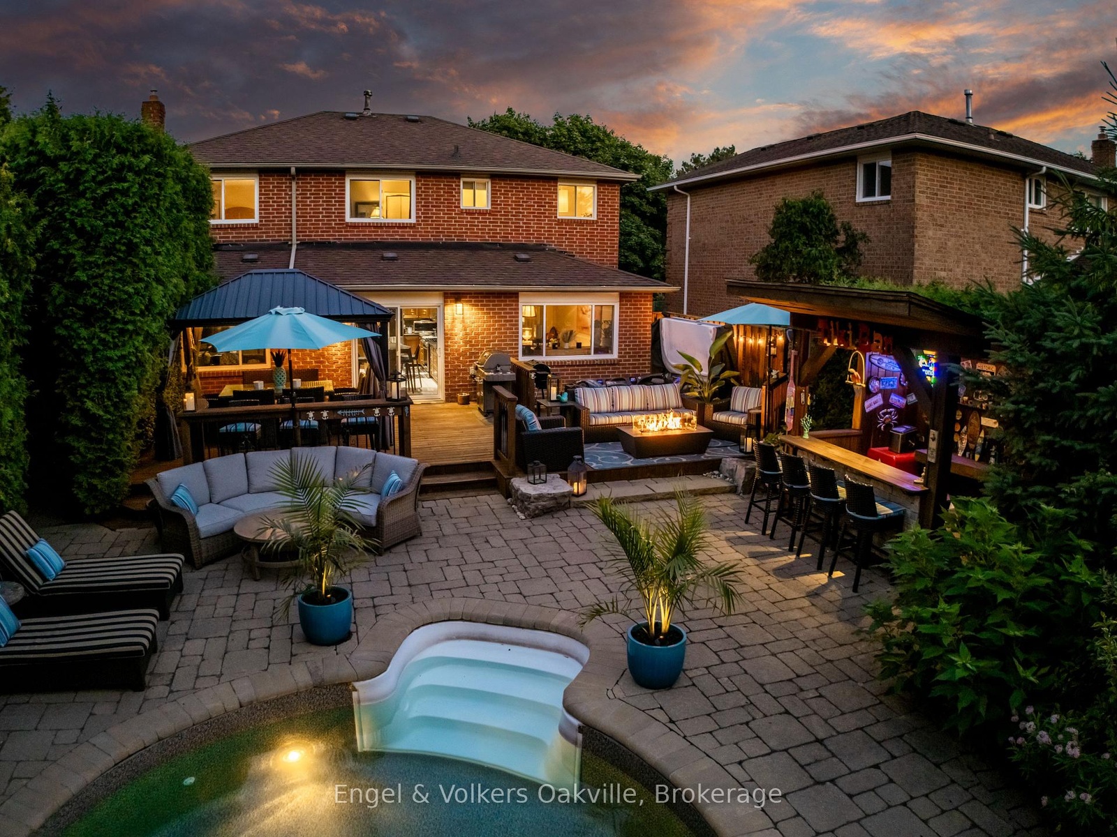 Welcome to an exceptionally rare find in Falgarwood, featuring an approximately 200-foot-deep lot that creates a truly private sanctuary. This stunning 4-bedroom home perfectly blends luxury with unbeatable convenience, offering a spectacular, resort-style backyard oasis complete with a custom in-ground pool, a new 6-person hot tub (2022), ambient lighting, a fully equipped Tiki lounge, and a fire-pit area-the ultimate setting for private relaxation or grand entertaining. Inside, enjoy freshly painted principal rooms, including a superb living/dining great room, alongside an oversized primary suite and three generous secondary bedrooms. Situated on a family-friendly street, you're just a short walk from Iroquois Ridge High School and all major amenities, with immediate access to every major highway, making this a unique and highly sought-after forever home. Follow Your Dream Home as Your Backyard Paradise Awaits. Don't Miss This One!