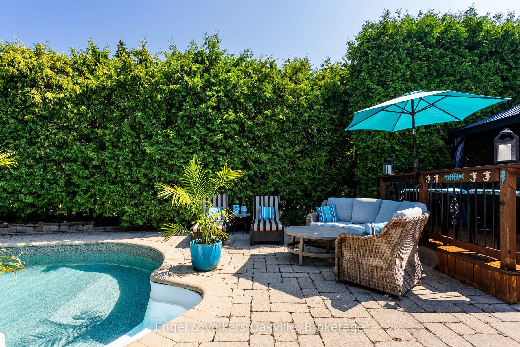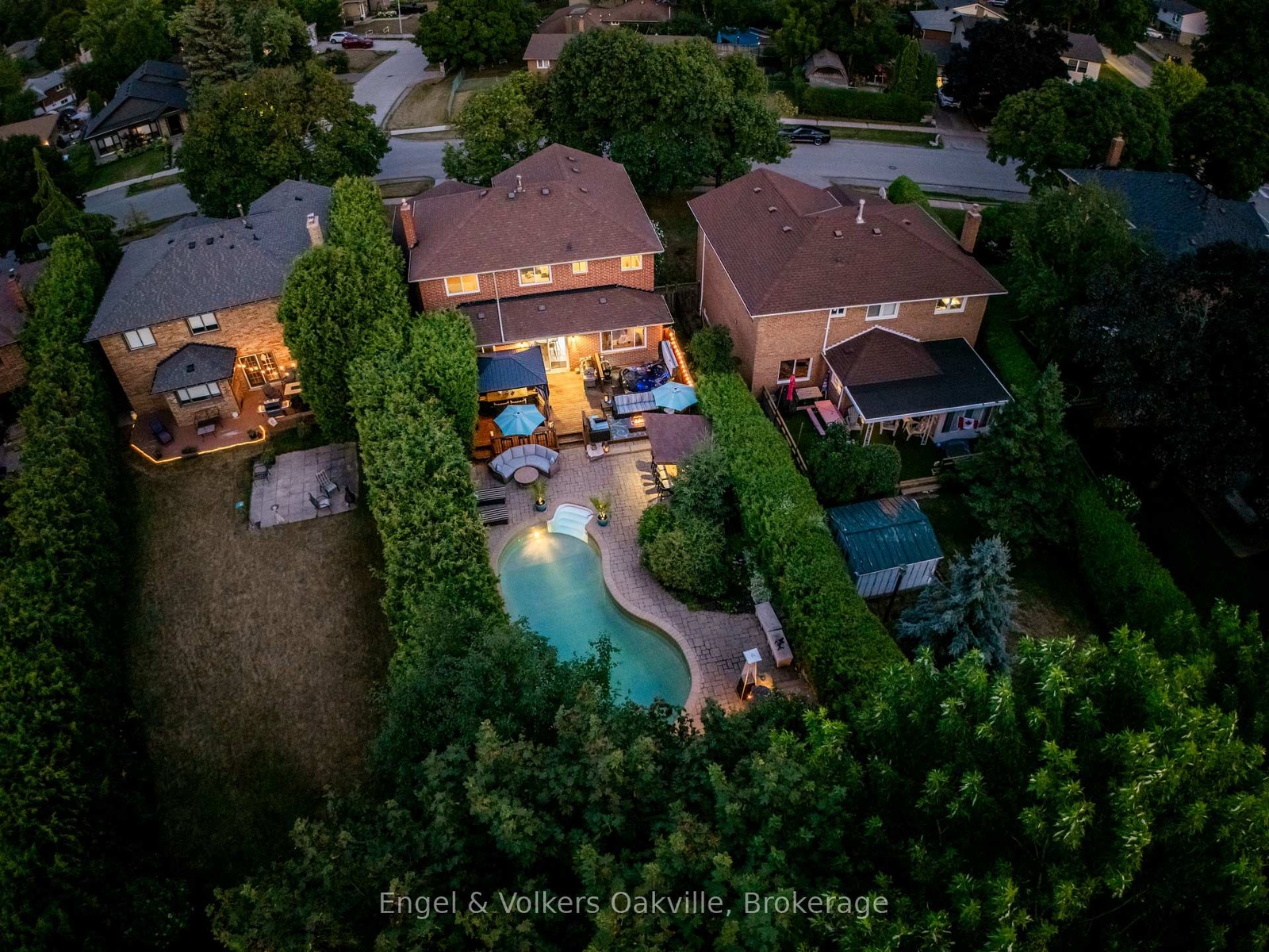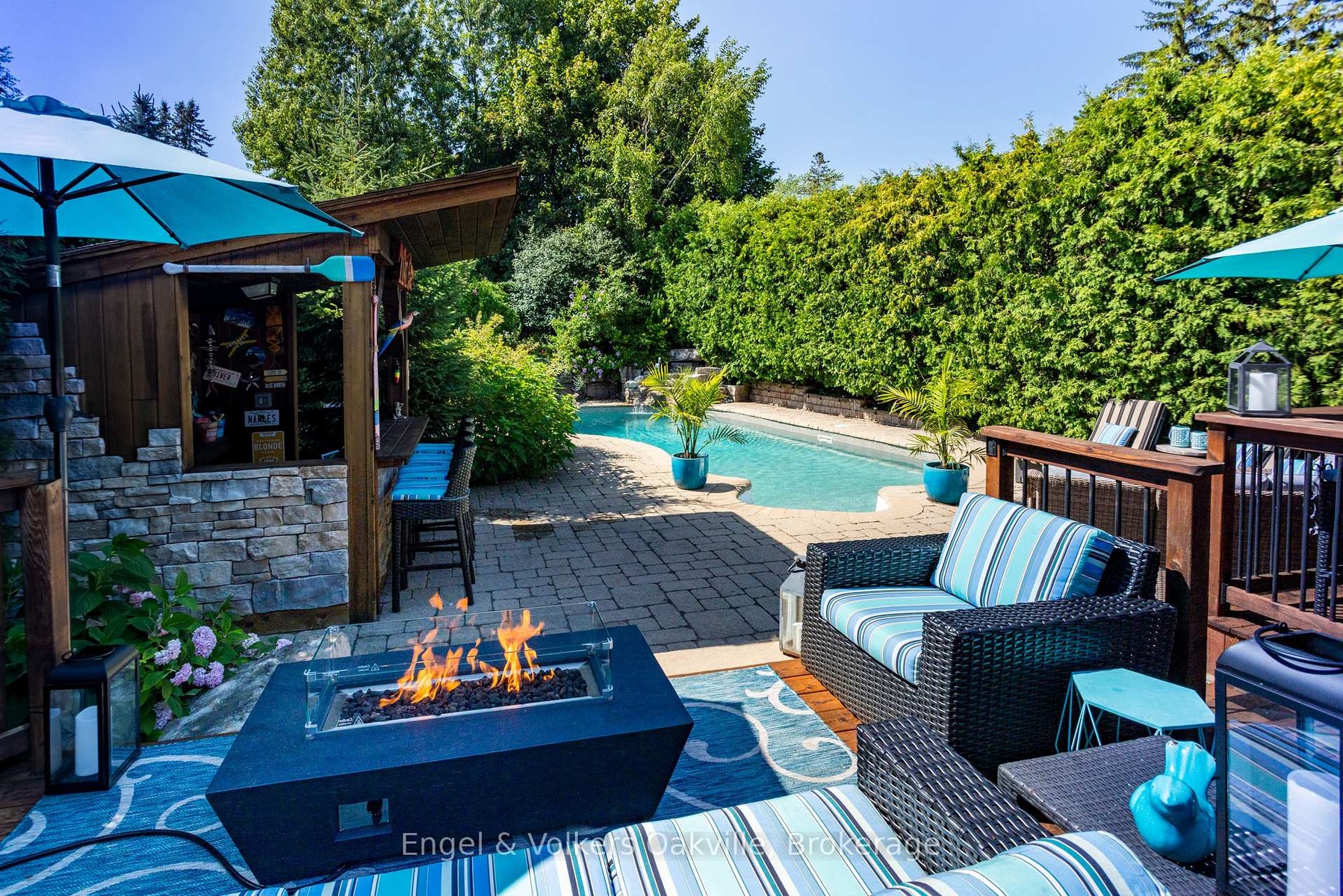 Welcome to an exceptionally rare find in Falgarwood, featuring an approximately 200-foot-deep lot that creates a truly private sanctuary. This stunning 4-bedroom home perfectly blends luxury with unbeatable convenience, offering a spectacular, resort-style backyard oasis complete with a custom in-ground pool, a new 6-person hot tub (2022), ambient lighting, a fully equipped Tiki lounge, and a fire-pit area-the ultimate setting for private relaxation or grand entertaining. Inside, enjoy freshly painted principal rooms, including a superb living/dining great room, alongside an oversized primary suite and three generous secondary bedrooms. Situated on a family-friendly street, you're just a short walk from Iroquois Ridge High School and all major amenities, with immediate access to every major highway, making this a unique and highly sought-after forever home. Follow Your Dream Home as Your Backyard Paradise Awaits. Don't Miss This One!