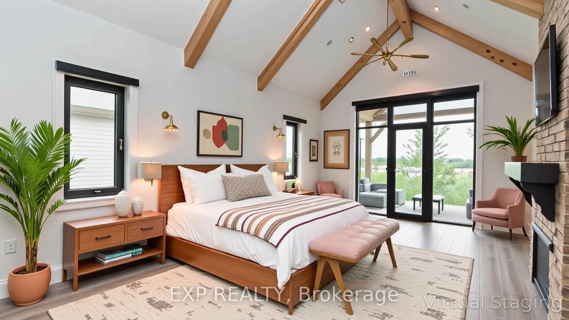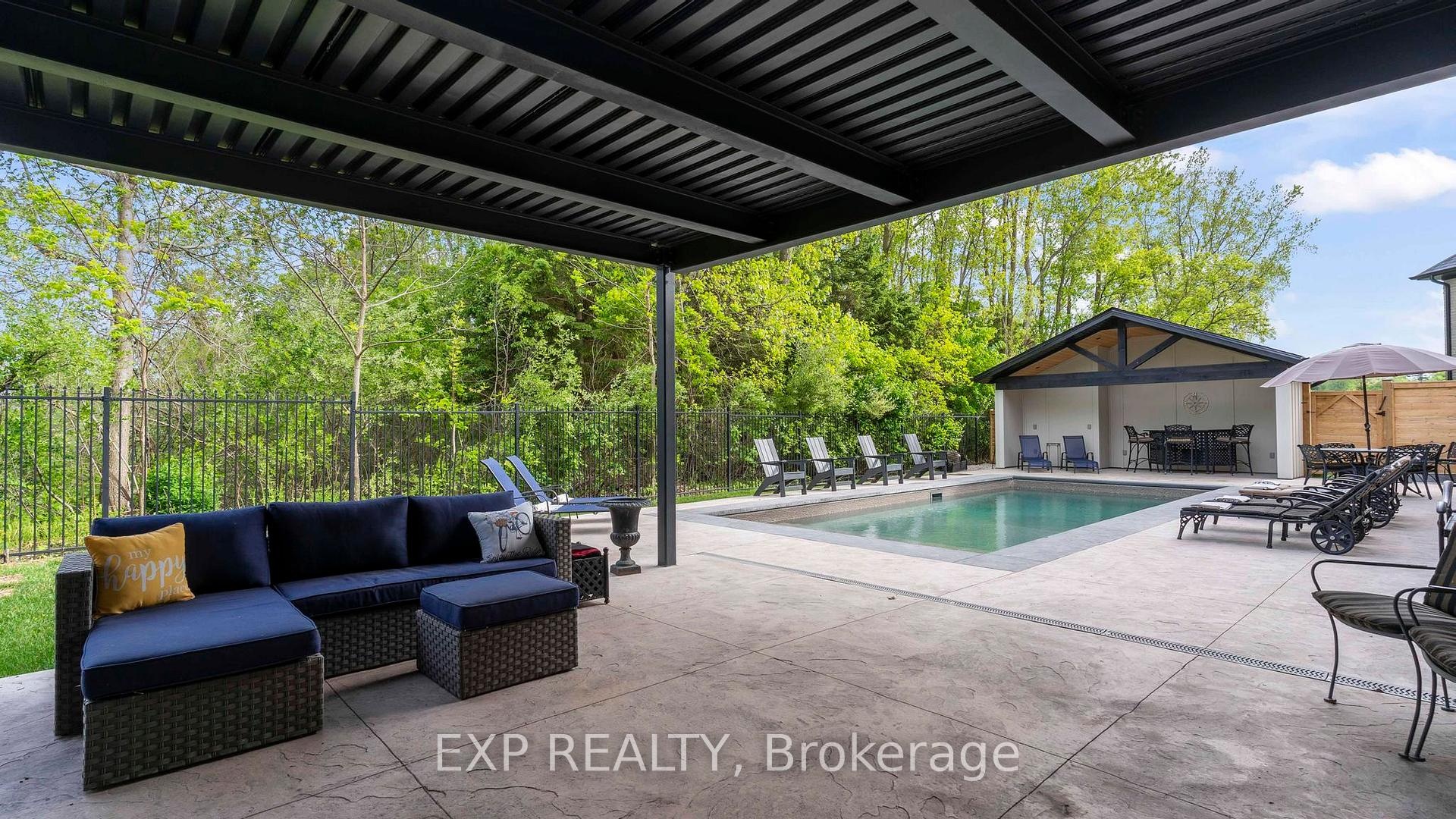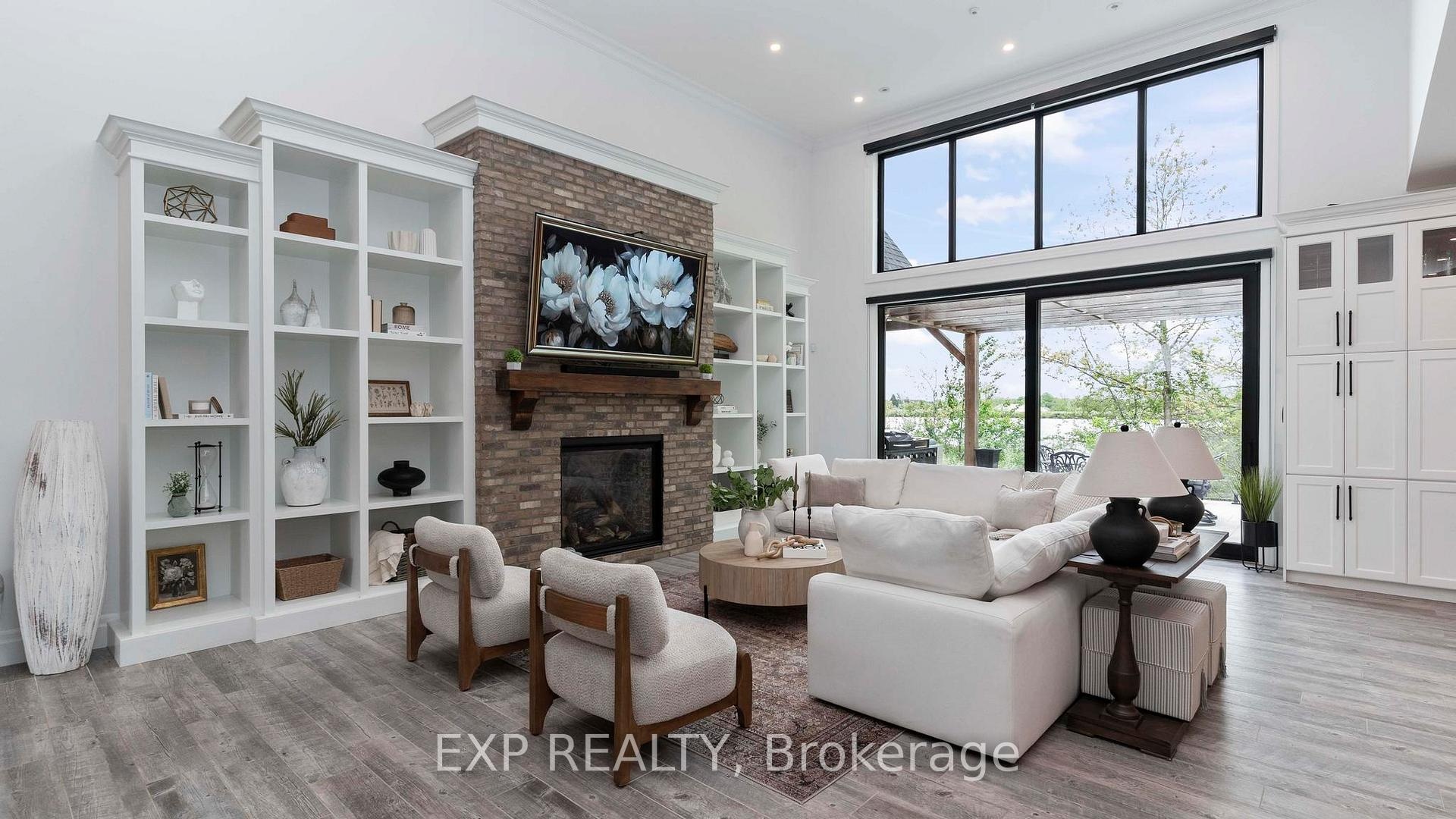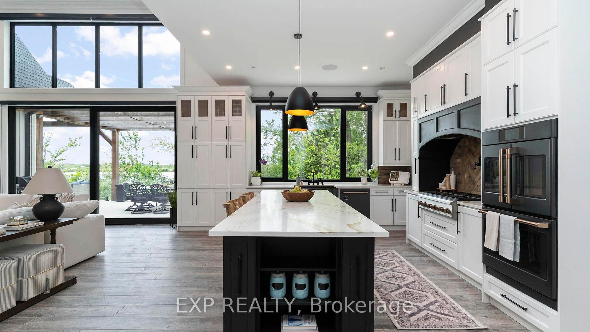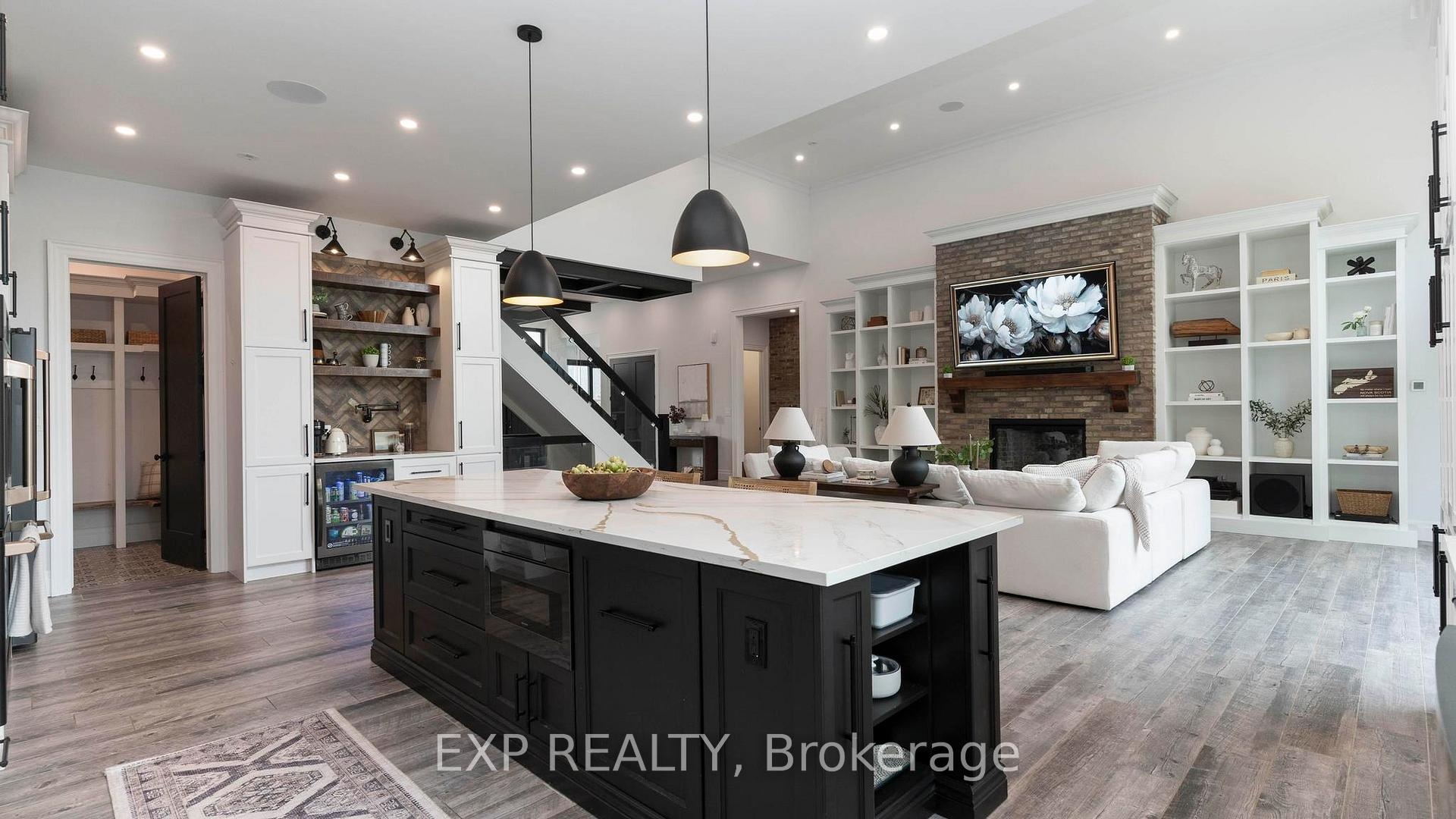 Welcome to Bella Lago Estates - an exclusive community featuring 29 custom homes situated on a quiet cul-de-sac. This stunning bungaloft showcases exceptional craftsmanship and timeless design from the moment you arrive. The over-grouted stone façade, curved concrete driveway, landscaped garden walls, and landscape lighting create an impressive and inviting first impression. The attached 3.5-car garage with keyless/fob entry adds both convenience and functionality.Inside, the thoughtfully designed open-concept layout offers a perfect blend of style and comfort. Heated floors span all three levels, and a built-in sound system enhances daily living from morning to night. The kitchen features a grand centre island and seamlessly opens to the 16-ft family room with custom built-ins and a brick fireplace - ideal for entertaining or relaxing with family. Expansive 14-ft sliding patio doors lead to your private outdoor retreat. Enjoy the stamped concrete terrace, pergola, and saltwater pool, all set against tranquil pond views. The fully fenced yard offers ample space for recreation, while the cabana with lighting creates the perfect setting for evening gatherings.The primary suite offers beamed cathedral ceilings, a fireplace, patio access, and a luxurious ensuite with a freestanding tub, double vanities, rain shower, and walk-in closet. Two additional bedrooms with custom walk-in closets, an office, and a mudroom with a dog shower complete the main level.The walkout lower level adds even more living space, featuring a full gym, theatre area, wet bar, guest suite, bonus room, two bathrooms, cold cellar, and abundant storage. European windows, upgraded insulation, and a full security system contribute to the home's efficiency and peace of mind. Experience refined living in a sought-after community - where thoughtful design and modern amenities come together in perfect harmony.