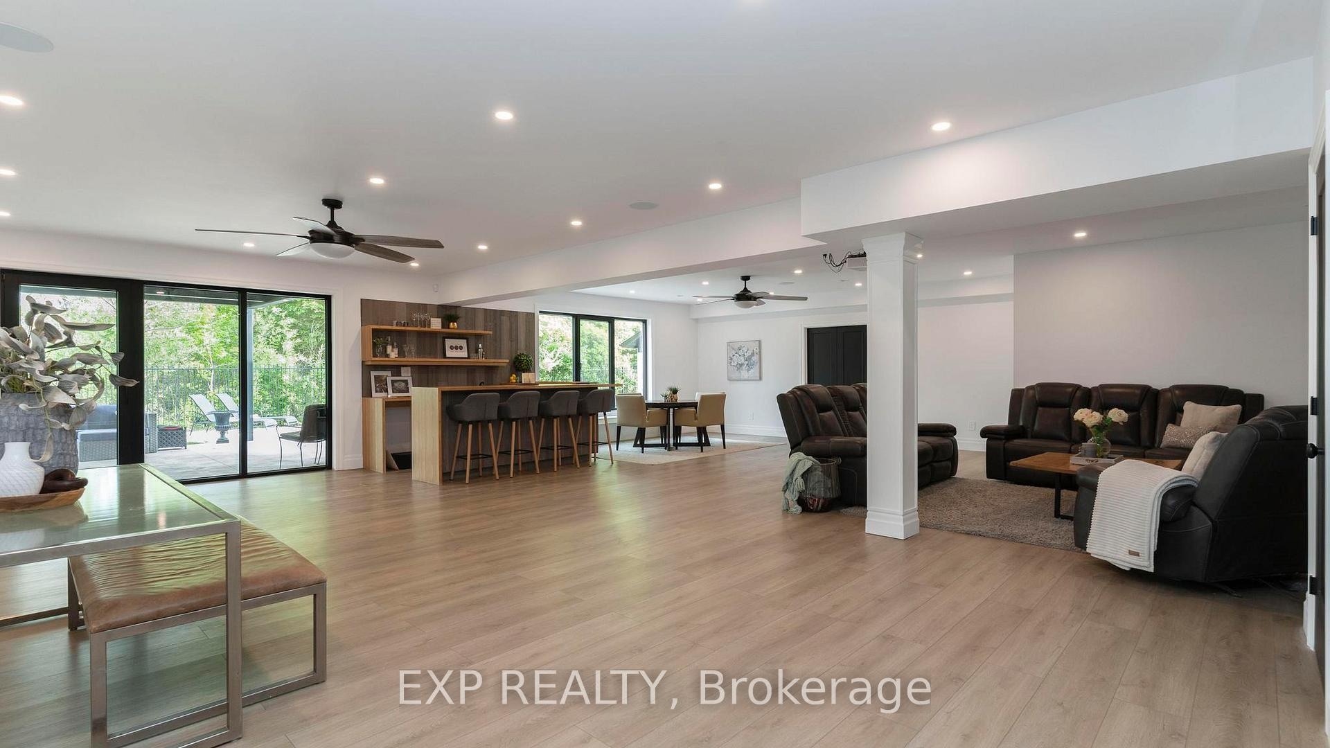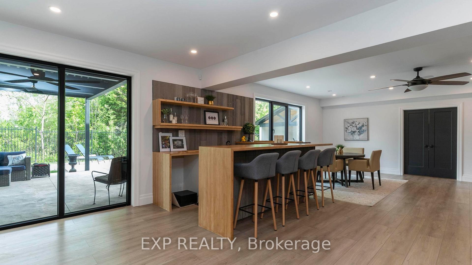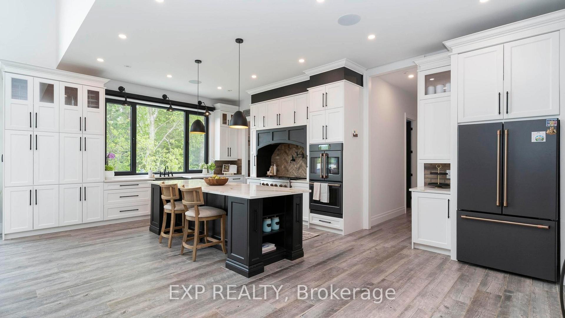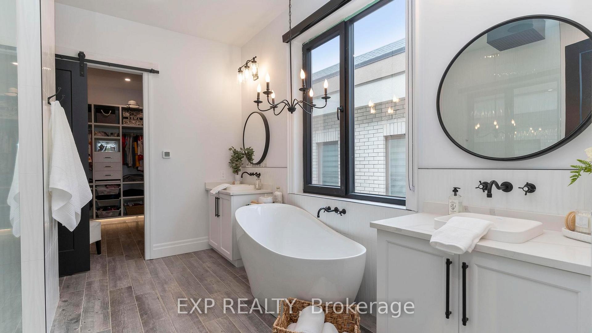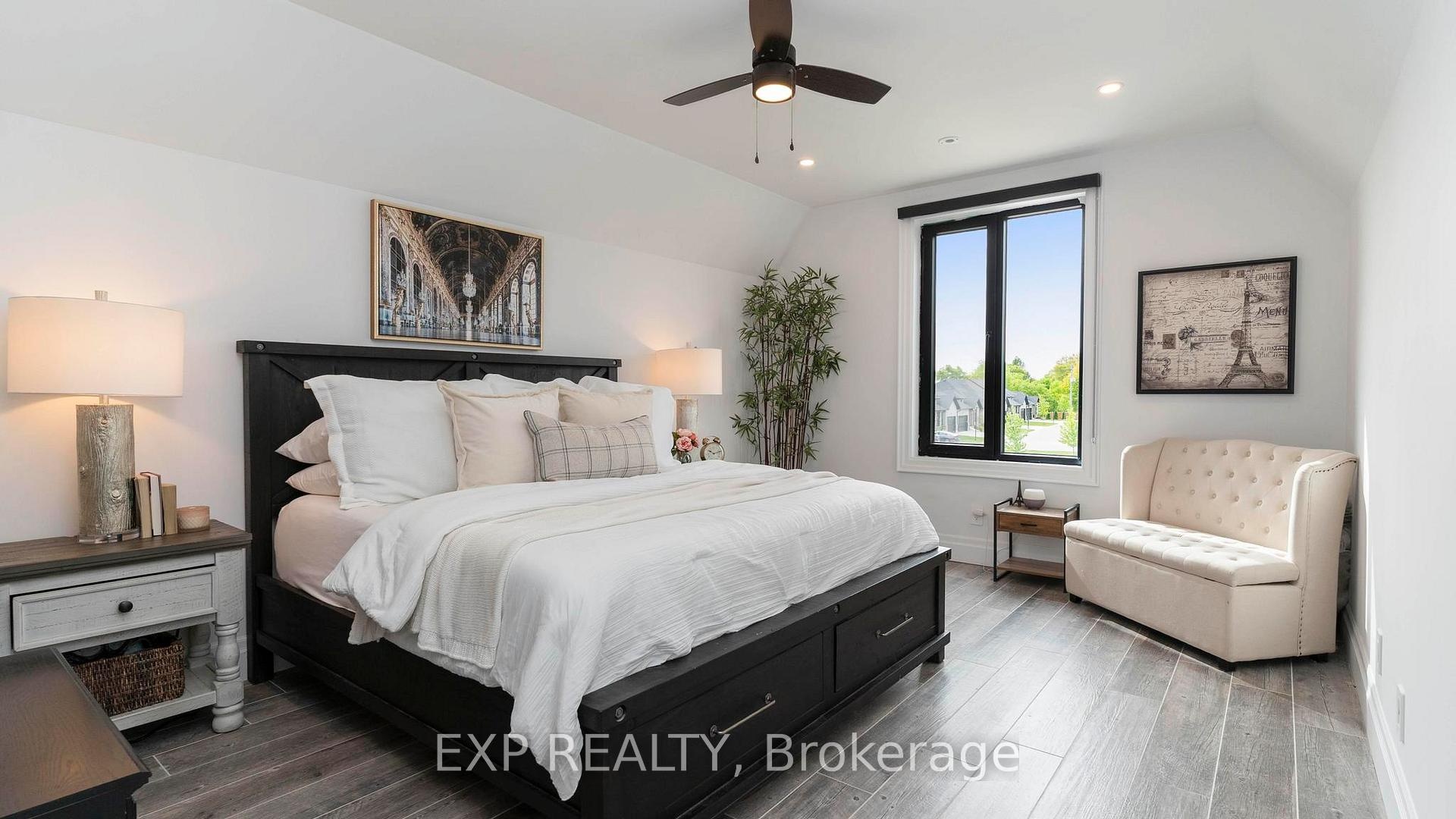 Welcome to Bella Lago Estates - an exclusive community featuring 29 custom homes situated on a quiet cul-de-sac. This stunning bungaloft showcases exceptional craftsmanship and timeless design from the moment you arrive. The over-grouted stone façade, curved concrete driveway, landscaped garden walls, and landscape lighting create an impressive and inviting first impression. The attached 3.5-car garage with keyless/fob entry adds both convenience and functionality.Inside, the thoughtfully designed open-concept layout offers a perfect blend of style and comfort. Heated floors span all three levels, and a built-in sound system enhances daily living from morning to night. The kitchen features a grand centre island and seamlessly opens to the 16-ft family room with custom built-ins and a brick fireplace - ideal for entertaining or relaxing with family. Expansive 14-ft sliding patio doors lead to your private outdoor retreat. Enjoy the stamped concrete terrace, pergola, and saltwater pool, all set against tranquil pond views. The fully fenced yard offers ample space for recreation, while the cabana with lighting creates the perfect setting for evening gatherings.The primary suite offers beamed cathedral ceilings, a fireplace, patio access, and a luxurious ensuite with a freestanding tub, double vanities, rain shower, and walk-in closet. Two additional bedrooms with custom walk-in closets, an office, and a mudroom with a dog shower complete the main level.The walkout lower level adds even more living space, featuring a full gym, theatre area, wet bar, guest suite, bonus room, two bathrooms, cold cellar, and abundant storage. European windows, upgraded insulation, and a full security system contribute to the home's efficiency and peace of mind. Experience refined living in a sought-after community - where thoughtful design and modern amenities come together in perfect harmony.