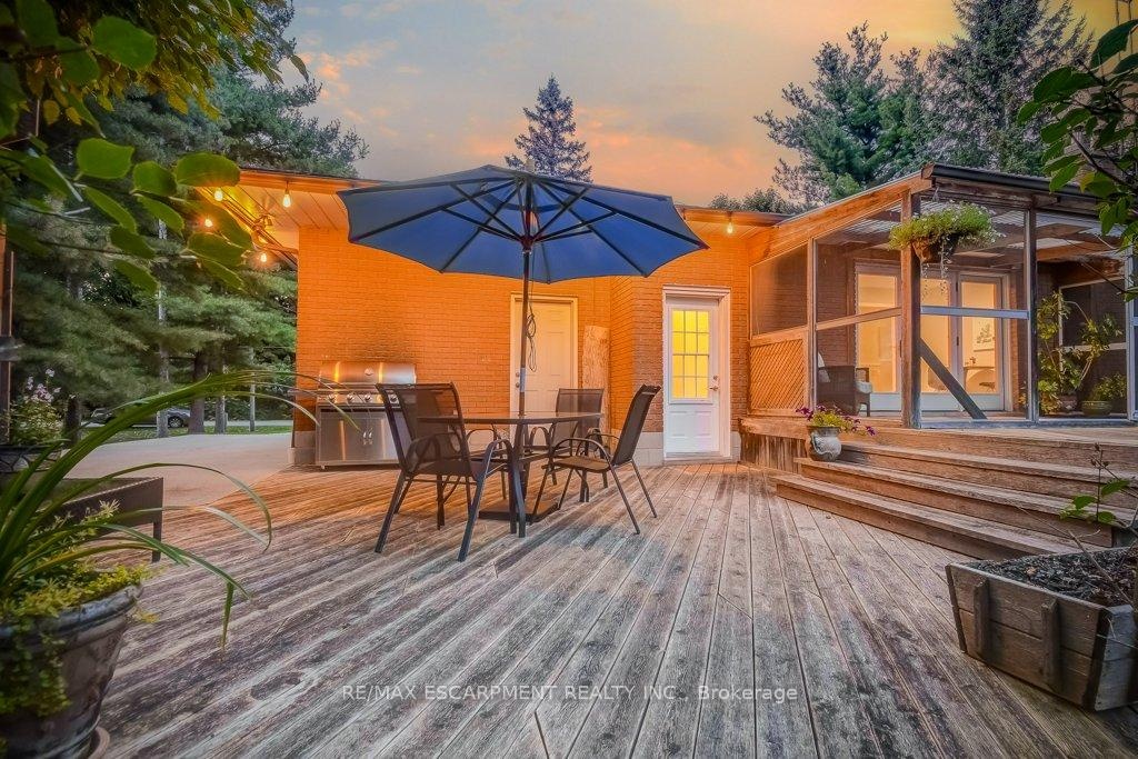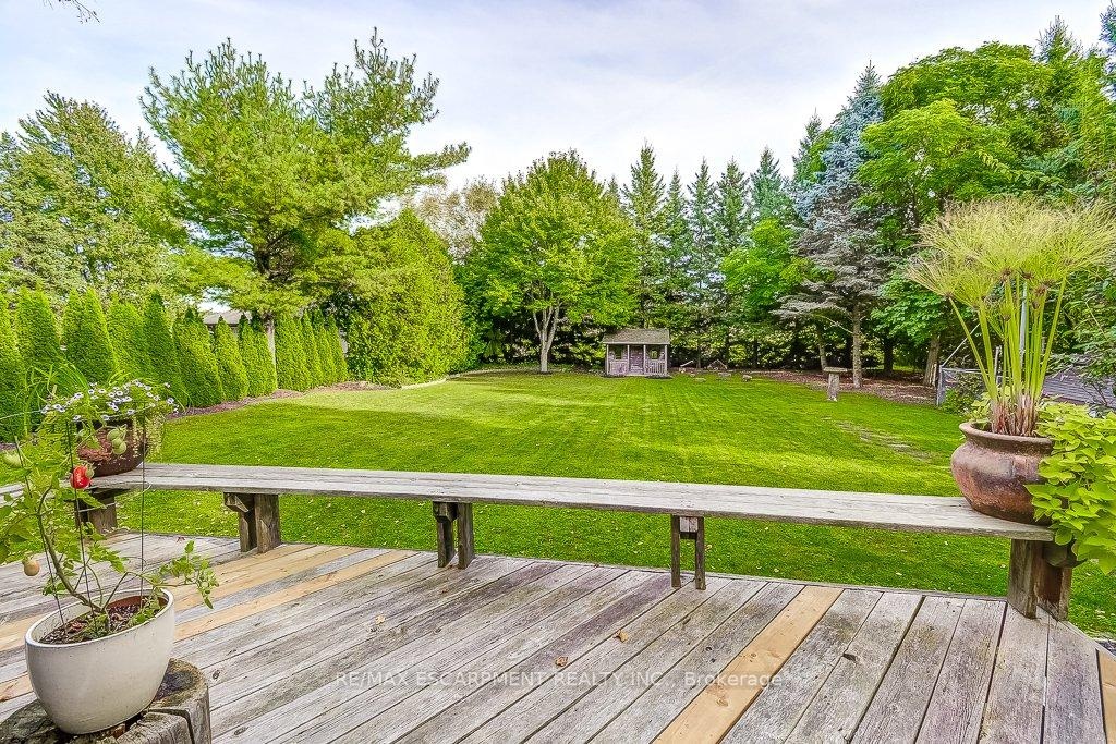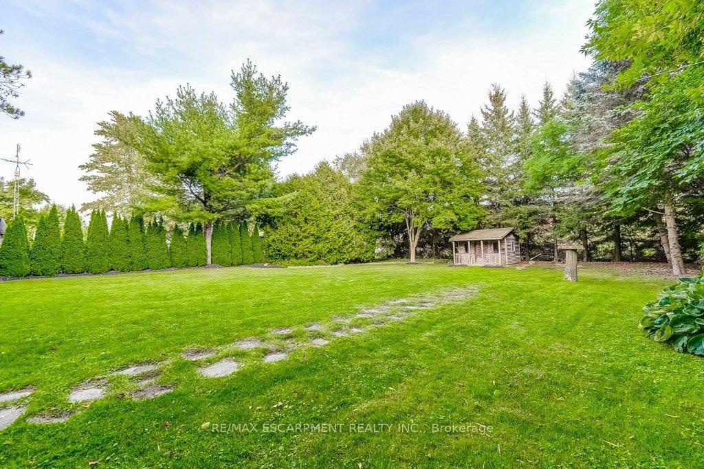 Amazing location on a gorgeous country lot! Welcome to this charming bungalow nestled on a private, deep lot in East Flamborough, just south of Carlisle and minutes to Waterdown. Set in a peaceful setting, surrounded by mature trees and backing onto a farmer's field, this home provides the tranquility of the countryside while keeping everyday amenities just minutes away. The backyard is perfect for hosting summer BBQs, gathering around a firepit, or enjoying outdoor dining on the large two-tier deck with screened porch. There's ample space for kids and dogs to run and play, or for setting up lawn games when friends and family come to visit. The property also features two sheds, an attached garage, and a double-wide concrete driveway with parking for up to 8 vehicles. The spacious finished basement includes a separate entrance and a 2-piece bathroom, offering flexible living arrangements. This quiet location is just a few doors from Dragon's Fire Golf Club, local produce at Josling Farms, and craft ciders at West Avenue's award-winning Cider House. A quick drive to the Carlisle Community Centre, arena & park, and minutes to Hwy 6 with easy access to the 401 and 403. From morning coffee on the deck to evenings under the stars, this home makes every day feel special!