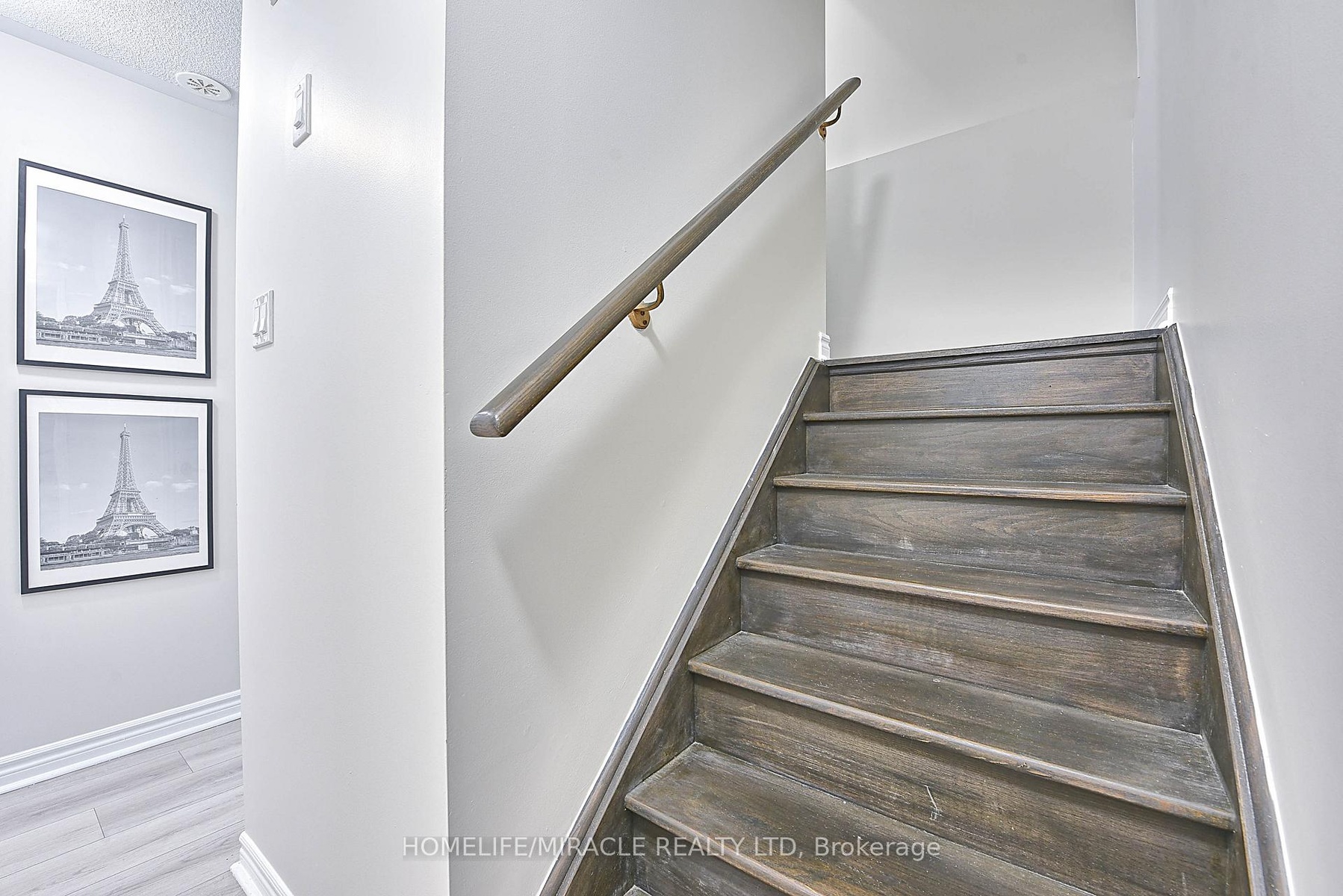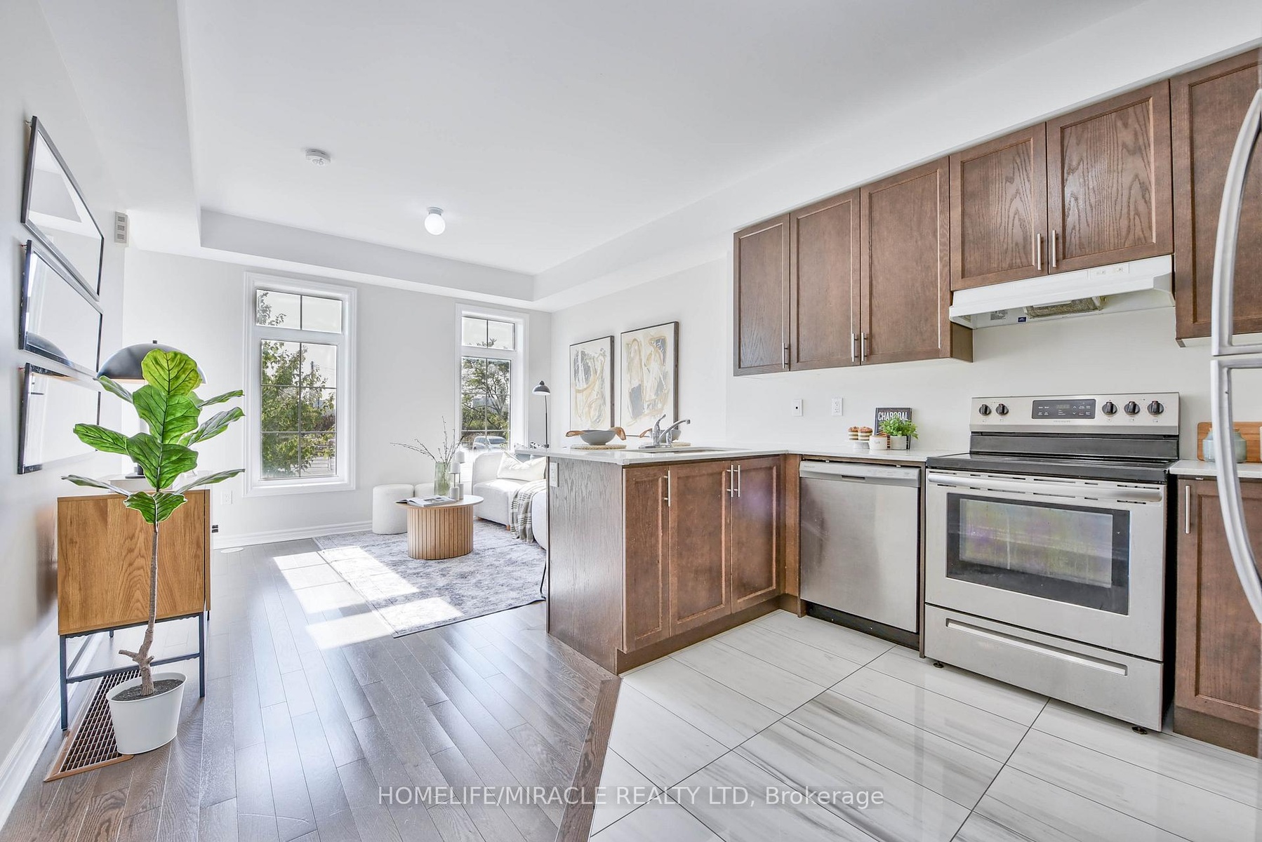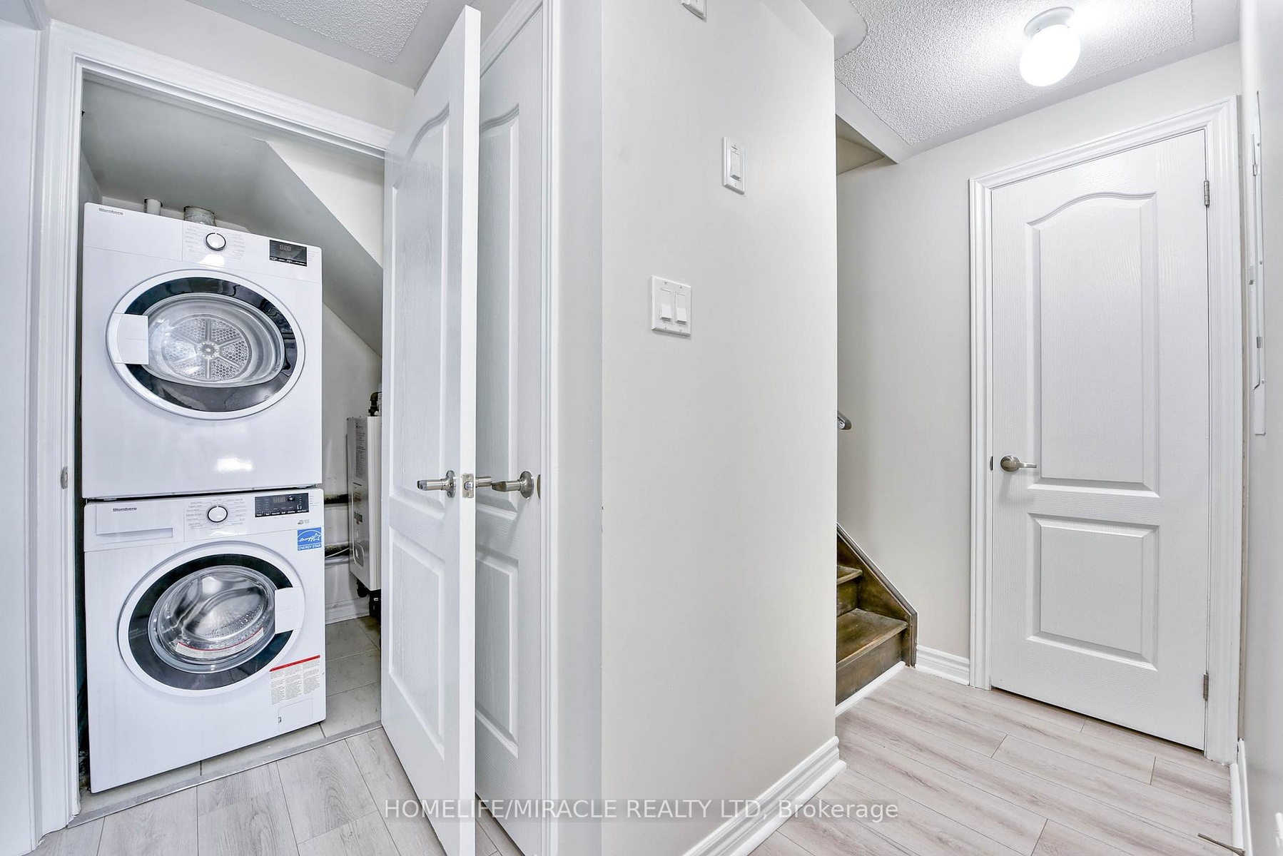 ***Very Low Maintenance Fee***Welcome to this nearly 5-year-old, Beautiful freshly painted, sun-soaked stacked townhouse with no carpet, offering 2 bedrooms, 1.5 baths, and 9-ft ceilings a true haven of contemporary living. Step inside the open-concept main floor, where gleaming hardwood floors in the living room pair beautifully with chic neutral tile in the kitchen. The modern kitchen features quartz countertops, a gooseneck faucet, and a full suite of stainless steel appliances, including fridge, stove, and dishwasher. The lower level offers a spacious primary bedroom with a walk-in closet, along with a generous second bedroom that includes both a closet and additional storage. A stylish 4-piece bath provides the perfect retreat with a superb shower and tub combination. Added convenience comes with an in-suite stacked washer and dryer. Located in the heart of Mississauga, this bright and well-maintained 2-storey home is perfect for commuters with easy access to Hwy 403, the upcoming LRT, and the Square One GO Bus Terminal. You'll also be just steps away from schools, shops, restaurants, community centers, libraries, parks, and the vibrant entertainment district. Enhancing site security by surveillance cameras and gated barriers at the parking area. ***Very Low Maintenance Fee***