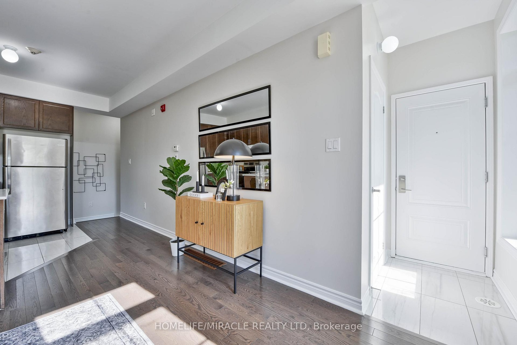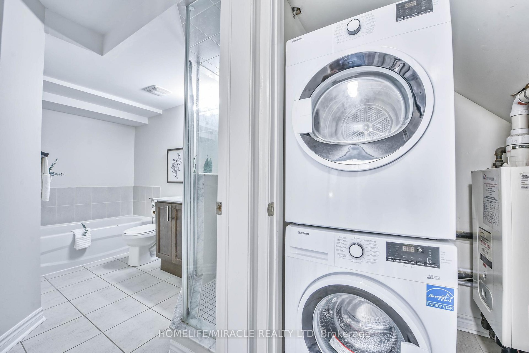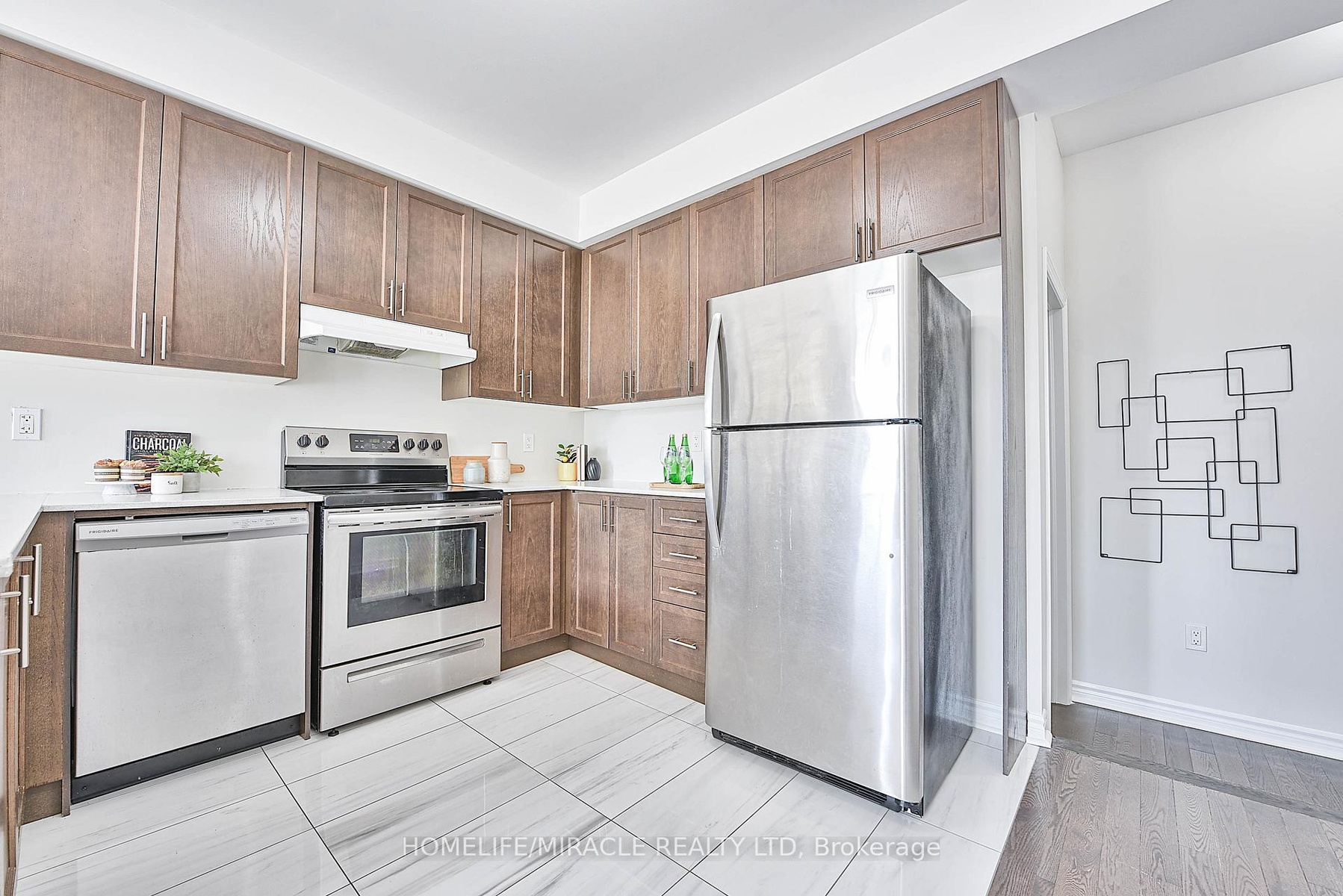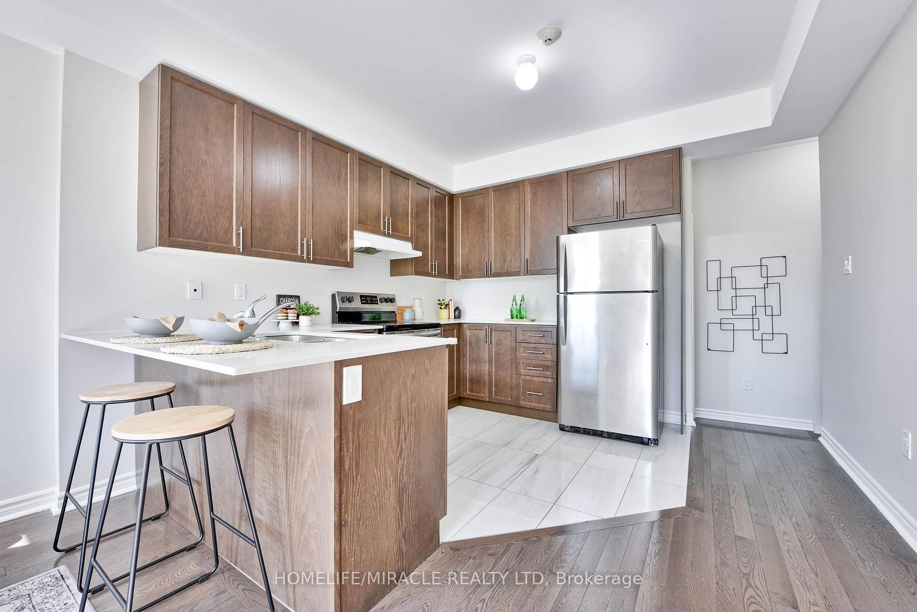 ***Very Low Maintenance Fee***Welcome to this nearly 5-year-old, Beautiful freshly painted, sun-soaked stacked townhouse with no carpet, offering 2 bedrooms, 1.5 baths, and 9-ft ceilings a true haven of contemporary living. Step inside the open-concept main floor, where gleaming hardwood floors in the living room pair beautifully with chic neutral tile in the kitchen. The modern kitchen features quartz countertops, a gooseneck faucet, and a full suite of stainless steel appliances, including fridge, stove, and dishwasher. The lower level offers a spacious primary bedroom with a walk-in closet, along with a generous second bedroom that includes both a closet and additional storage. A stylish 4-piece bath provides the perfect retreat with a superb shower and tub combination. Added convenience comes with an in-suite stacked washer and dryer. Located in the heart of Mississauga, this bright and well-maintained 2-storey home is perfect for commuters with easy access to Hwy 403, the upcoming LRT, and the Square One GO Bus Terminal. You'll also be just steps away from schools, shops, restaurants, community centers, libraries, parks, and the vibrant entertainment district. Enhancing site security by surveillance cameras and gated barriers at the parking area. ***Very Low Maintenance Fee***