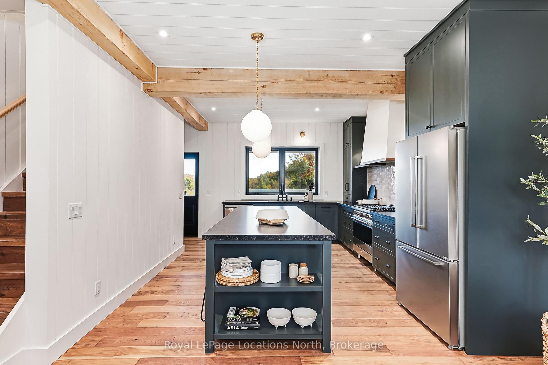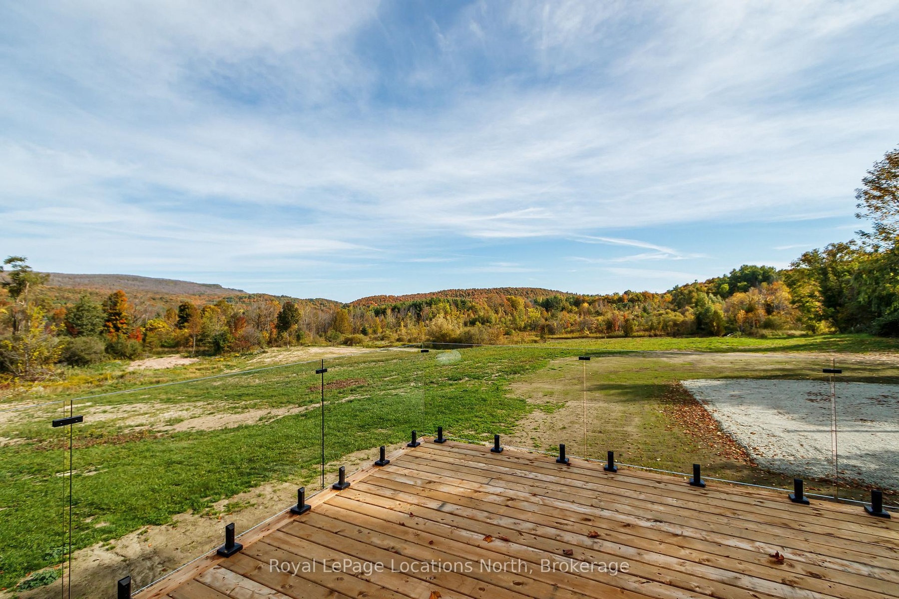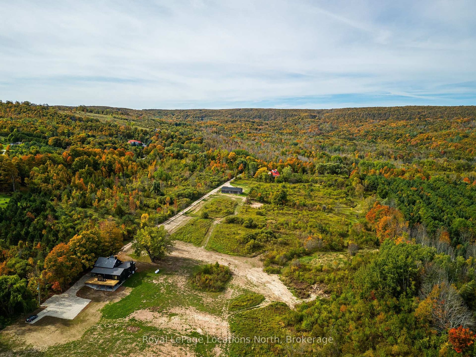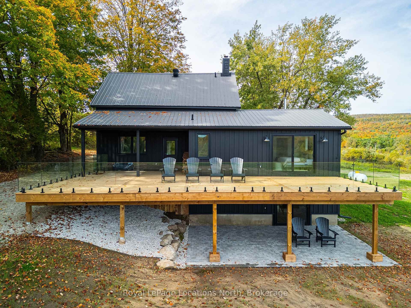 A Serene Retreat in the Heart of Pretty River Valley. Set amidst the stunning landscape of the Pretty River Valley, this extraordinary property offers over 49 acres of pure tranquility. Completely reimagined inside and out, it blends the timeless charm of country living with the sophistication and comfort of a brand-new home. Here, privacy, panoramic views and a deep connection to nature come together to create an exceptional rural escape. Step inside to a bright and inviting open-concept main floor, where expansive windows fill the home with natural light. The chef-inspired kitchen features a large island, luxury appliances, a walkout to the deck and a dedicated prep room-perfect for entertaining. The warm and welcoming living room, centered around a stone wood-burning fireplace, provides the ideal spot to relax and enjoy the ever-changing beauty of each season. The main floor primary suite is a private haven, offering a spa-like ensuite, walk-in closet and walkout to the deck overlooking the breathtaking Pretty River Valley. Thoughtful details such as hardwood flooring, pot lights, shiplap accents and custom textures elevate the home's modern country aesthetic. A main floor office and laundry room add everyday convenience. Upstairs, two spacious bedrooms and a stylish three-piece bathroom offer comfort and privacy for family or guests. The finished lower level extends the living space with a generous family room and walkout to a covered patio, a full bathroom, and a versatile extra room ideal for a bedroom, den, or home theatre. Outdoors, discover your own private paradise with trails, a waterfall and acres of natural beauty to explore-perfect for hiking, snowshoeing and quiet reflection. A detached triple garage/shop provides ample room for vehicles, equipment, or hobbies. Located just minutes from Blue Mountain, Collingwood, ski clubs and golf courses, this exceptional property is the ultimate four-season retreat.