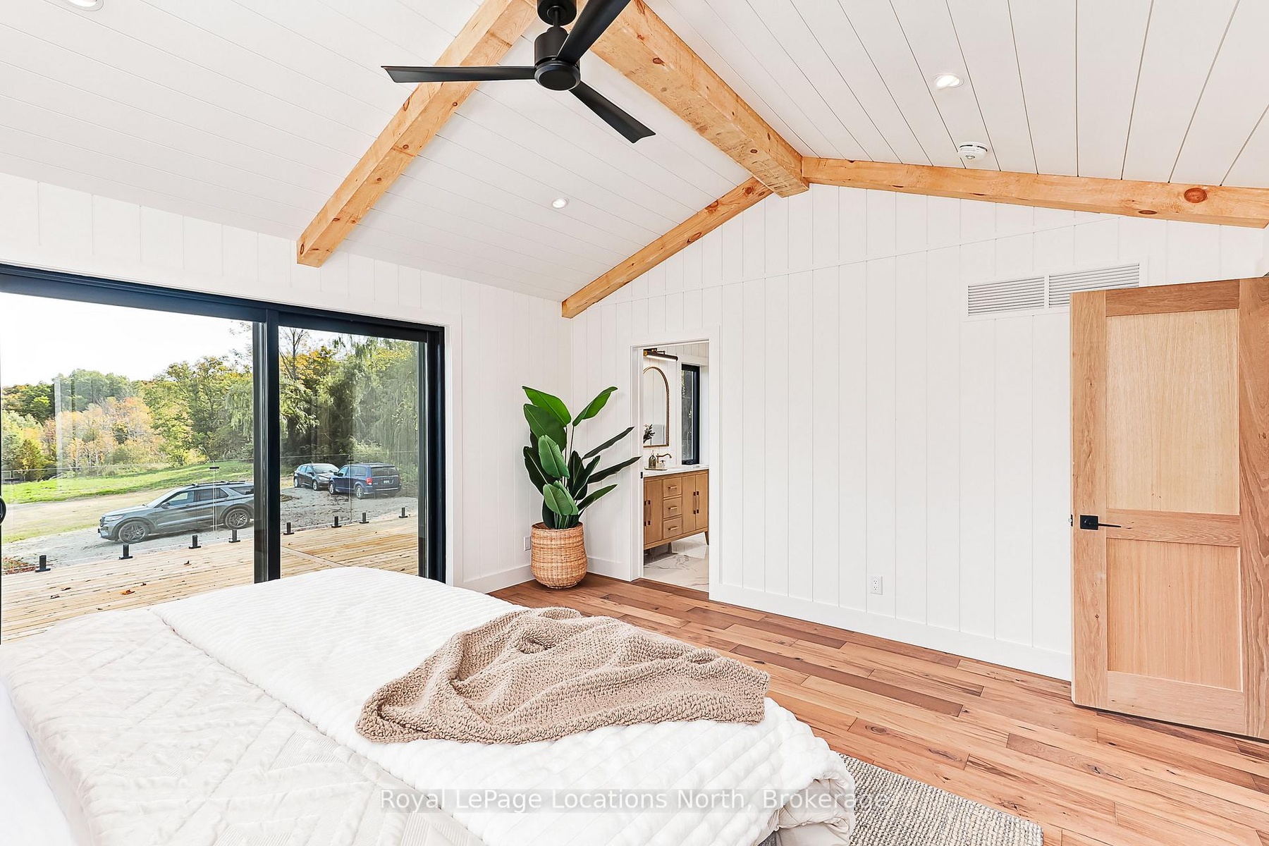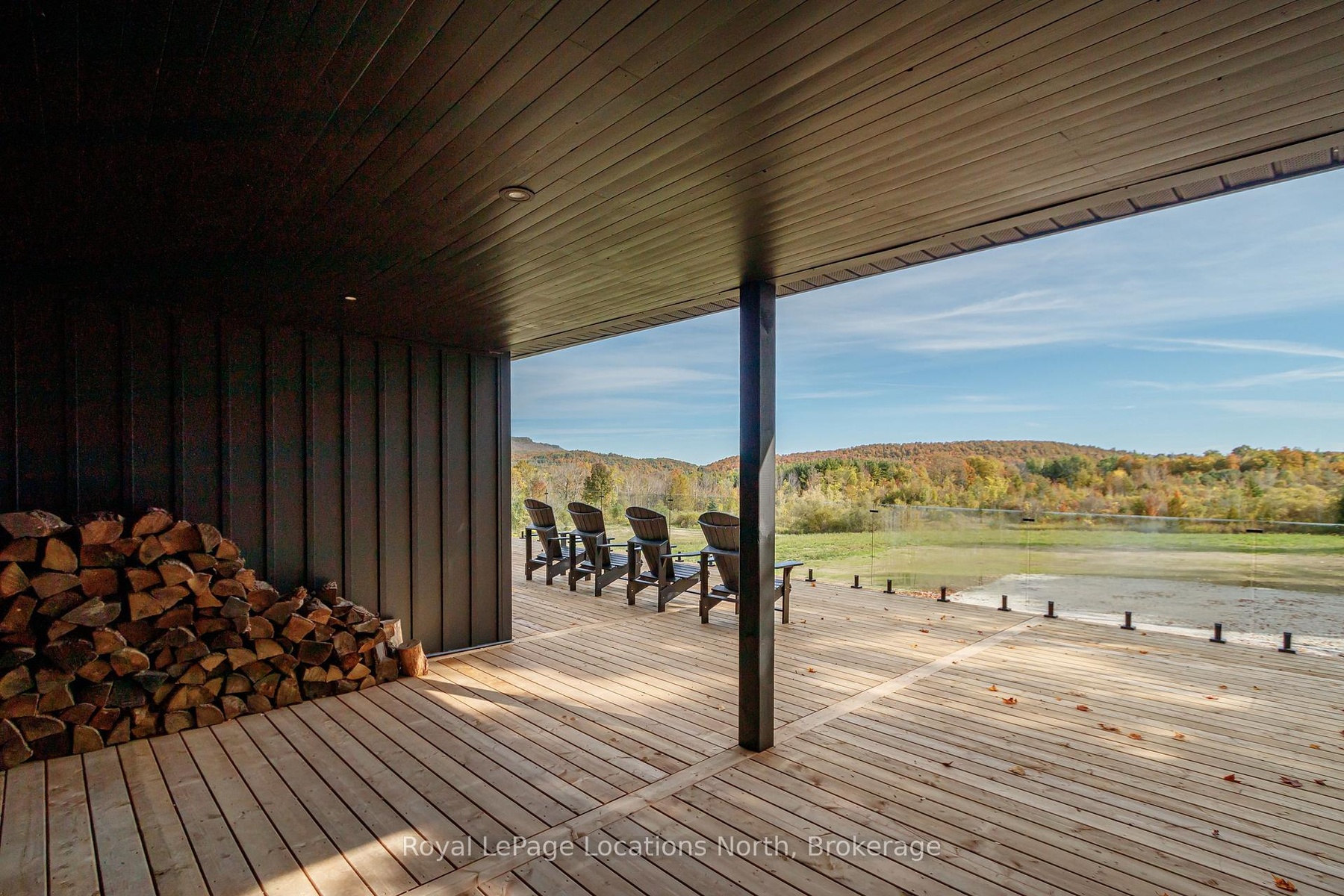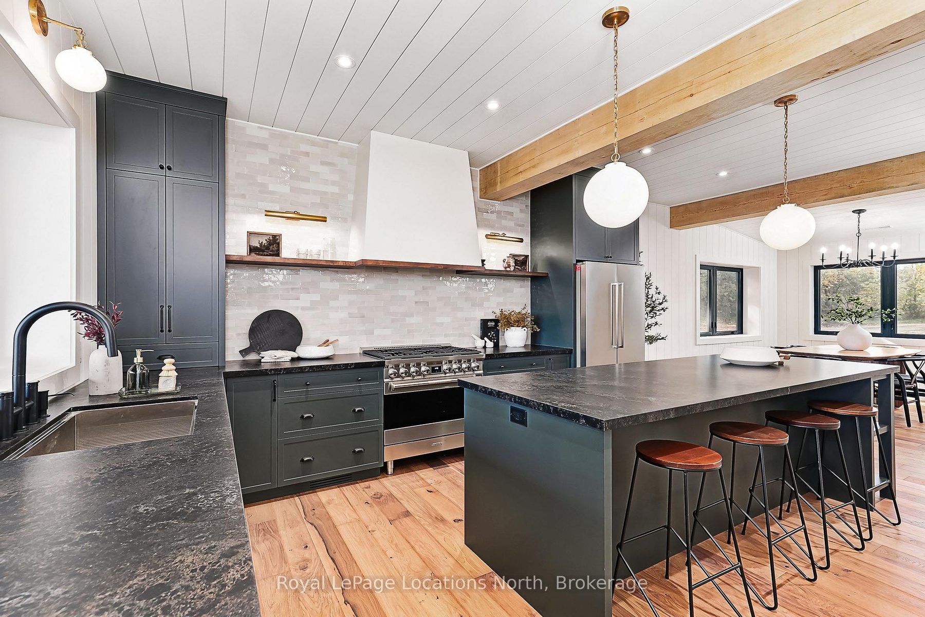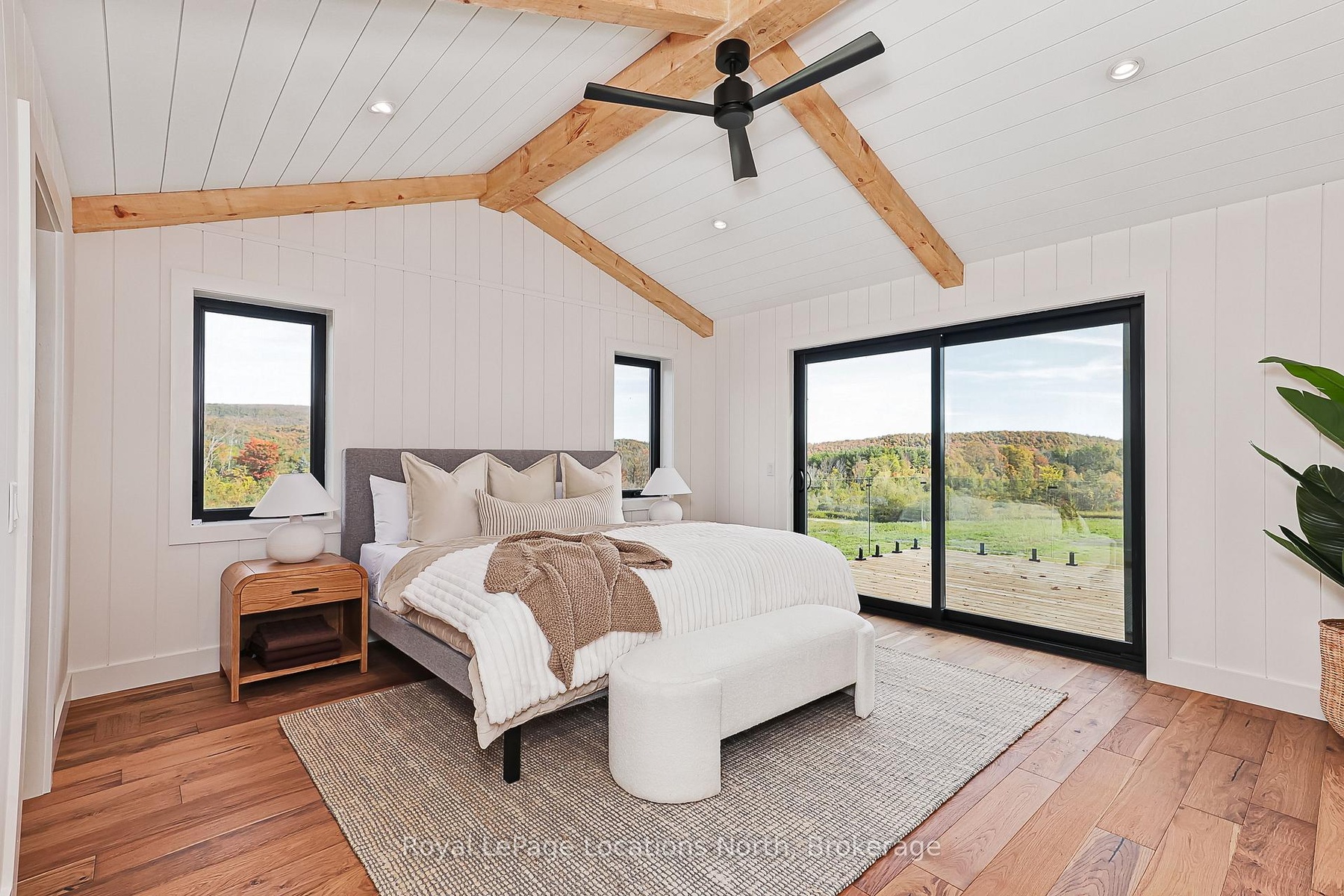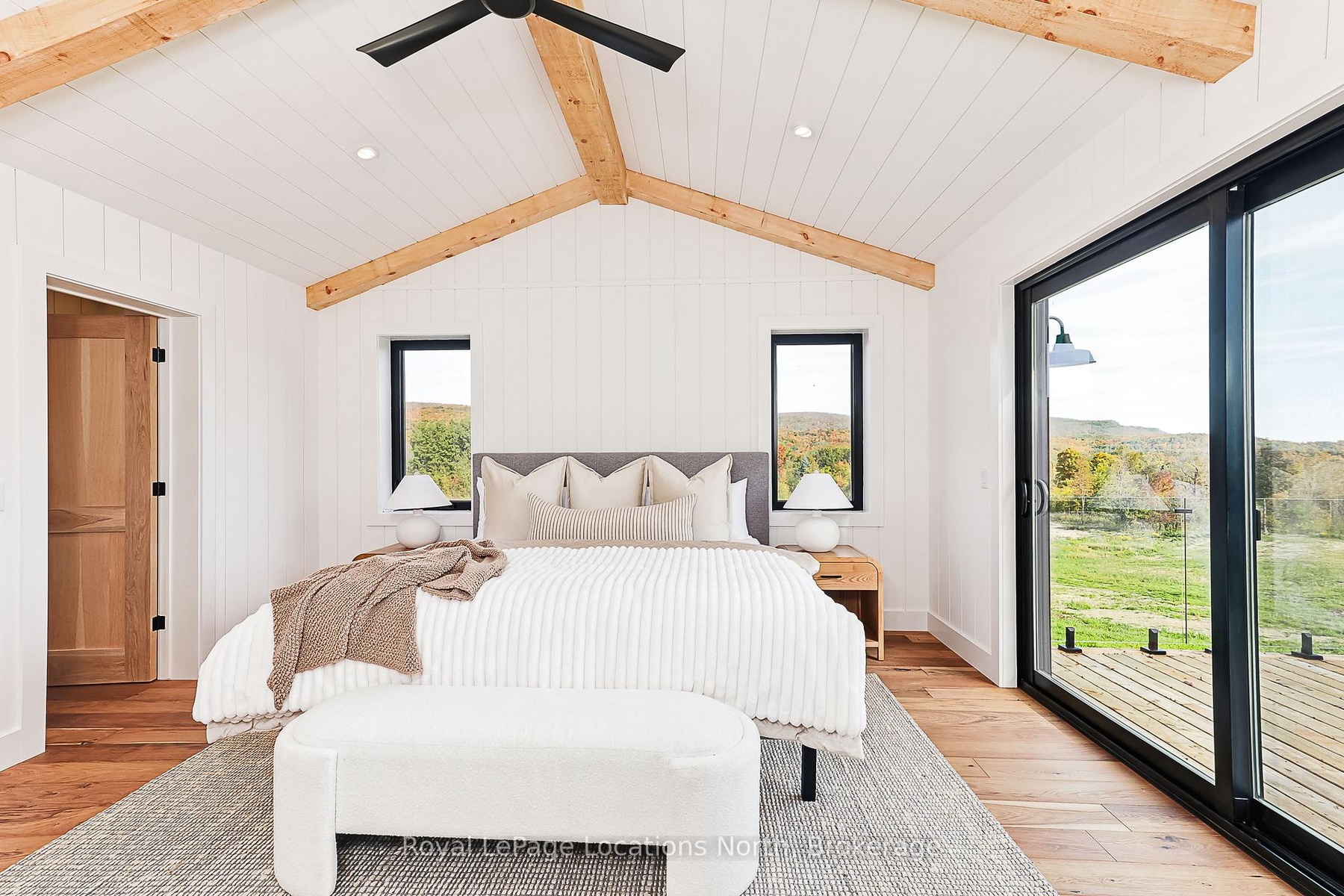 A Serene Retreat in the Heart of Pretty River Valley. Set amidst the stunning landscape of the Pretty River Valley, this extraordinary property offers over 49 acres of pure tranquility. Completely reimagined inside and out, it blends the timeless charm of country living with the sophistication and comfort of a brand-new home. Here, privacy, panoramic views and a deep connection to nature come together to create an exceptional rural escape. Step inside to a bright and inviting open-concept main floor, where expansive windows fill the home with natural light. The chef-inspired kitchen features a large island, luxury appliances, a walkout to the deck and a dedicated prep room-perfect for entertaining. The warm and welcoming living room, centered around a stone wood-burning fireplace, provides the ideal spot to relax and enjoy the ever-changing beauty of each season. The main floor primary suite is a private haven, offering a spa-like ensuite, walk-in closet and walkout to the deck overlooking the breathtaking Pretty River Valley. Thoughtful details such as hardwood flooring, pot lights, shiplap accents and custom textures elevate the home's modern country aesthetic. A main floor office and laundry room add everyday convenience. Upstairs, two spacious bedrooms and a stylish three-piece bathroom offer comfort and privacy for family or guests. The finished lower level extends the living space with a generous family room and walkout to a covered patio, a full bathroom, and a versatile extra room ideal for a bedroom, den, or home theatre. Outdoors, discover your own private paradise with trails, a waterfall and acres of natural beauty to explore-perfect for hiking, snowshoeing and quiet reflection. A detached triple garage/shop provides ample room for vehicles, equipment, or hobbies. Located just minutes from Blue Mountain, Collingwood, ski clubs and golf courses, this exceptional property is the ultimate four-season retreat.