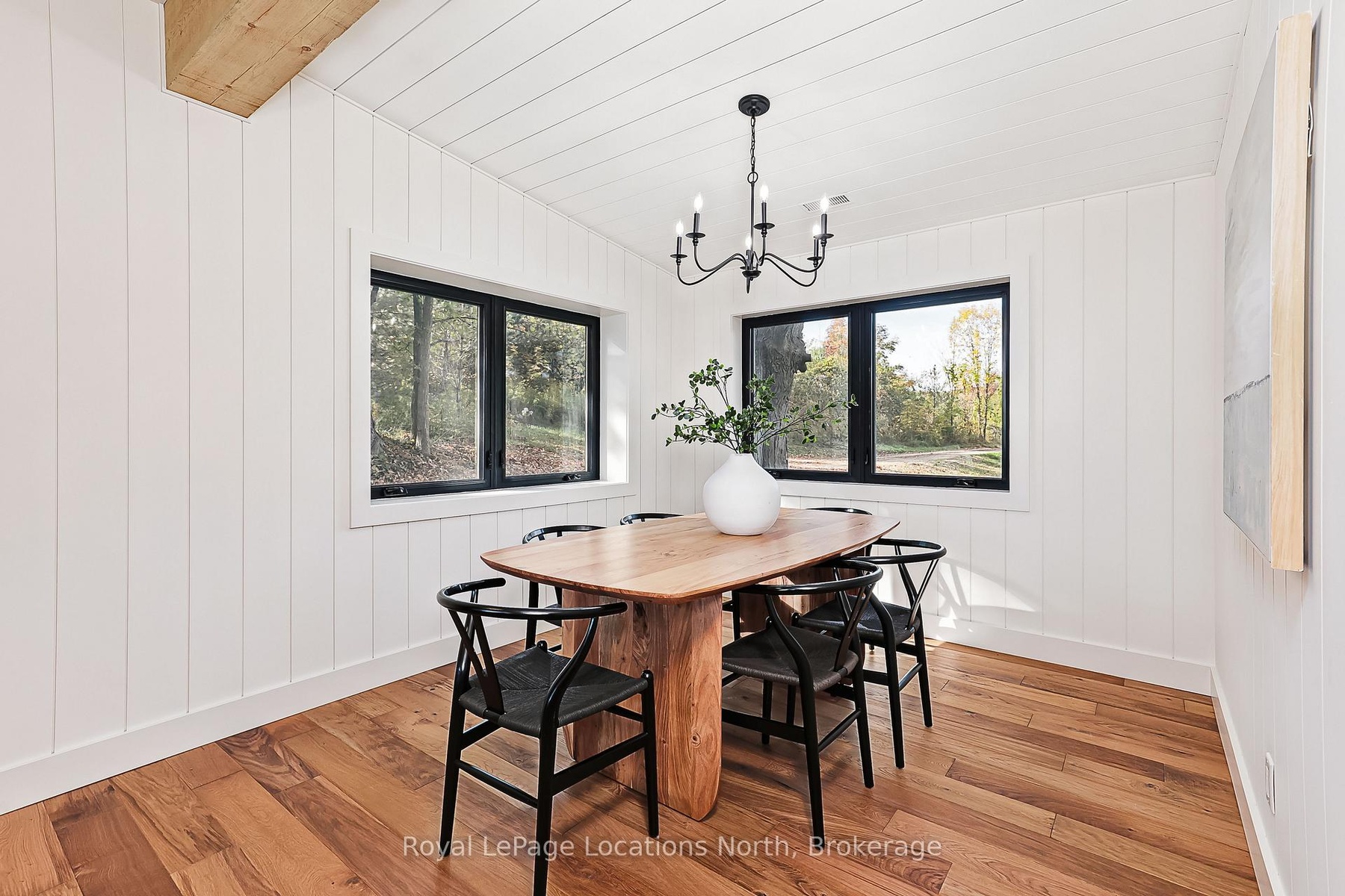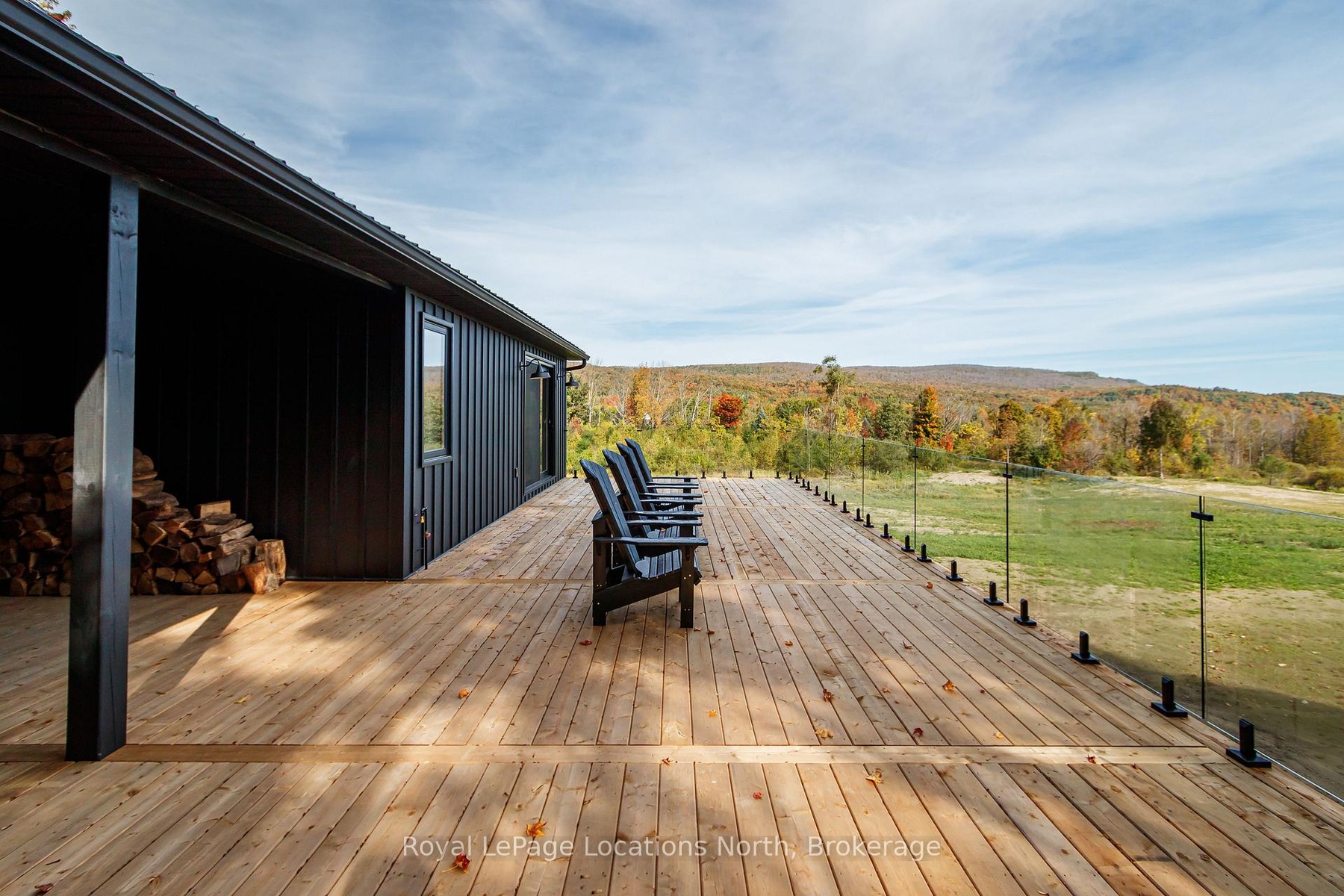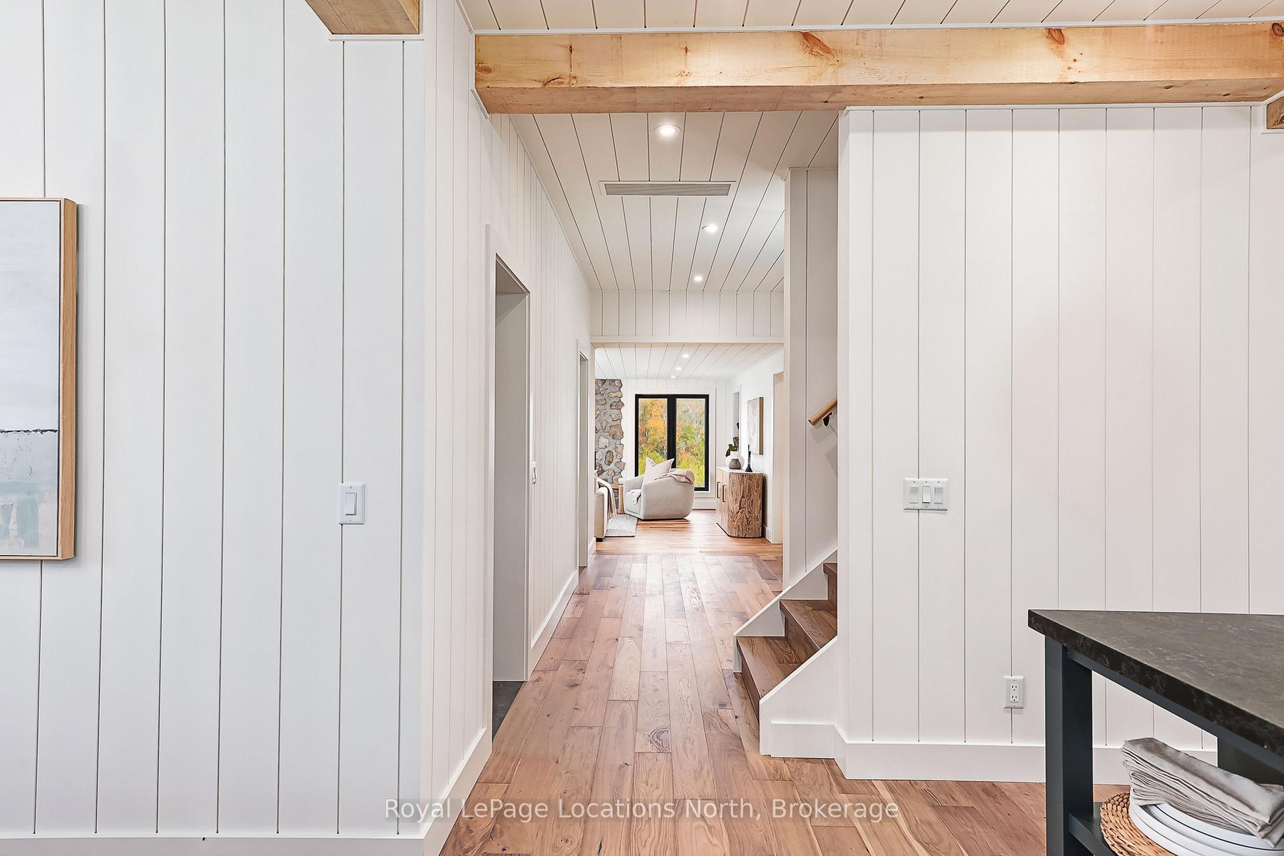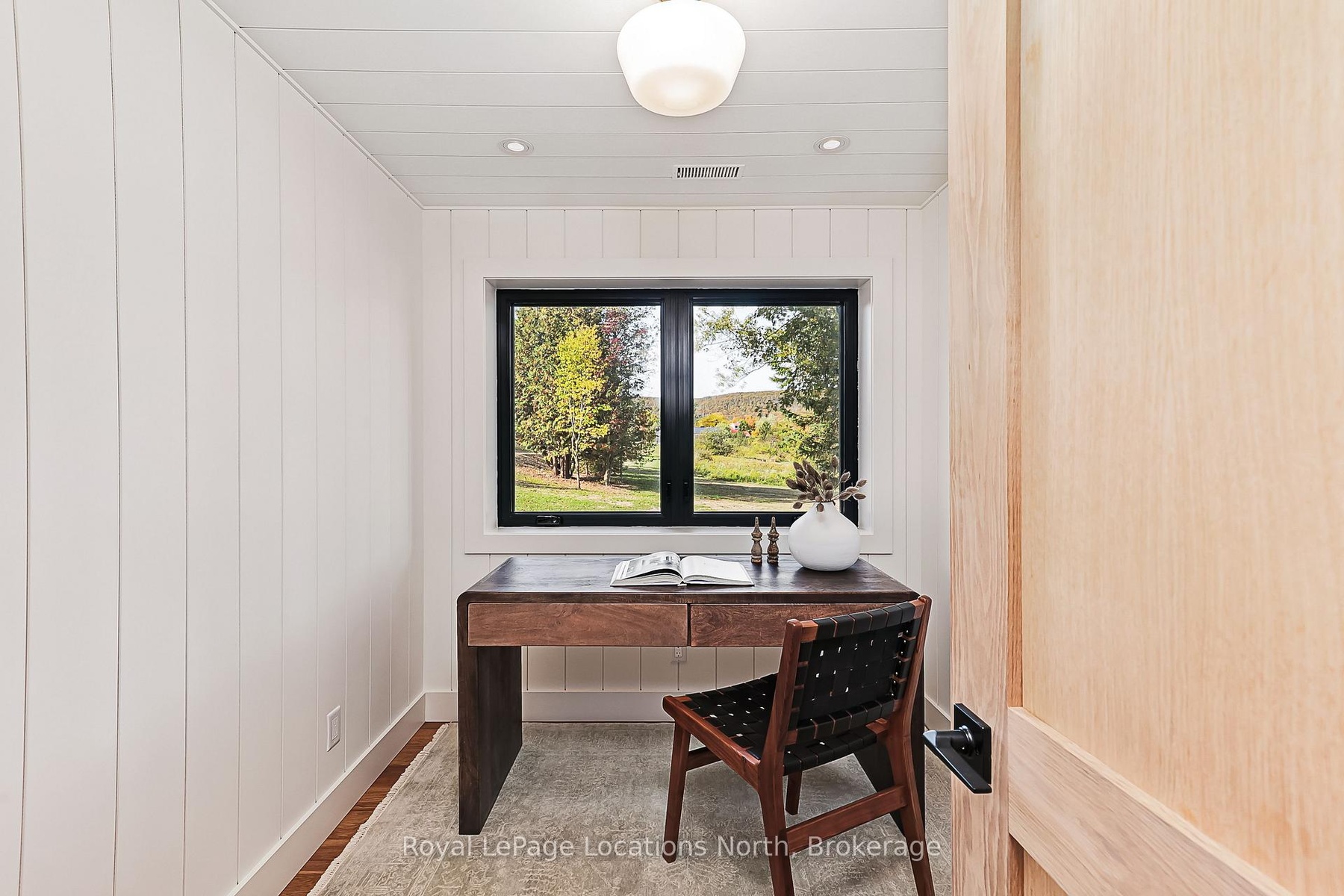 A Serene Retreat in the Heart of Pretty River Valley. Set amidst the stunning landscape of the Pretty River Valley, this extraordinary property offers over 49 acres of pure tranquility. Completely reimagined inside and out, it blends the timeless charm of country living with the sophistication and comfort of a brand-new home. Here, privacy, panoramic views and a deep connection to nature come together to create an exceptional rural escape. Step inside to a bright and inviting open-concept main floor, where expansive windows fill the home with natural light. The chef-inspired kitchen features a large island, luxury appliances, a walkout to the deck and a dedicated prep room-perfect for entertaining. The warm and welcoming living room, centered around a stone wood-burning fireplace, provides the ideal spot to relax and enjoy the ever-changing beauty of each season. The main floor primary suite is a private haven, offering a spa-like ensuite, walk-in closet and walkout to the deck overlooking the breathtaking Pretty River Valley. Thoughtful details such as hardwood flooring, pot lights, shiplap accents and custom textures elevate the home's modern country aesthetic. A main floor office and laundry room add everyday convenience. Upstairs, two spacious bedrooms and a stylish three-piece bathroom offer comfort and privacy for family or guests. The finished lower level extends the living space with a generous family room and walkout to a covered patio, a full bathroom, and a versatile extra room ideal for a bedroom, den, or home theatre. Outdoors, discover your own private paradise with trails, a waterfall and acres of natural beauty to explore-perfect for hiking, snowshoeing and quiet reflection. A detached triple garage/shop provides ample room for vehicles, equipment, or hobbies. Located just minutes from Blue Mountain, Collingwood, ski clubs and golf courses, this exceptional property is the ultimate four-season retreat.