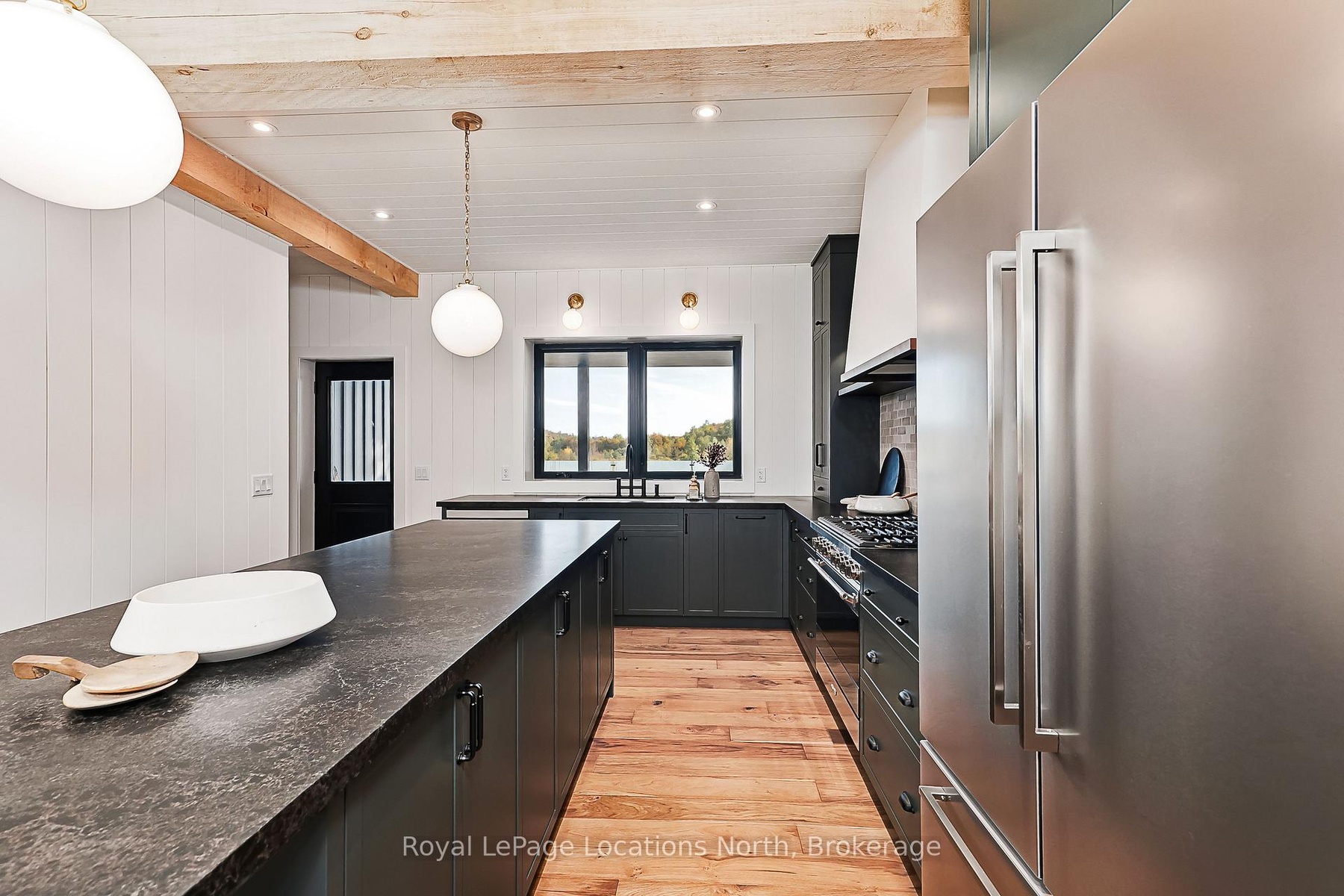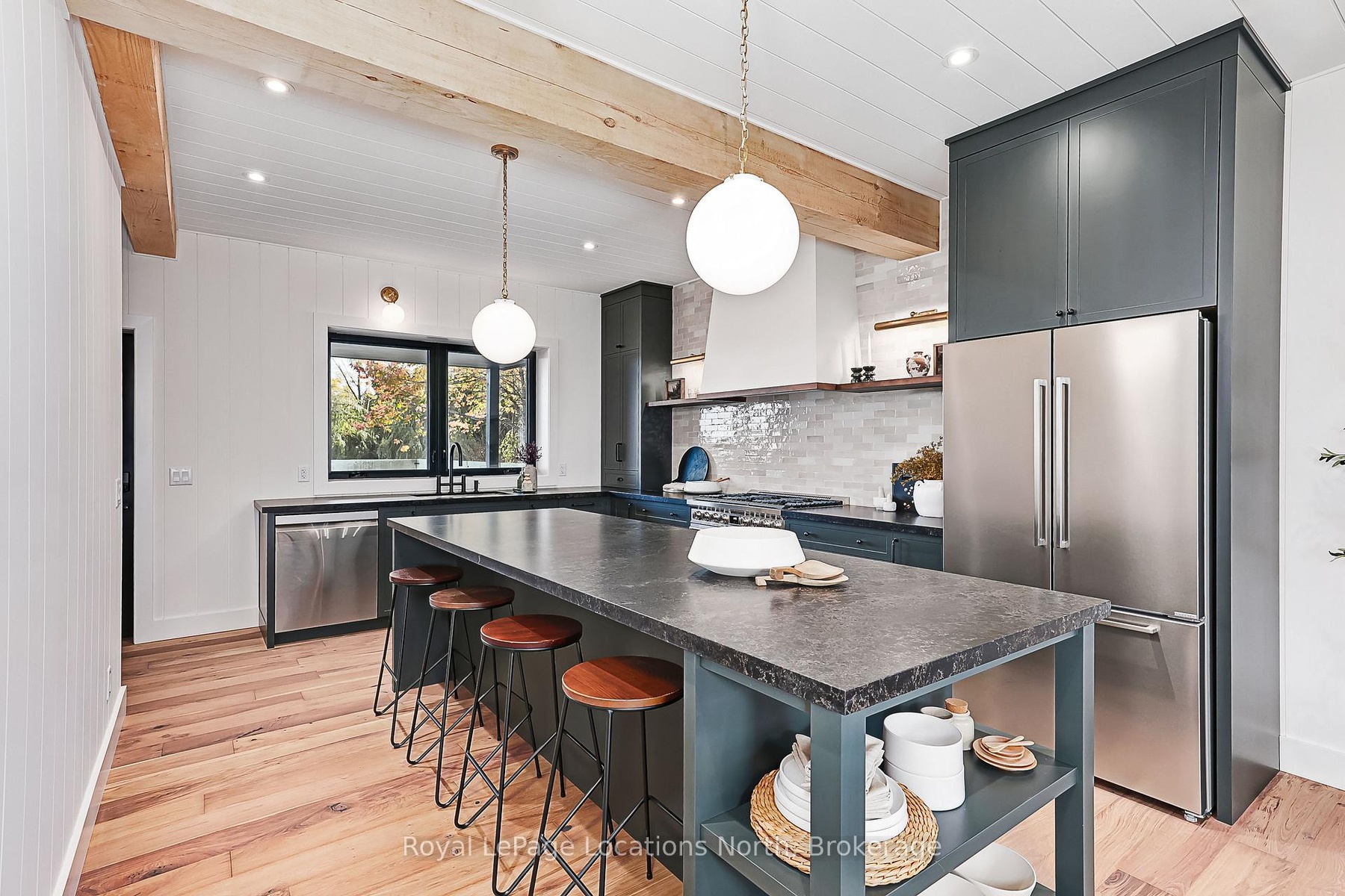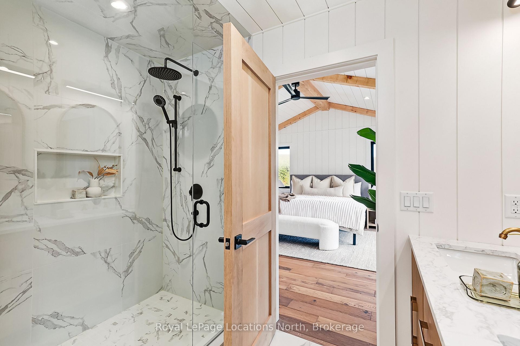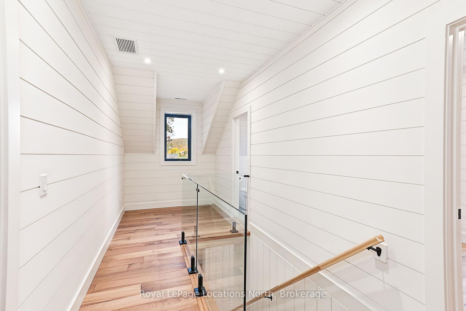 A Serene Retreat in the Heart of Pretty River Valley. Set amidst the stunning landscape of the Pretty River Valley, this extraordinary property offers over 49 acres of pure tranquility. Completely reimagined inside and out, it blends the timeless charm of country living with the sophistication and comfort of a brand-new home. Here, privacy, panoramic views and a deep connection to nature come together to create an exceptional rural escape. Step inside to a bright and inviting open-concept main floor, where expansive windows fill the home with natural light. The chef-inspired kitchen features a large island, luxury appliances, a walkout to the deck and a dedicated prep room-perfect for entertaining. The warm and welcoming living room, centered around a stone wood-burning fireplace, provides the ideal spot to relax and enjoy the ever-changing beauty of each season. The main floor primary suite is a private haven, offering a spa-like ensuite, walk-in closet and walkout to the deck overlooking the breathtaking Pretty River Valley. Thoughtful details such as hardwood flooring, pot lights, shiplap accents and custom textures elevate the home's modern country aesthetic. A main floor office and laundry room add everyday convenience. Upstairs, two spacious bedrooms and a stylish three-piece bathroom offer comfort and privacy for family or guests. The finished lower level extends the living space with a generous family room and walkout to a covered patio, a full bathroom, and a versatile extra room ideal for a bedroom, den, or home theatre. Outdoors, discover your own private paradise with trails, a waterfall and acres of natural beauty to explore-perfect for hiking, snowshoeing and quiet reflection. A detached triple garage/shop provides ample room for vehicles, equipment, or hobbies. Located just minutes from Blue Mountain, Collingwood, ski clubs and golf courses, this exceptional property is the ultimate four-season retreat.