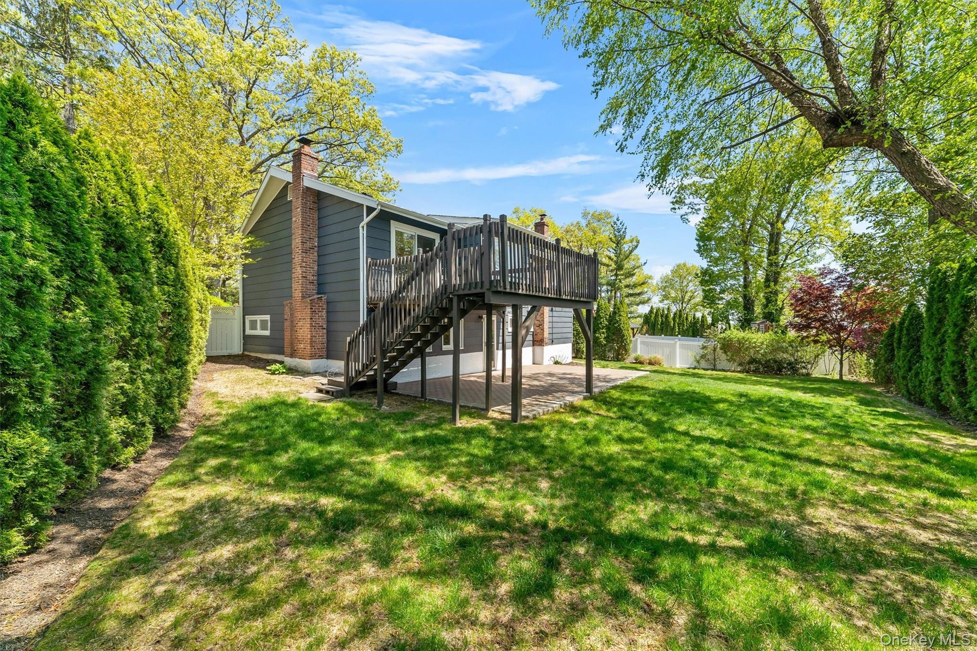 Step inside to an abundance of natural light, highlighted by vaulted ceilings and an expansive bay window in the main living room. The seamless flow leads to a dining area with direct access to an inviting deck, perfect for entertaining. The updated kitchen is a chef's delight, featuring granite countertops, stainless steel appliances, and custom cabinetry.