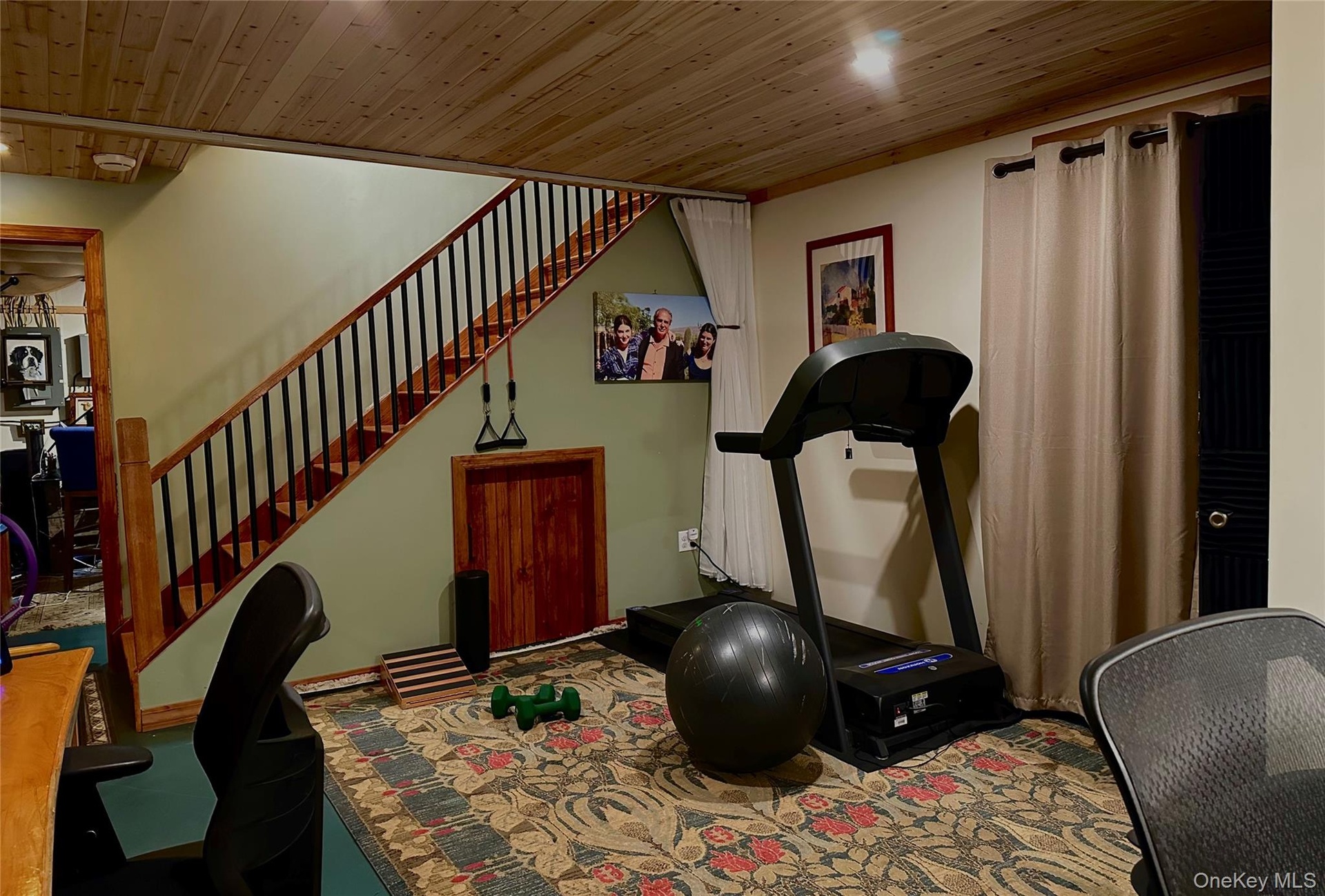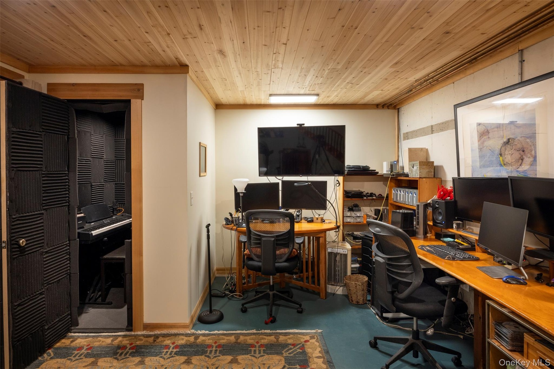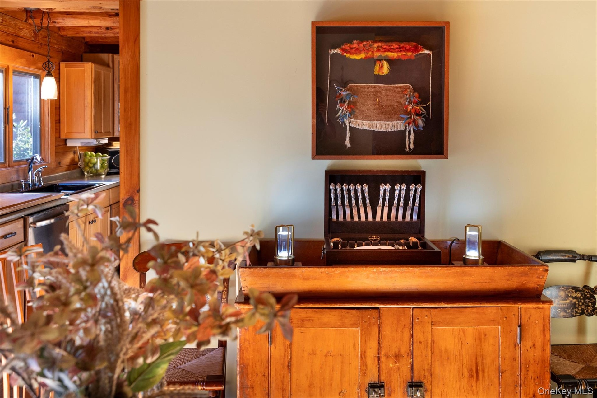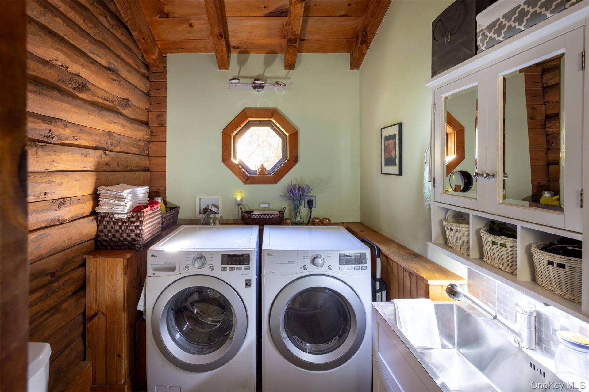 Nestled at the base of the Ashokan High Point mountain, one of the Catskills' most scenic peaks, this beautifully appointed, rustic 5.7-acre retreat is set back generously from a quiet country road just minutes from the Ashokan Reservoir. Custom built in 2000, the stylish, move-in-ready home features multiple great spaces for gathering with friends and family, both inside and out, starting with the deep end-to-end-covered verandah in front and the even larger blue-stone patio in back. Inside, the house features a dramatic living room with a fireplace and double-height beamed ceiling, all visible and open to the sunny dining room and conveniently laid-out kitchen with adjoining laundry room, half bath and spacious 2-car garage. The main level also features 2 cozy bedrooms and a newly renovated full bathroom with radiant-floor heating and a custom glass-enclosed rain shower. Upstairs, the enormous and sunny primary suite features a cathedral ceiling, windows on 3 exposures, seating and work areas, a walk-in closet plus a stunning new en-suite bathroom with open shower, soaking tub and radiant-floor heating. And just down the open hallway overlooking the living room is a TV or reading loft with 5-point sound also suitable for a home office. If more at-home work space is required, the semi-finished basement features no less than 2 offices, a sound-recording booth, a pellet stove and plenty of additional room for storage and hobbies. Out back, the wooded and completely private back yard has a large bluestone patio with room for separate gathering and dining areas, a covered grilling area and, beyond, a fire pit, hammock and spacious storage shed. Other recent upgrades include an owned (not leased) Sol-Ark 22-amp rooftop solar array and system that has reduced standard monthly electric bills for the current owners dramatically; it also acts as a whole-house generator during power failures. Inside and out, the vibe here is warm, relaxing and ready-to-enjoy, when you're not hiking the nearby trails and reservoir, or enjoying Woodstock and the many other attractions that have made Olivebridge one of the hottest destinations in the Hudson Valley.