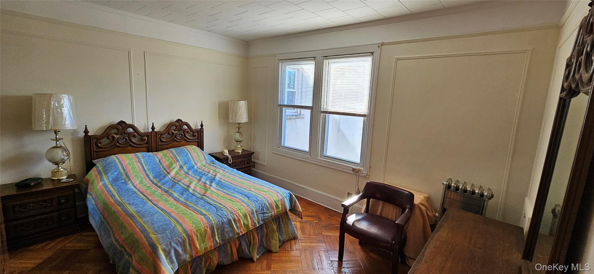 - Bedroom with a decorative wall and ornamental molding