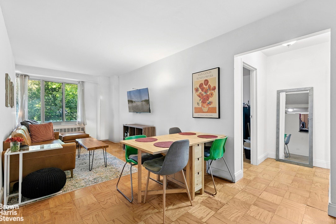 With Central Park as your back yard, tucked amid gardens and light, this beautifully updated two-bedroom condo feels like a serene escape at the heart of the city. The spacious living and dining area spans nearly 24 feet, offering an open, airy expanse that easily accommodates relaxing nights in or lively gatherings with friends. Oversized windows frame lush, tree-lined garden views and fill the home with soft southern sunlight.