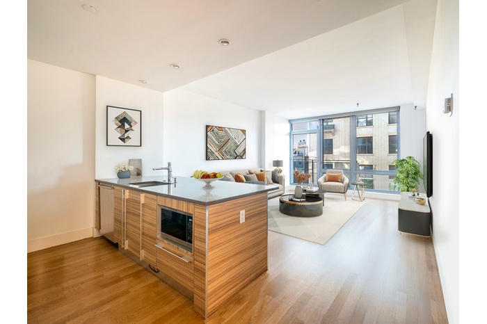 Residents of this pet-friendly building enjoy a striking double-height lobby, a 3,000-square-foot furnished roof deck with open city views, a fully equipped fitness room, bike storage, virtual doorman service, package room, and a full-time Superintendent. On-site parking is also available for purchase from the original Sponsor.