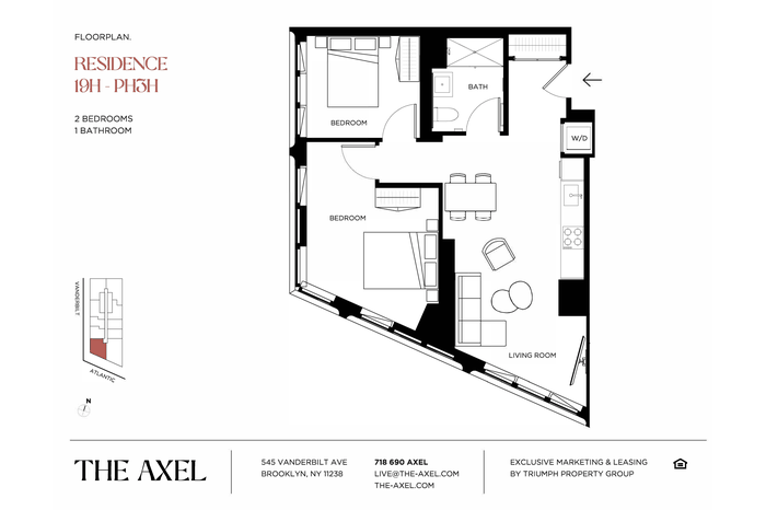 From its perch at the intersection of three legendary Brooklyn neighborhoods, The Axel is the latest high rise to make its debut in New York City. Offering studio to three bedroom luxury rental units with access to an abundance of unrivaled amenity space. The H-line is a two bedroom one bathroom apartment perfect for those looking for extra space. Enjoy south-western exposure from the comfort of your own two bedroom. With floor to ceiling windows throughout each room of the unit. The H line features a large bathroom with a walk in shower. The H Line also features a brand new Bloomberg appliance package, complementary custom wardrobe units, and in-unit washer/dryer. Located at 545 Vanderbilt Ave, The Axel is conveniently within walking distance of some of Brooklyn’s landmarks including the Brooklyn Botanical Garden, Grand Army Plaza, Prospect Park, and Barclays Center. Transportation in the city is a breeze as The Axel is nested near over ten MTA train lines and the Long Island Rail Road. The building's amenities include a bright fitness center, game room, golf simulator, private work spaces, rooftop sun deck, and a private outdoor pool. The Axel twists toward the sky and beckons you to hear its story. Let yours take shape here; living, working and entertaining and enjoying the life you’ve yet to live. PHOTOS ARE USED TO REPRESENT FIXTURES AND FINISHES AND ARE NOT OF ACTUAL APARTMENT. Call or email to schedule your viewing.