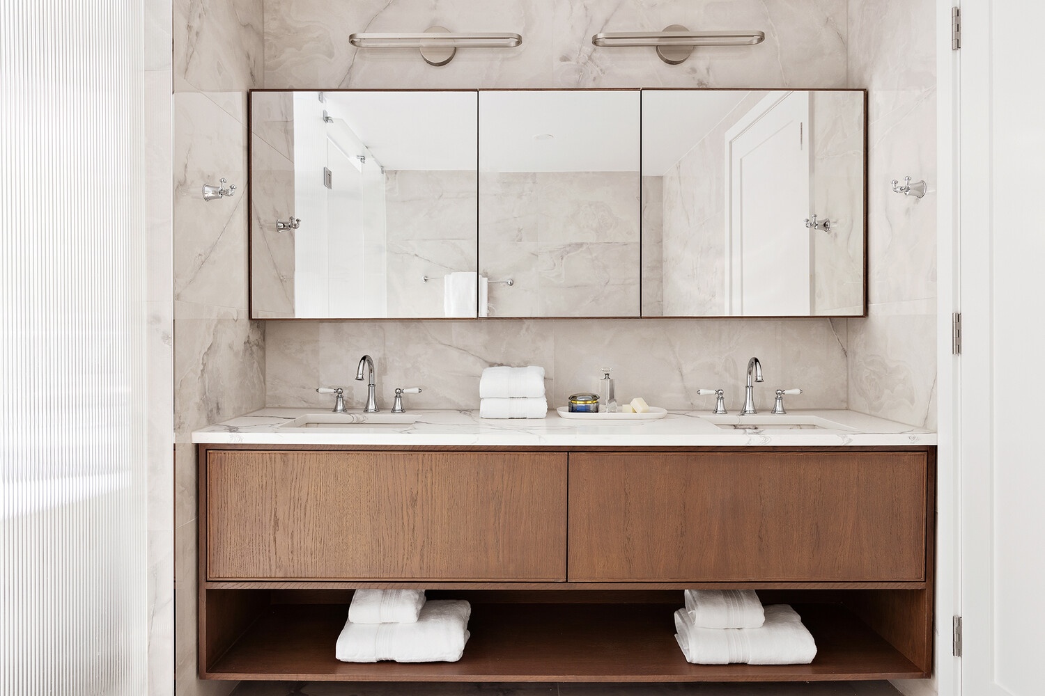 The Fourth Floor features three gracious bedrooms, complete with individual en-suite bathrooms, walk-in closets and ample natural light. The front bedroom features a working fireplace, and the rear bedroom features a private balcony.