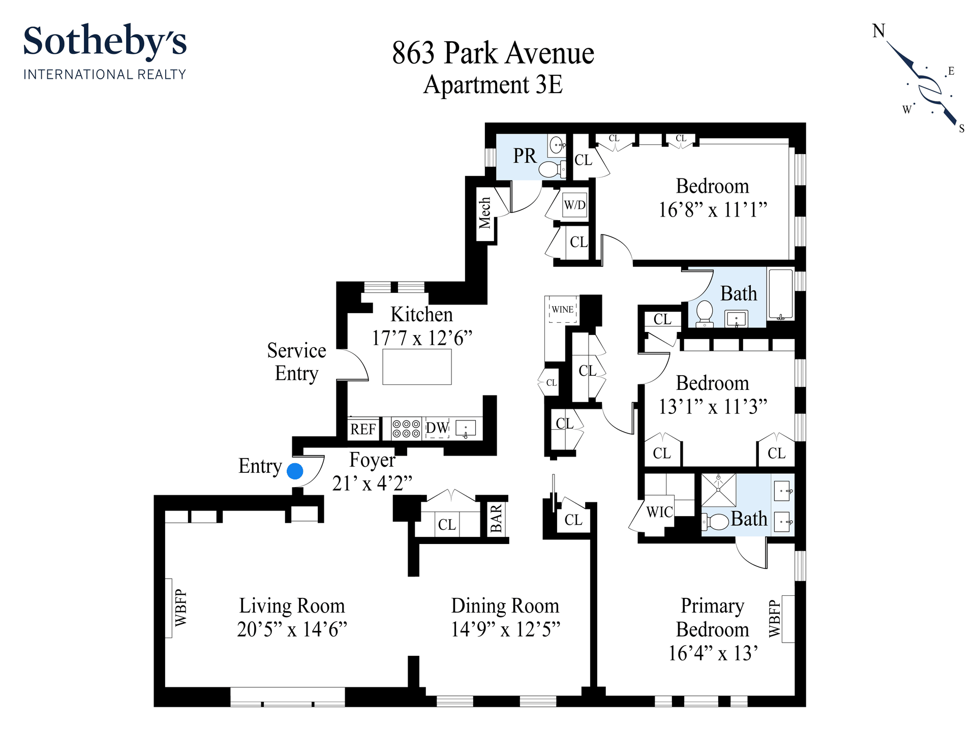 Upon entering, a gracious wallpapered foyer sets the tone, leading into a sun-filled, south-facing living room adorned with original pre-war details, custom built-ins, new paneling, and a wood-burning fireplace. The living room flows effortlessly into an expansive dining room with a built-in bar and two large south-facing windows. Ideal for both entertaining and everyday living.