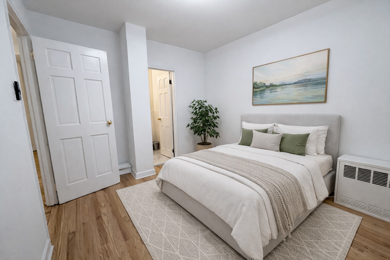 This inviting first-floor one-bedroom immediately feels like your own private maisonette, blending townhouse charm with Parisian classic prewar potential. A long entry hallway with soaring ceilings opens, on the left, into the serene bedroom with its ensuite bathroom, and living room with open kitchen on your right. The long hallway provides a clear separation between sleeping and living spaces and features two oversize closets, one upon entry and the second one near the living area, the later being as large as a walk in closet.