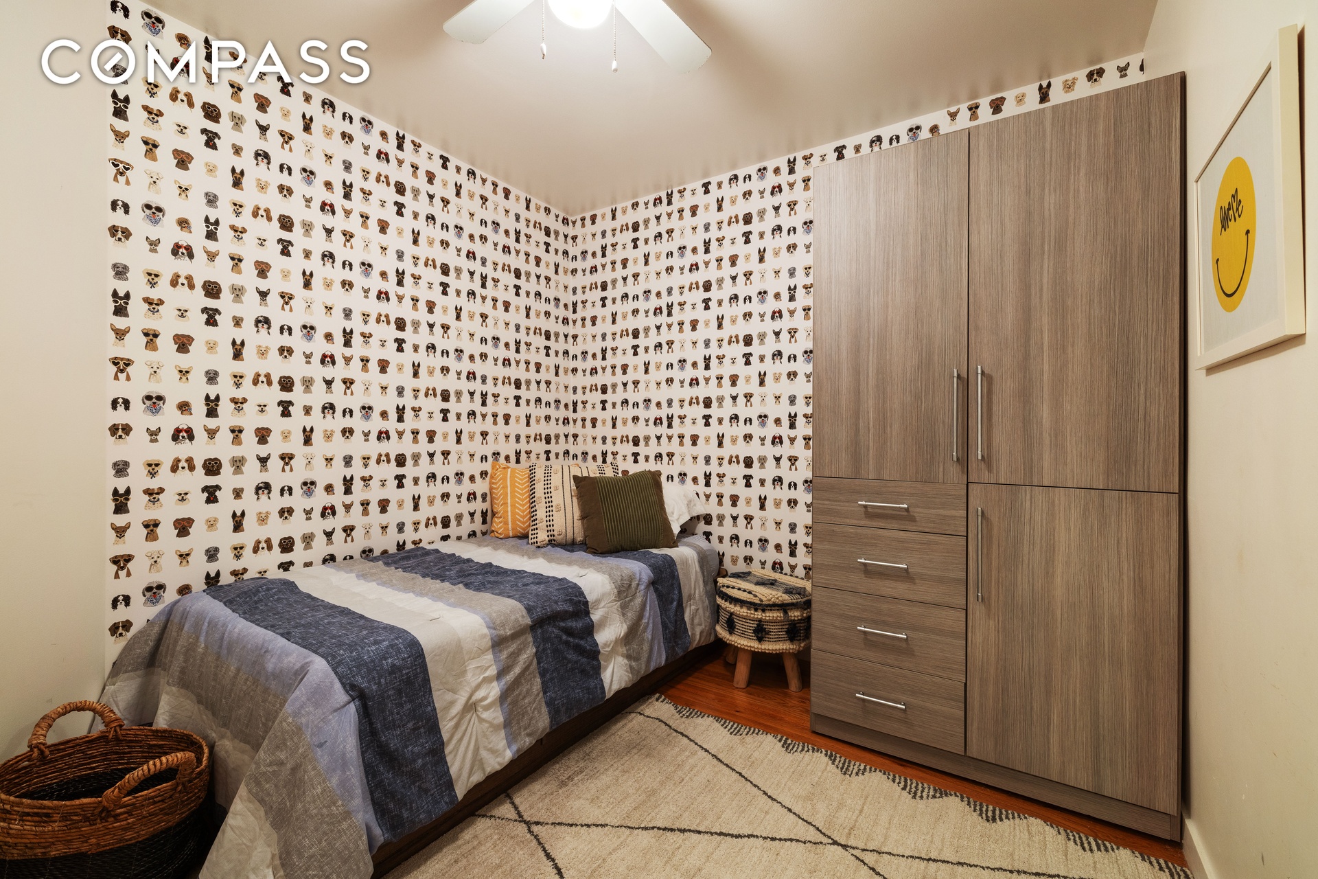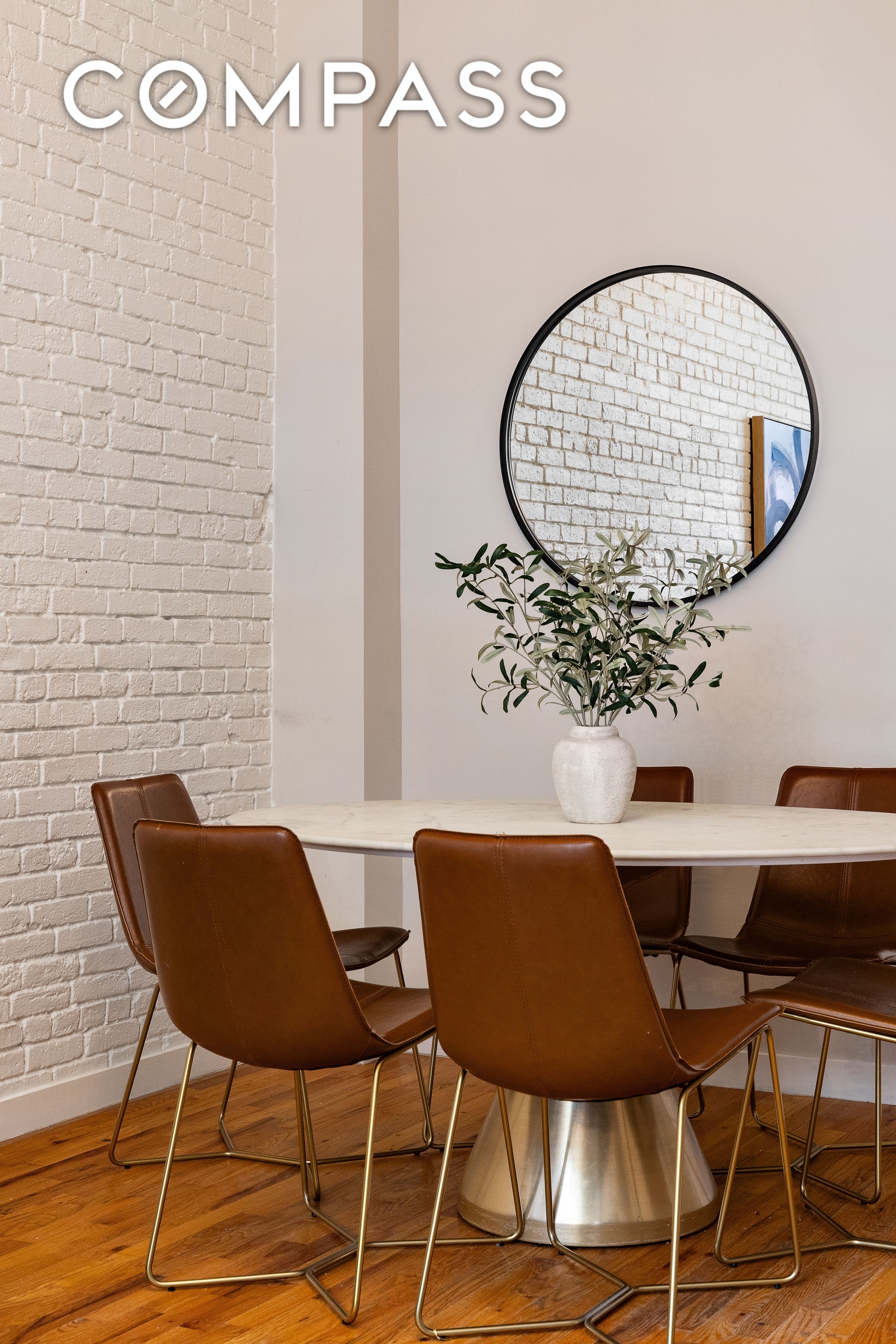 Welcome to 113 Sterling Place, Unit 4 — a rare and remarkable Park Slope home that feels like your very own private townhouse. Less than 1 flight up, this flexible 3-bedroom, 1.5-bathroom residence is defined by soaring 13-foot ceilings, chic designer interiors, and timeless pre-war charm including exposed brick walls and hardwood floors throughout. The expansive living and dining area is both dramatic and inviting, while the renovated kitchen and extensive built-in storage is thoughtfully designed for modern living.