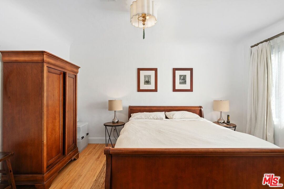 Step into history and modern elegance at this rare and unique 1929 Spanish Hacienda, beautifully preserved and thoughtfully reimagined for contemporary living.Located south of Sunset Boulevard in West Hollywood a city that feels alive with twinkling lights, creativity, and endless energy this residence embodies the essence of classic Los Angeles, where old-world charm meets vibrant culture, music, and world-renowned dining.This bright, renovated top-floor unit with only one common wall offers the perfect blend of Spanish historic character and modern comfort, framed by tranquil treetop views. Updated in 2020, it features 9-foot coved ceilings, oak flooring, and smooth plastered walls that highlight its architectural beauty. The lovely kitchen features Viking and Sub-Zero appliances, elegant countertops, a charming farmhouse sink, and refined designer finishes. The charming bathroom exudes timeless sophistication with Carrera marble and high-end fixtures, while a custom-built closet adds both style and functionality.Every detail reflects exceptional craftsmanship and refined taste. Enjoy the best of West Hollywood living with low HOA dues, side-by-side subterranean secured parking with storage, and a prime central location offering easy freeway access to Beverly Hills, the Westside, the Valley, and beyond all just moments from Chateau Marmont, the Sunset Strip, and the city's premier dining and entertainment.Experience the magic of classic Los Angeles living where history, design, and location unite in perfect harmony.