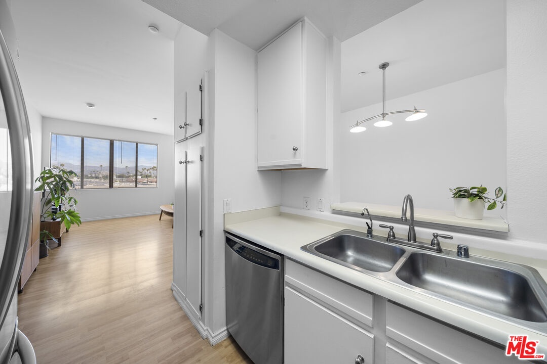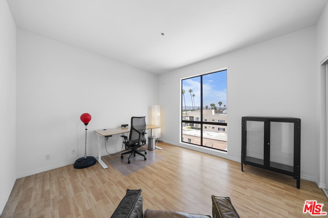 Welcome to a bright and airy top-floor residence located in one of Koreatown's most dynamic and centrally connected neighborhoods. This spacious 2-bedroom, 2-bathroom condo offers thoughtful design, functional flow, and an elevated sense of livability, all complemented by sweeping views of the iconic Hollywood Sign. Inside, you'll find high ceilings and no upstairs neighbors, giving the home a peaceful, open feel. The north-facing living room is filled with natural light and opens to stunning vistas, while the adjacent dining area and kitchen create a seamless environment for everyday living and entertaining. The kitchen features a charming passthrough window perfect for serving breakfast or hosting dinner parties and is equipped with a Frigidaire range, LG refrigerator, and GE dishwasher. The first bedroom also enjoys soft north-facing light and a generously sized closet for added storage. A full guest bathroom includes a modern stand-up shower. The south-facing primary suite offers privacy and its own en-suite bathroom, completing this smart and well-laid-out home. Additional highlights include two dedicated parking spots, abundant guest parking, and access to the community pool. The community laundry room is conveniently located on the same floor. Right outside your door, you'll find easy access to some of LA's most iconic destinations. Ralphs, The Wiltern, and the charming shops and cafes of Larchmont Village are all nearby, along with Koreatown's renowned restaurants, cafes, and nightlife. This is city living with an easygoing rhythm, right in the heart of it all. Don't miss this rare opportunity to own a top-floor unit with natural light, thoughtful updates, and a prime location in one of LA's most desirable neighborhoods. Come experience this exceptional top-floor corner unit and see what makes it a standout opportunity in Koreatown.
