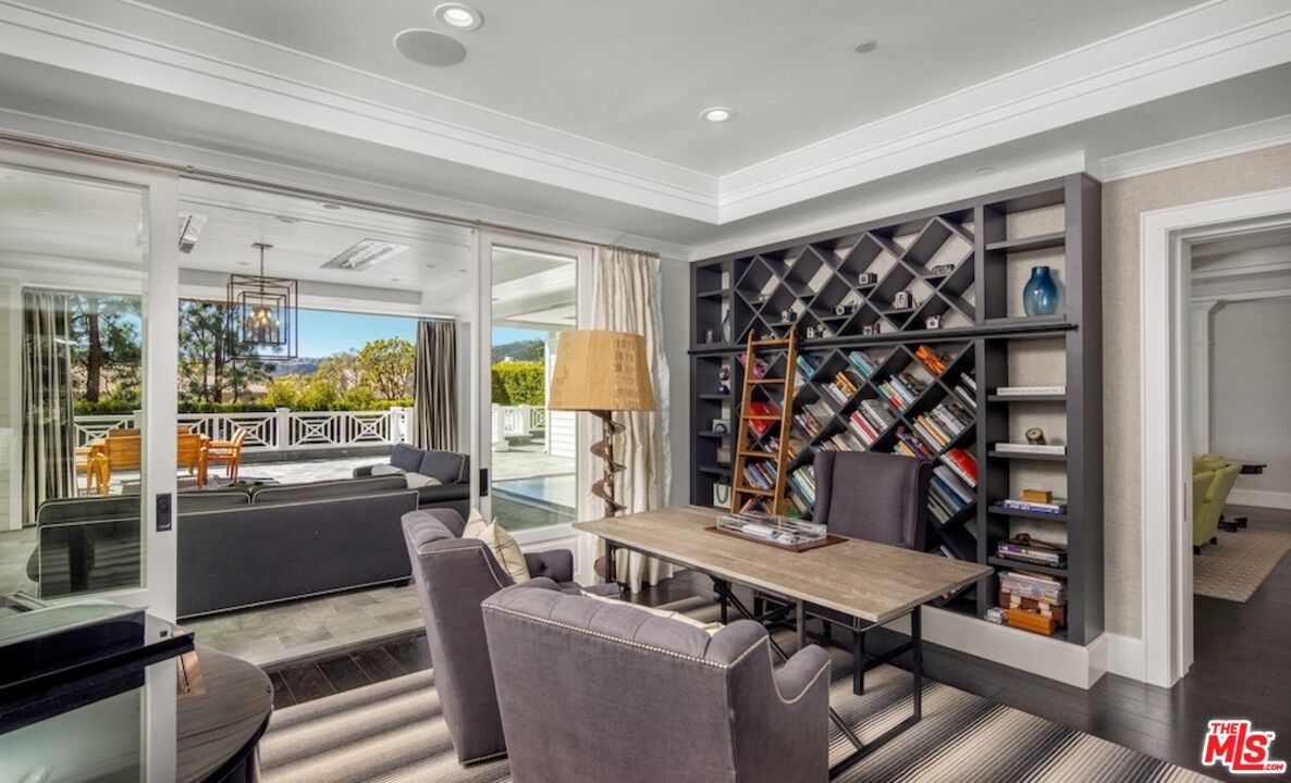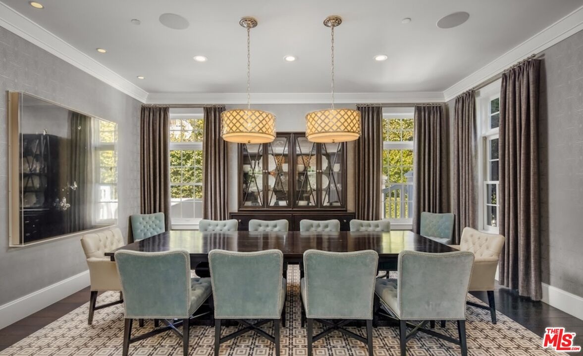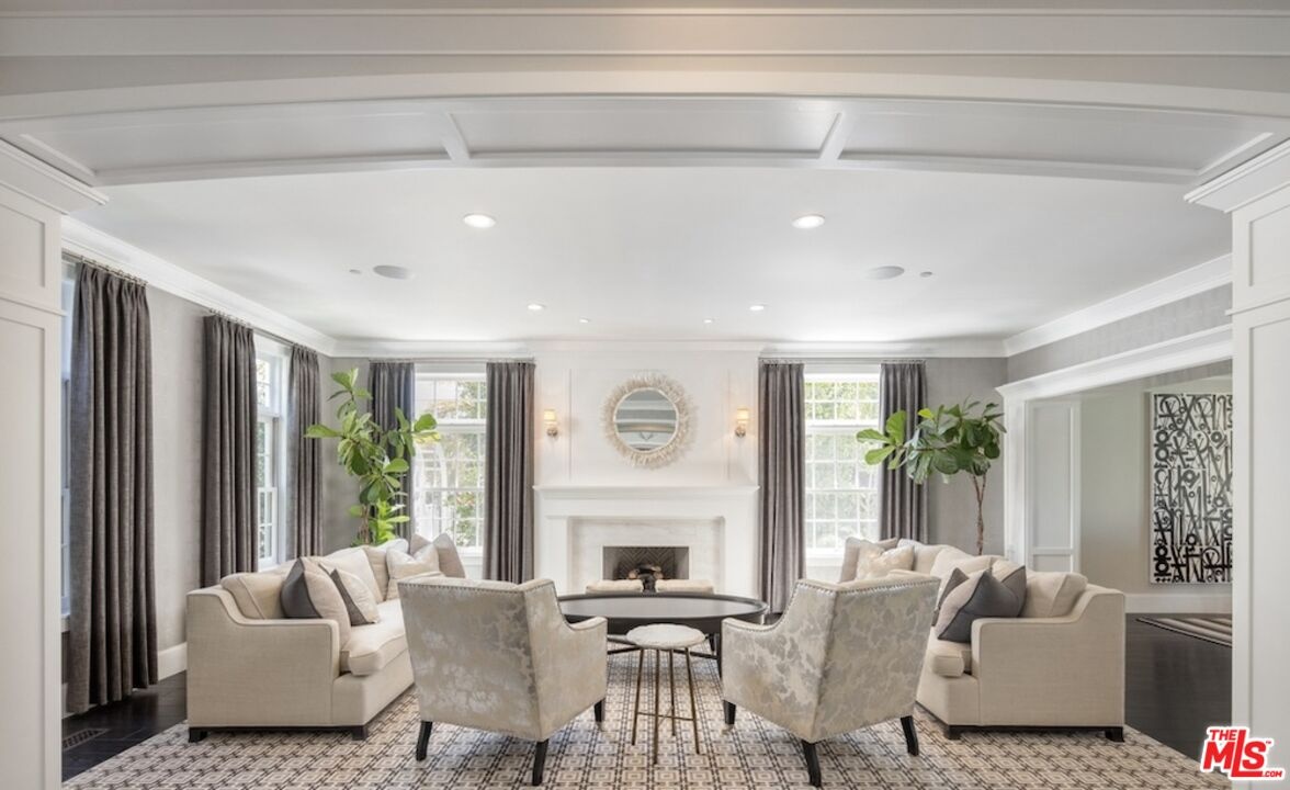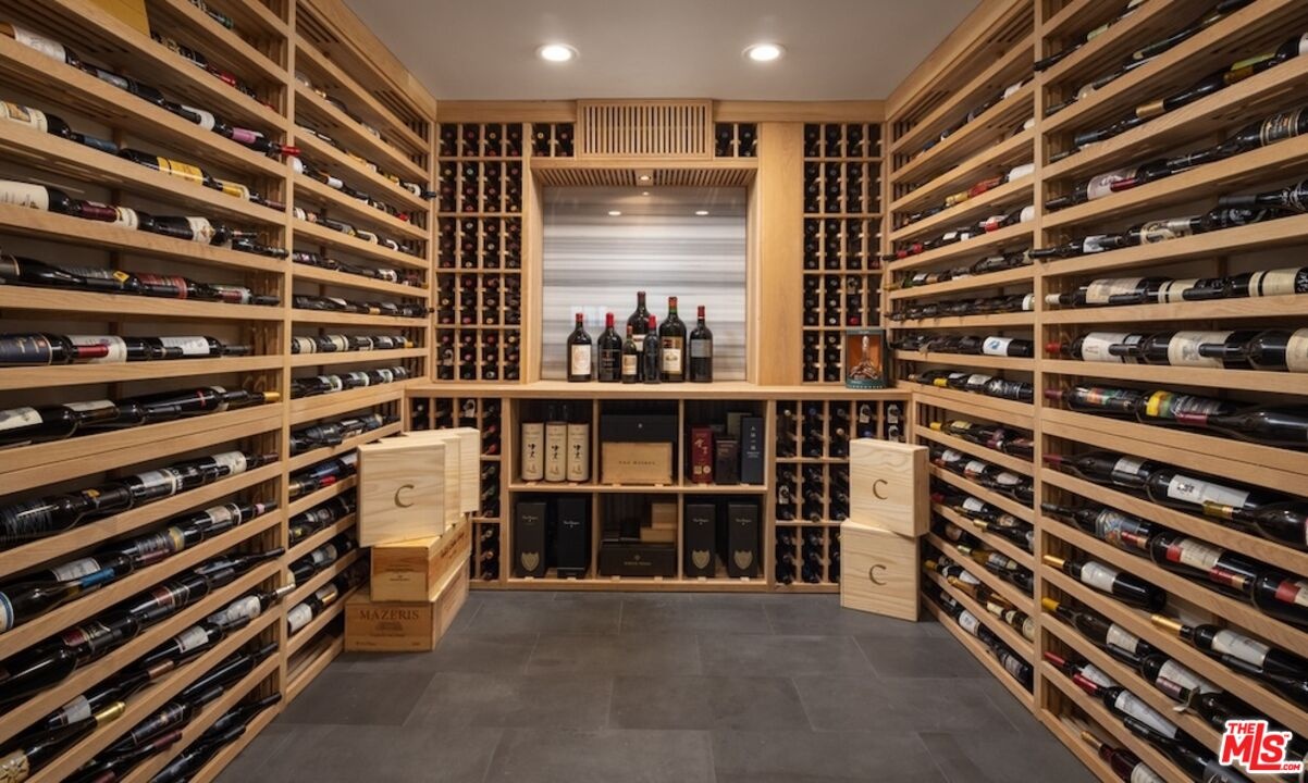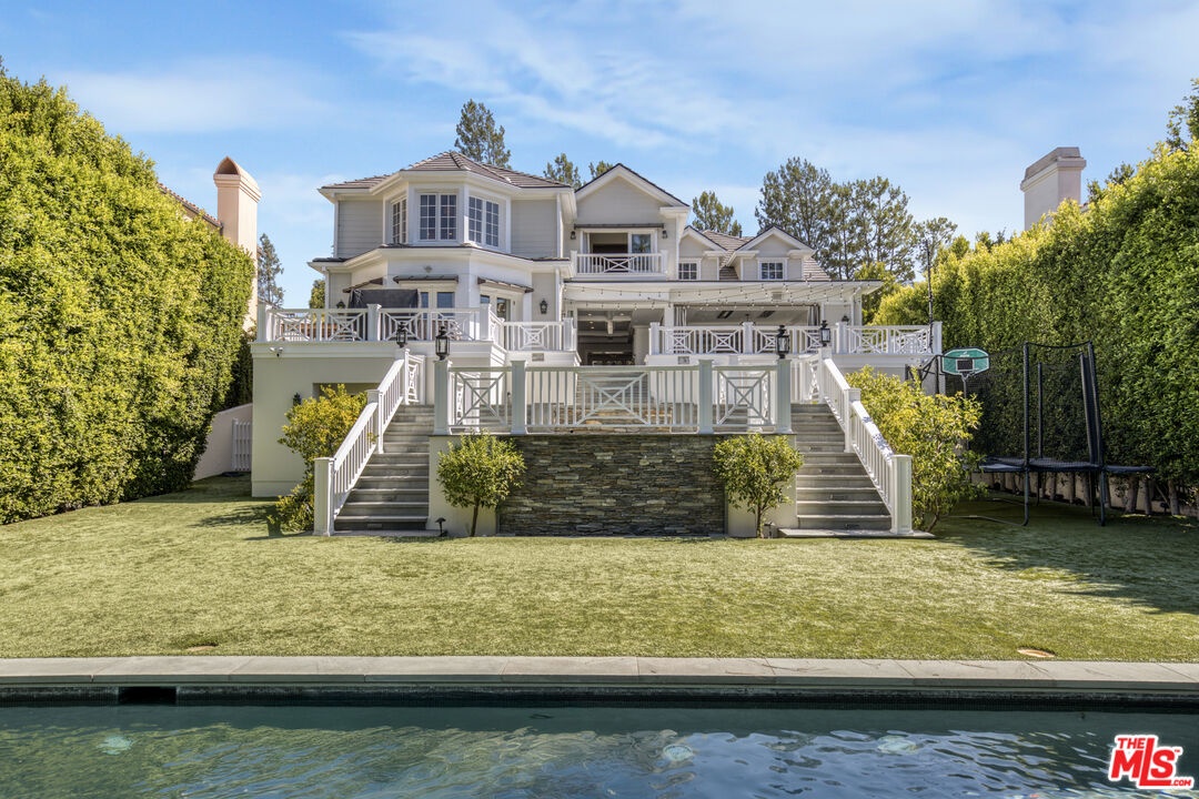 Nestled in the coveted, rapidly appreciating community of Bel Air Crest, this completely reimagined East Coast Traditional blends timeless elegance with modern sophistication. Behind guarded gates with 24/7 security, tennis courts, a clubhouse, and a true neighborhood feel, this estate offers an unmatched lifestyle in one of LA's most desirable enclaves. A grand two-story entry welcomes you into light-filled interiors featuring beautifully refinished hardwood floors, formal living and dining rooms with fireplaces, a handsome library, family room, and seamless indoor-outdoor flow through pocket doors. The gourmet kitchen is outfitted with a Sub-Zero refrigerator, La Cornue range, custom cabinetry, pantry, and a sunlit eat-in breakfast area. A smart-home system adds modern convenience throughout. Entertainment abounds with a theater, 2,000-bottle wine cellar, and children's playroom with a stage. The four-car garage with extensive built-ins plus gated motor court parking for 11 ensures ample space for family and guests. Upstairs, the primary suite features a fireplace, private sitting room, dual walk-in closets, and spa-like bath. Three additional ensuite bedrooms, upstairs laundry, and a finished attic gym with mirrored walls complete the upper level. A guest/maid's suite with private bath is located on the bottom floor, offering privacy and convenience. The backyard is a private oasis with grassy turf lawn, pool, separate spa, fire pit, and built-in barbecue bar, creating the perfect setting for entertaining.